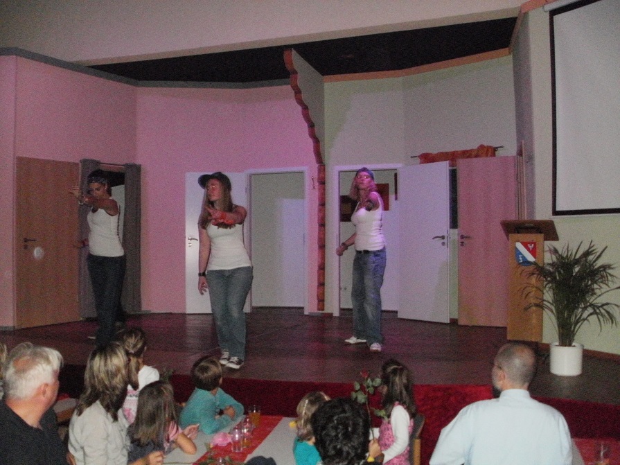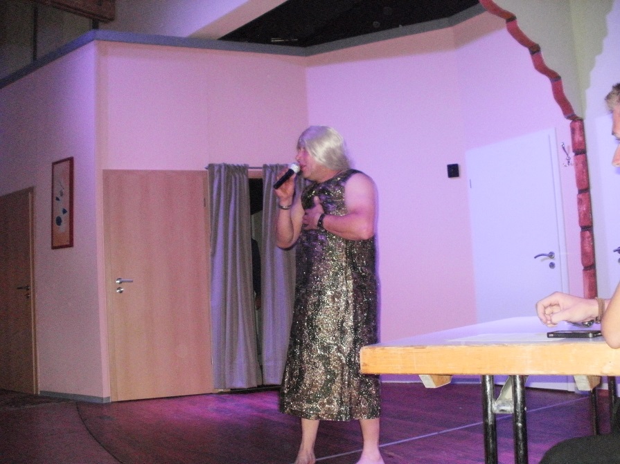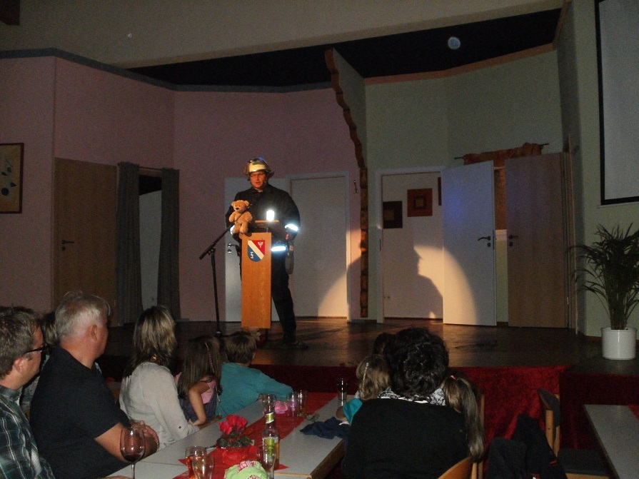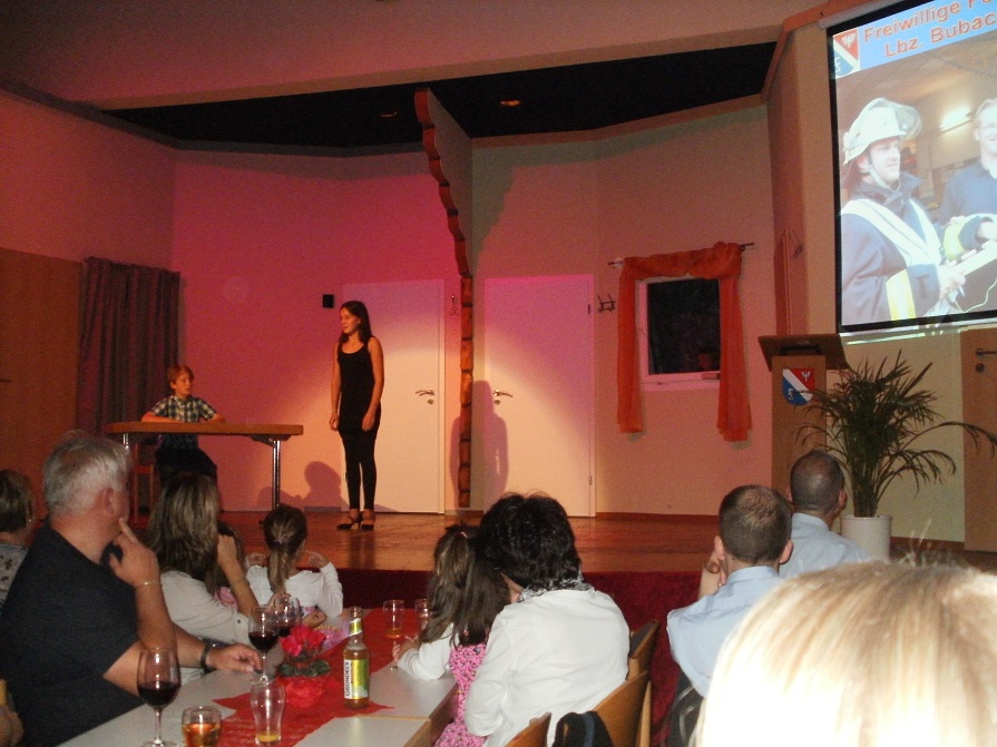 Nach einem köstlichen Abendessen wurden die Gäste in der Hirschberghalle von Carina Müller und Stephan Morbe durch das abwechslungsreiche Programm des Abends geführt. Neben unterhaltsamen Vorführungen und Sketchen der Jugendfeuerwehr gab es auch ein Tanzevent auf der Bühne. Die "Backstreet Boys" traten in einem kleinen Wettstreit gegen die "Spice Girls" an. Jedoch wurden die Boys von Carina Müller, Martina Bronder, Kim Jurczyk und Melanie Groß gemimt und die Girls von Fabian Müller, Jonas Pulch, Eric Wark, Tim Jochum und Frank Bonner. Ein Highlight des Abends war der Vortrag des "Sprettzematz", in Gestalt von Berthold Buchheit. Diesen Beitrag hatte Berthold schon vor ca. 30 Jahren einmal zum Besten gegeben und ihn auf das aktuelle Feuerwehrgeschehen umgeschrieben.