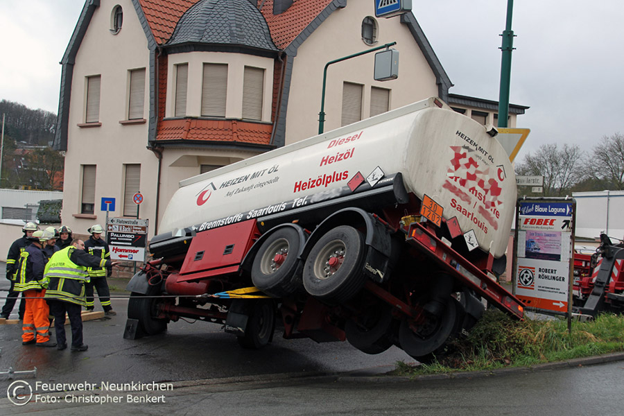 [b]Neunkirchen.[/b] Einen vierstündigen Feuerwehreinsatz löste am Freitagvormittag, 28. Februar ein missglücktes Abbiegemanöver eines mit Heizöl…