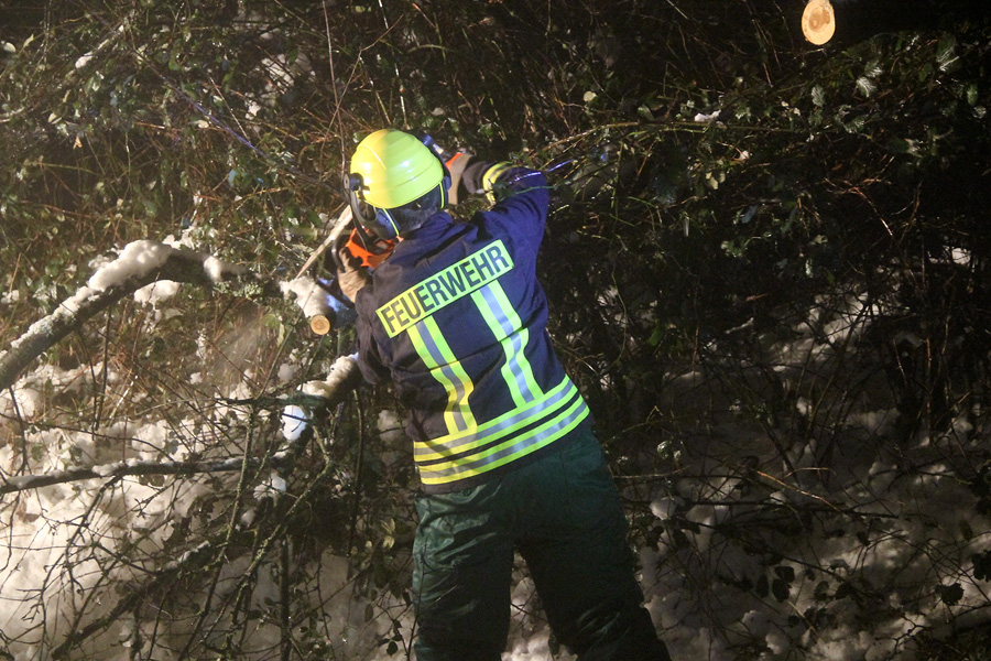 Die anhaltenden Schneefälle am vergangenen Wochenende waren für einen Baum in der Uchtelfanger Straße in Humes zuviel: Er hielt der Schneelast nicht länger Stand und stürzte auf die Fahrbahn. Anrufer hatten dies der Rettungsleitstelle gemeldet, die daraufhin gegen 22:02 Uhr den Löschbezirk Humes alarmierte.