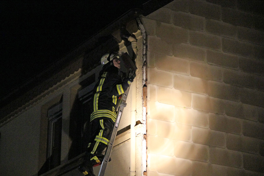 Der Löschbezirk Humes wurde am späten Abend des 29. März 2015 zu einem Sturmschaden gerufen. Sturmböen hatten ein Abdeckblech an der Fassade eines Gebäudes in der Straße "In der Humes" gelockert, das nun auf die Fahrbahn zu stürzen drohte.