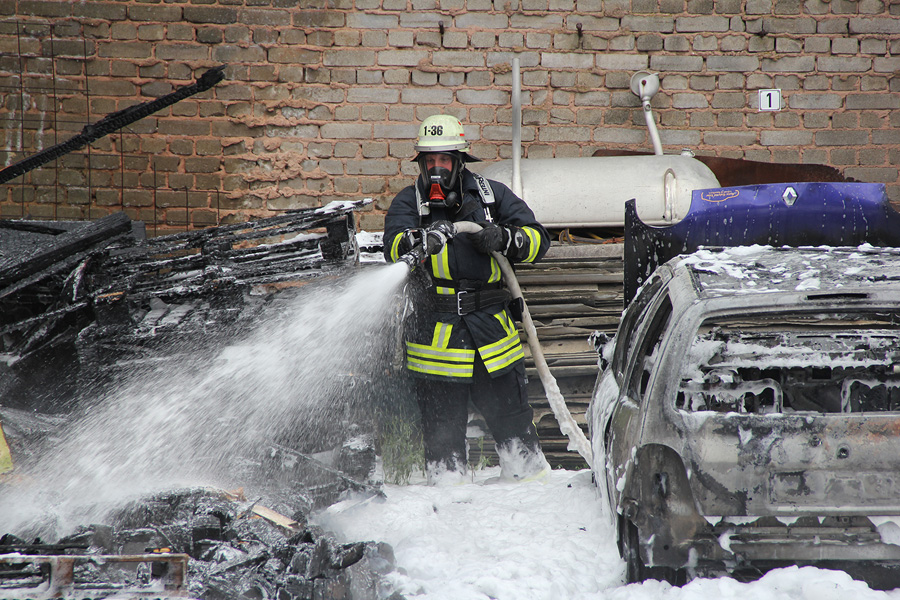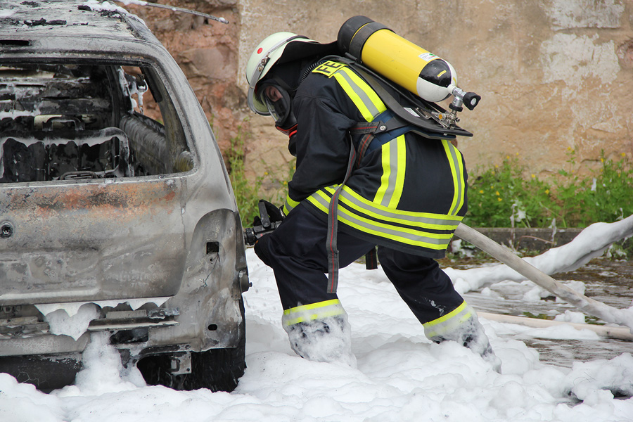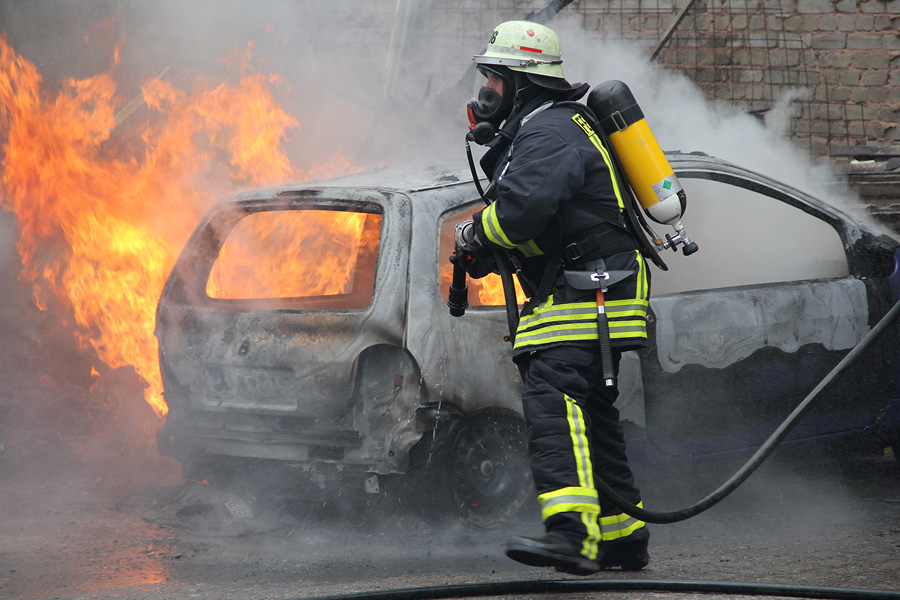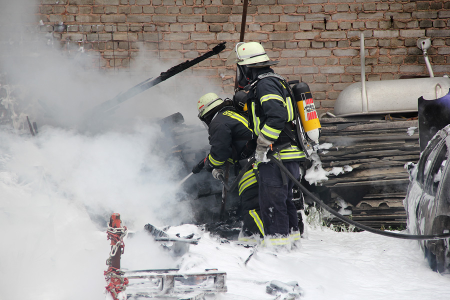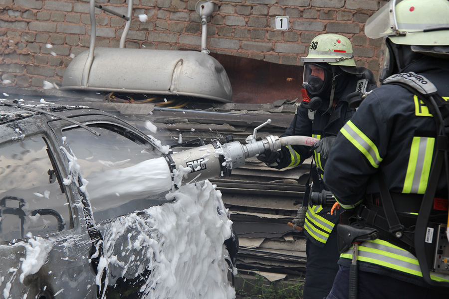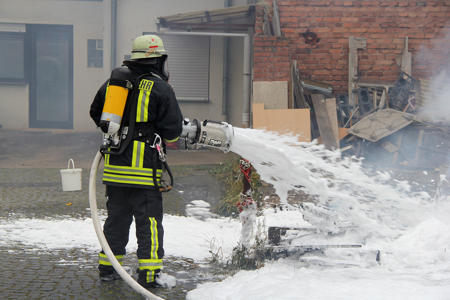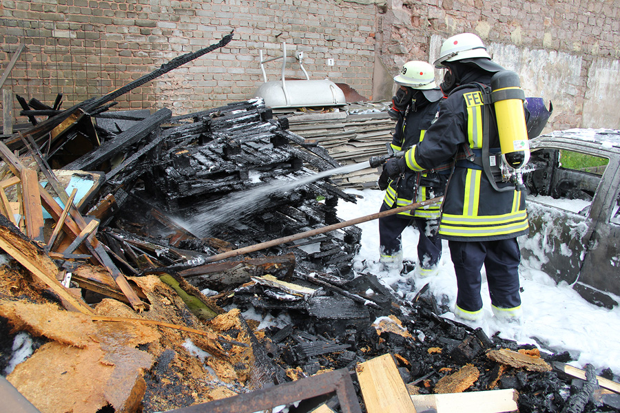 Dichter Rauch steigt am Vormittag des 09. Mai 2015 hinter einem Geschäftshaus am Kirchplatz in Eppelborn auf. Ein Palettenstapel ist im Hinterhof, unmittelbar hinter dem Pfarrsaal in Brand geraten. Anwohner und Passanten, einer davon ein Feuerwehrmann, die auf das Feuer aufmerksam geworden waren, versuchen noch, mit einem Gartenschlauch und mehreren Feuerlöschern den Brand zu löschen. Doch die Flammen sind bereits zu groß: Die Löschversuche bleiben erfolglos und können nicht verhindern, dass das Feuer auf einen Twingo übergreift. Bei Ankunft der Einsatzkräfte aus den Löschbezirken Eppelborn und Hierscheid stehen der Pkw und der Palettenstapel im Vollbrand, die Flammen schlagen meterhoch. Ausgerüstet mit Atemschutzgeräten beginnt der Angriffstrupp mit der Brandbekämpfung. Mit Wasser können die Flammen niedergeschlagen werden. Schließlich werden der Twingo und der Palettenstapel mit Löschschaum geflutet, da das Feuer immer wieder aufflammt. Weil die Ersthelfer giftige Rauchgase eingeatmet hatten, wird ein Rettungswagen der Rettungswache Lebach nachgefordert. Drei von ihnen werden nach einer ersten Untersuchung zur weiteren Überwachung in ein Krankenhaus gebracht. An dem Pkw entstand Totalschaden, ein Übergreifen der Flammen auf das benachbarte Gebäude kann durch den schnellen Einsatz verhindert werden. Die Ursache für das Feuer ist unbekannt. Beamte der Kriminalpolizei waren vor Ort und haben die Ermittlungen aufgenommen. Die Kossmannstraße musste aufgrund der Löscharbeiten im Bereich der Einmündung zur B10 voll gesperrt werden, wodurch es zu Behinderungen kam.
