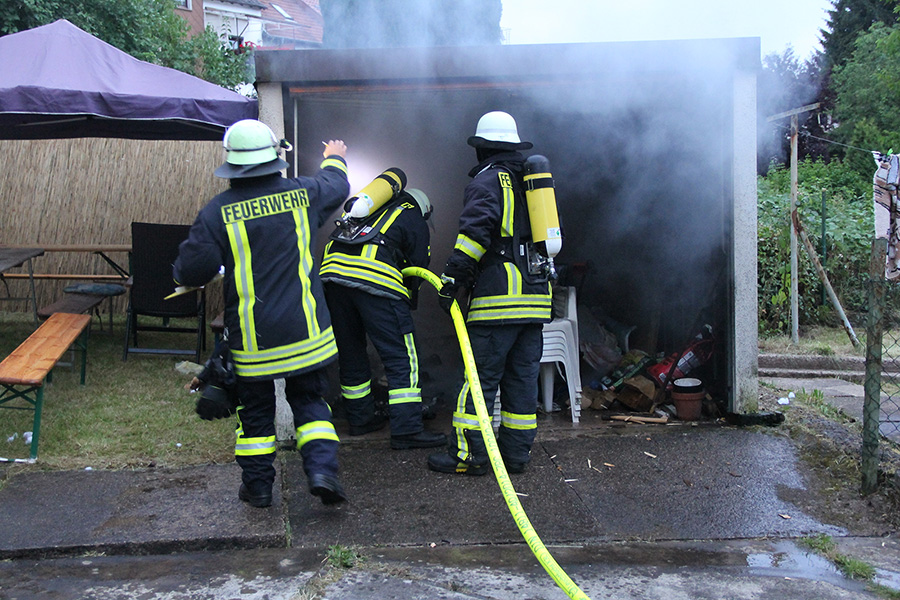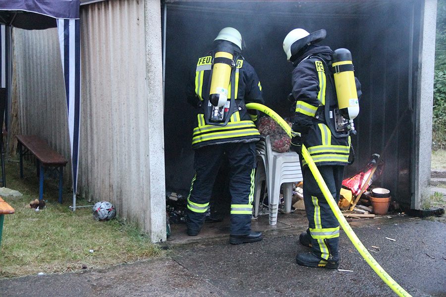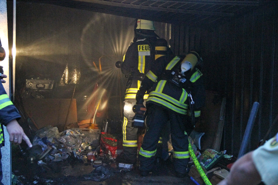 In einer Garage hinter einem Anwesen in der Urexweiler Straße in Dirmingen war am Abend des 12. Juli 2015 ein Brand ausgebrochen. Nachbarn hatten die starke Rauchentwicklung bemerkt und umgehend die Feuerwehr alarmiert. Beim Eintreffen der Einsatzkräfte drang starker Brandrauch aus der geschlossenen, separat stehenden Fertiggarage. Unter dem Garagentor waren Flammen erkennbar. Die Garage wurde geöffnet und der Brand mit einem C-Rohr unter Atemschutz gelöscht. Brennende Kunststoffteile wurde aus der Garage gezogen und abgelöscht. Der Einsatz war für die Feuerwehr nach rund einer Stunde beendet. Das Feuer war nach ersten Erkenntnissen im Bereich einer Mülltonne ausgebrochen. Weitere Ermittlungen zur Entstehungsursache hat die Polizei, die mit einem Kommando vor Ort war, aufgenommen.