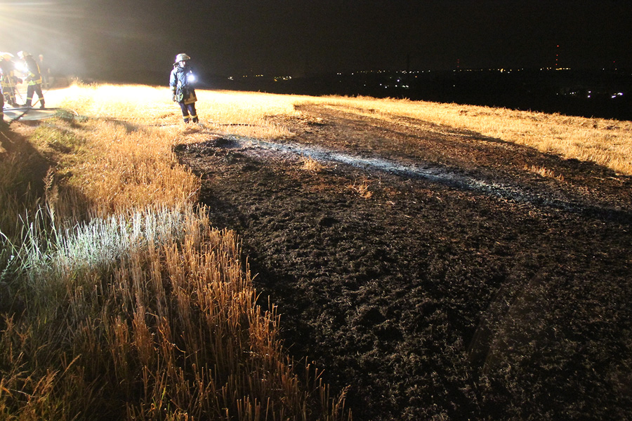 Glücklicherweise gerade noch rechtzeitig hat ein Autofahrer am späten Abend des 10. August 2015 einen Flächenbrand auf dem Wackenberg in Humes bemerkt und die Feuerwehr alarmiert. Rund 25 Quadratmeter eines abgeernteten Feldes standen direkt neben dem Weg zwischen dem Friedhof und der Kompostieranlage in Flammen.
