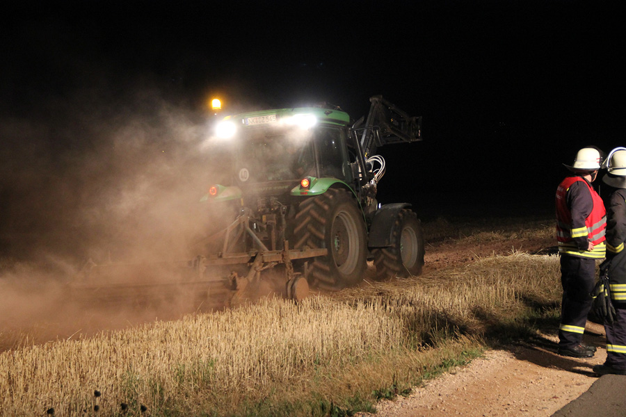 Der Mann versuchte noch, mit Hilfe von Wasserflaschen aus seinem Fahrzeug den Brand einzudämmen, was aber erfolglos war. Erst den kurz darauf eintreffenden Einsatzkräften aus den Löschbezirken Humes und Wiesbach gelang es mit mehreren Rohren, das Feuer zu löschen. Der inzwischen informierte Landwirt war ebenfalls kurz darauf zur Stelle und pflügte die betreffende Stelle um, um ein erneutes Aufflammen zu verhindern.