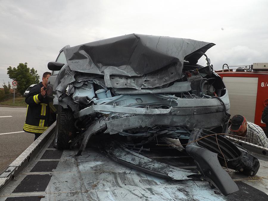 Ein schwerer Verkehrsunfall ereignete sich am Morgen des 01. September 2015 in Humes im Einmündungsbereich zur L141. Eine aus Humes kommende Fahrerin wollte in Richtung Illingen abbiegen und missachtete dabei die Vorfahrt einer anderen Verkehrsteilnehmerin. Die beiden Fahrzeuge kollidierten miteinander und wurden durch die Wucht des Aufpralls von der Fahrbahn geschleudert. In Folge des Unfalls brach im Motorraum eines der Fahrzeuge ein Feuer aus. Beide Fahrerinnen konnten von Ersthelfern noch vor Eintreffen der Rettungskräfte aus ihren Fahrzeuge befreit werden. Mit einem Feuerlöscher und unter Atemschutzeinsatz konnte der Brand von den eintreffenden Kräften aus dem Löschbezirk Humes schnell gelöscht werden. Unterstützt von den Einsatzkräften aus Wiesbach, die vom Einsatzleiter nachgefordert wurden, wurden die Fahrzeugbatterien abgeklemmt und austretende Betriebsstoffe aufgefangen, grobe Straßenverschmutzungen wurden mit Bindemitteln beseitigt. Während der Unfallaufnahme unterstützten Kräfte der Feuerwehr die Polizei bei der Absicherung der Unfallstelle. Die Einsatzstelle konnte gegen 08:40 Uhr an die Polizei übergeben werden. Die beiden Fahrerinnen wurden bei dem Unfall verletzt, eine davon schwer. Beide mussten zu weiteren Untersuchungen in ein Krankenhaus gebracht werden. Es entstand erheblicher Sachschaden.