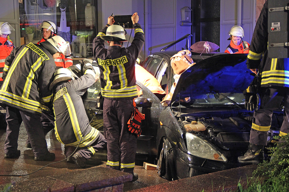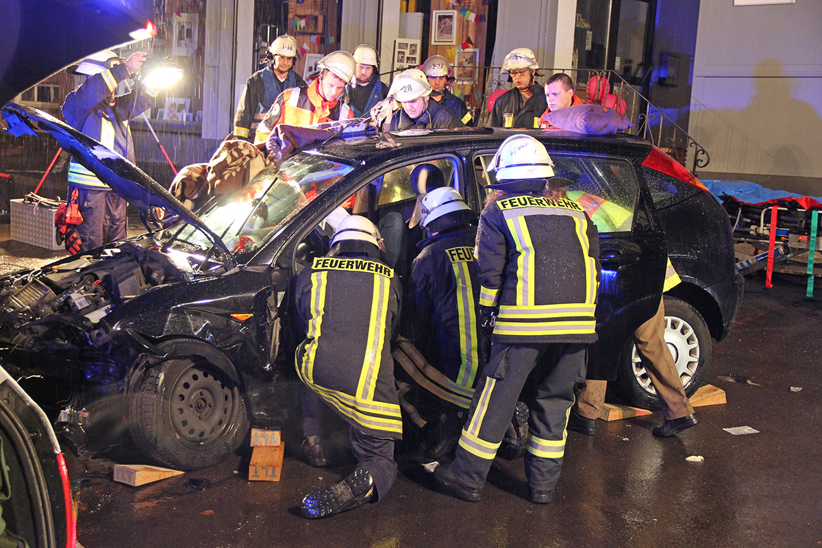 Die Feuerwehr klemmte zuerst die Fahrzeugbatterie an dem Unfallfahrzeug ab und leuchtete die Unfallstelle mit Scheinwerfern aus. Nach Rücksprache mit dem Notarzt wurde dann die Fahrertür mit hydraulischen Rettungswerkzeugen entfernt und die Fahrerin mit einem Spineboard aus dem Fahrzeug gehoben.