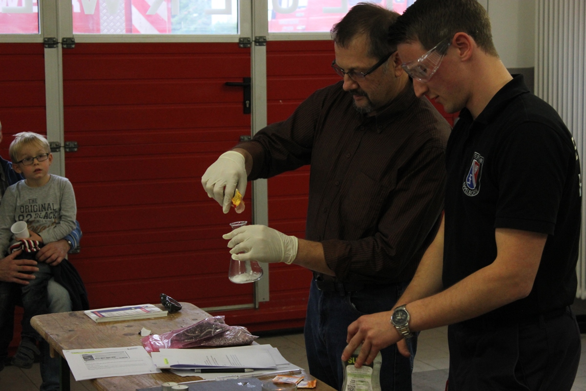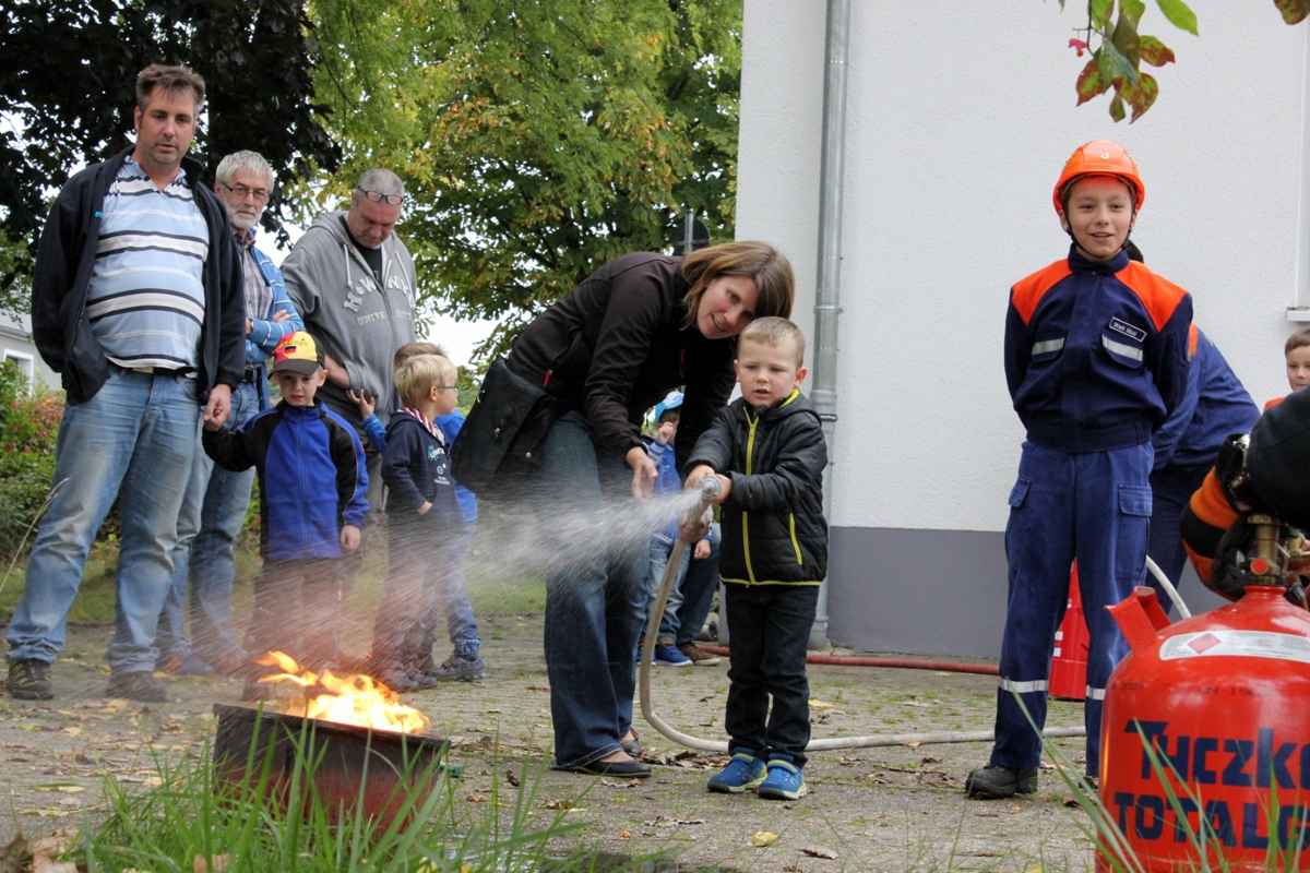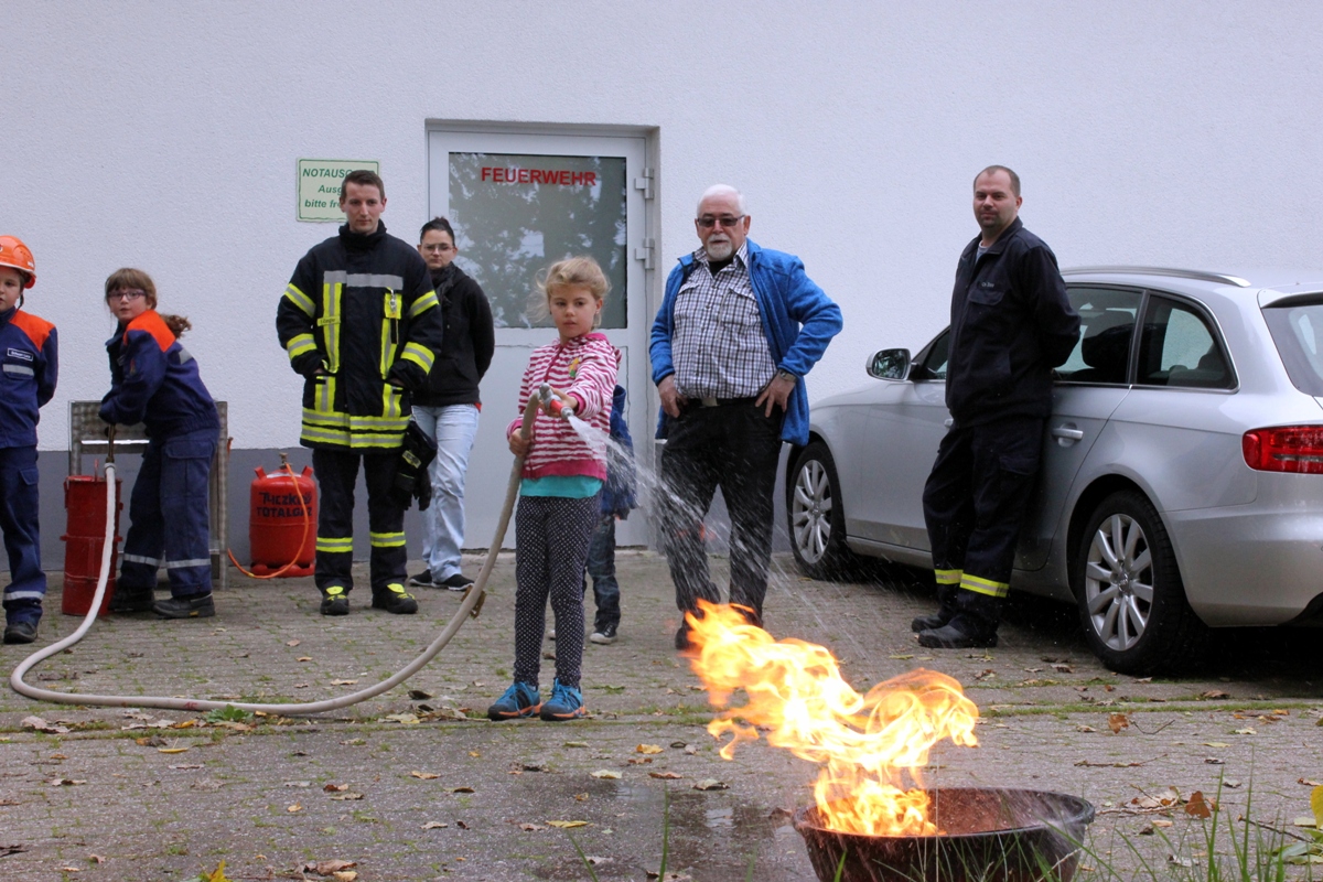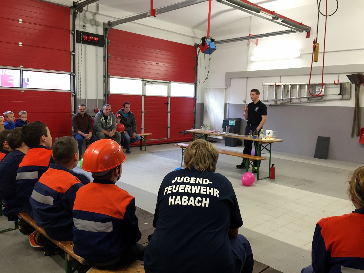 Am 26.09.2015 war es wieder soweit. Nach dem großen Zuspruch der Auftaktveranstaltung im Juni 2015 veranstaltete der Löschbezirk Habach gemeinsam mit dem Förderverein der Freiw. Feuerwehr Eppelborn – Löschbezirk Habach e.V. und der Praxis für Physiotherapie PhysioMed Stefanie Schmitt-Lang wieder einen besonderen Tag bei der Feuerwehr. Diesmal nahmen 12 Kinder aus Habach und Umgebung an der Veranstaltung teil und konnten das Element Feuer näher kennen lernen. In kleinen Experimenten wurde den Kindern zum Beispiel näher gebracht warum ein Nagel nicht brennt, aber Metallspäne schon. Auch wurde aus kleinen Haushaltsmitteln ein Feuerlöscher gebaut, welcher auch tatsächlich Feuer löschen kann. Im Anschluss an die Experimente hieß es dann wieder Wasser Marsch: Mit der Kübelspritze und dem Beisein ihrer Eltern duften die Kinder nun auch endlich ein echtes Feuer löschen. Natürlich durften die Kids auch durch die großen Feuerwehrautos klettern und sich alles aus nächster Nähe ansehen. Am Ende gab es wieder eine Kleinigkeit zu Essen und ein besonderer Tag bei der Feuerwehr neigte sich dem Ende zu. Ein besonderer Dank gilt bei dieser Veranstaltung dem Löschbezirk Eppelborn, welcher mit zwei Fahrzeugen, der Jugendfeuerwehr samt Betreuer mit vor Ort war und eine starke Jugendfeuerwehr präsentierte und zugleich auch als Helfer zur Verfügung standen. Auch dem Förderverein der Freiw. Feuerwehr Eppelborn – Löschbezirk Habach e.V. sowie Stefanie Schmitt-Lang gilt ein großes Dankeschön, welche bei der Organisation zur Verfügung standen und sich um die Verpflegung der Kinder kümmerten. [b]Für alle Neugierigen: Im Nächsten Jahr, höchstwahrscheinlich im April 2016 wird die Veranstaltungsreihe fortgesetzt. [/b] [infobox title="Zum Hintergrund"] Die Jugendfeuerwehr des Löschbezirk Habach besteht derzeit aus zwei Jugendfeuerwehrmitgliedern, einem Mädchen und einem Jungen, die derzeit an den Übungen bei der Jugendfeuerwehr im Löschbezirk Eppelborn teilnehmen können. Um wieder zu einer eigenen und selbstständigen Gruppe wachsen zu können sucht der Löschbezirk Habach, wie auch viele andere Löschbezirke der Feuerwehr Eppelborn dringend Nachwuchs, sodass auf für die kommenden Jahrzehnte die Sicherheit der Bürgerinnen und Bürger gewährleistet werden kann. Du bist zwischen 8 und 16 Jahren? – Dann melde dich doch bitte bei uns, wenn du auf der Suche nach einem spannenden und aufregenden Hobby bist. Wir und die gesamte Jugendfeuerwehr Eppelborn würden sich freuen, dich in unseren Reihen begrüßen zu dürften. [/infobox]