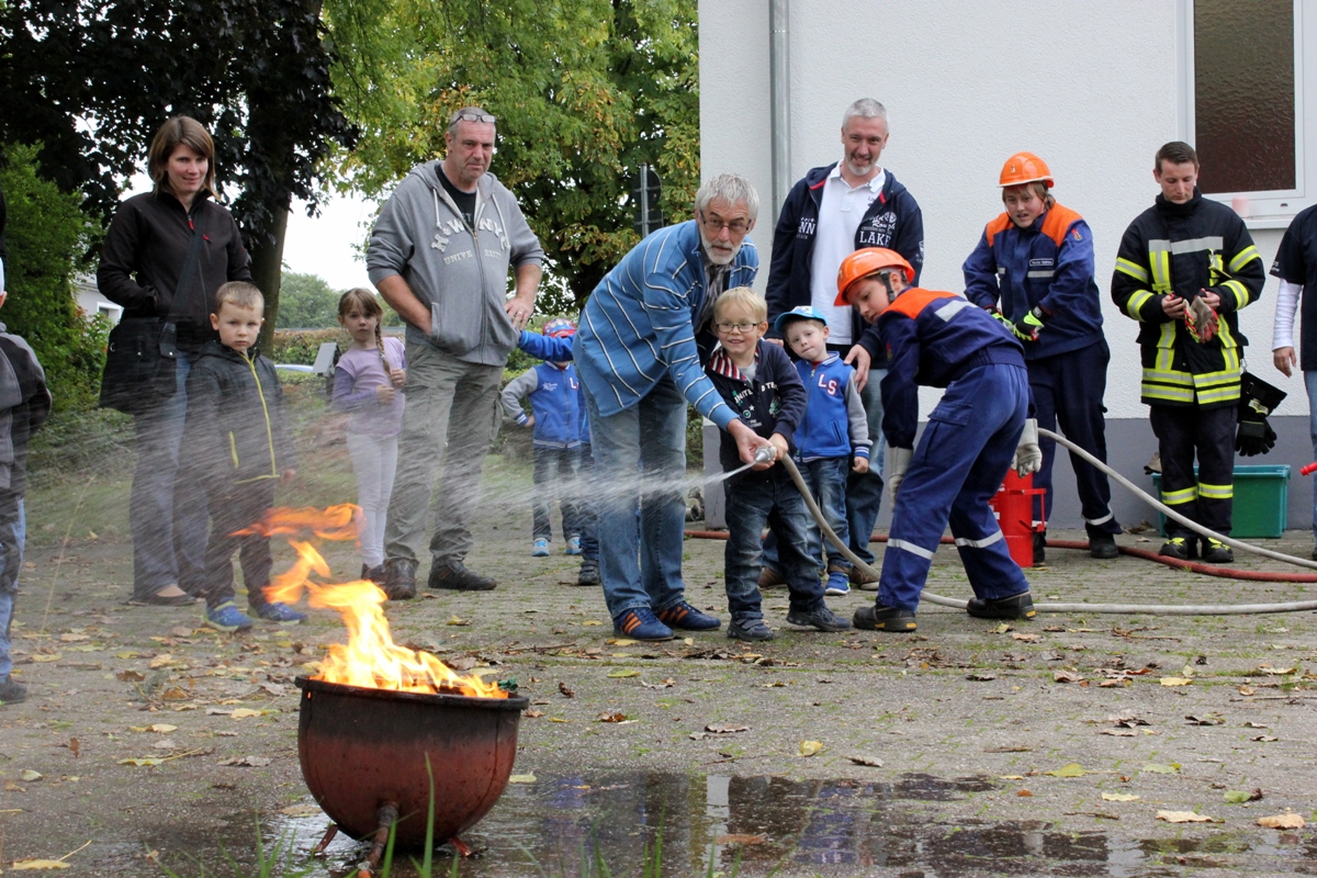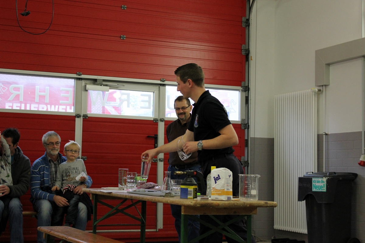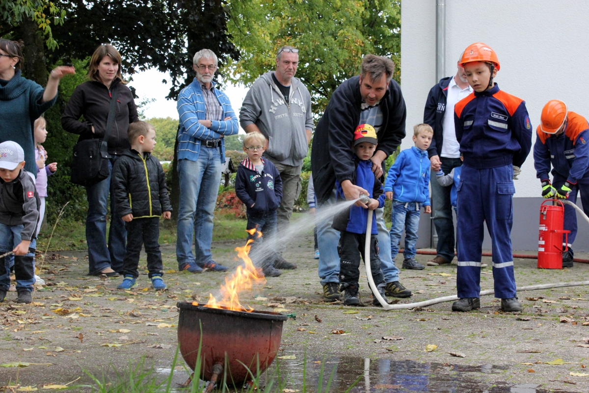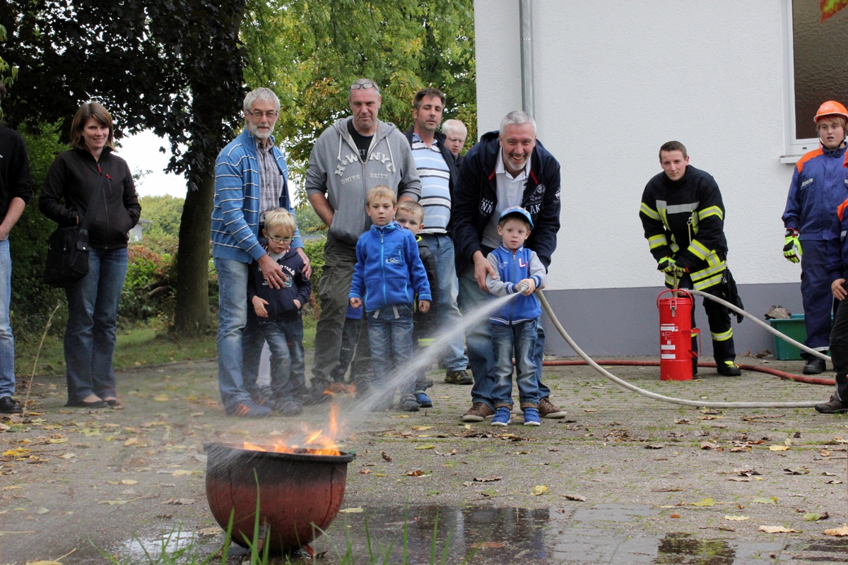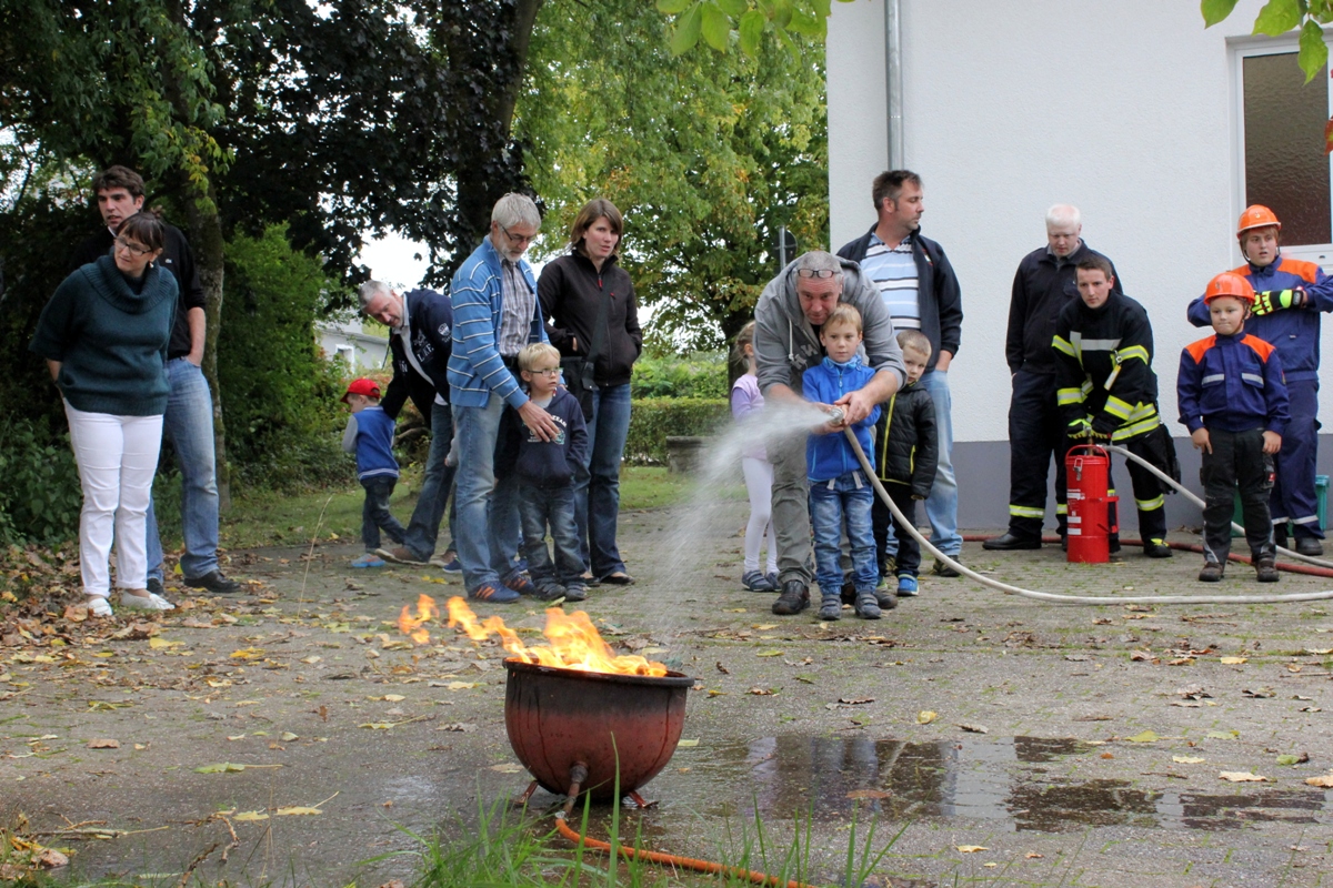 Am 26.09.2015 war es wieder soweit. Nach dem großen Zuspruch der Auftaktveranstaltung im Juni 2015 veranstaltete der Löschbezirk Habach gemeinsam mit dem Förderverein der Freiw. Feuerwehr Eppelborn – Löschbezirk Habach e.V. und der Praxis für Physiotherapie PhysioMed Stefanie Schmitt-Lang wieder einen besonderen Tag bei der Feuerwehr. Diesmal nahmen 12 Kinder aus Habach und Umgebung an der Veranstaltung teil und konnten das Element Feuer näher kennen lernen. In kleinen Experimenten wurde den Kindern zum Beispiel näher gebracht warum ein Nagel nicht brennt, aber Metallspäne schon. Auch wurde aus kleinen Haushaltsmitteln ein Feuerlöscher gebaut, welcher auch tatsächlich Feuer löschen kann. Im Anschluss an die Experimente hieß es dann wieder Wasser Marsch: Mit der Kübelspritze und dem Beisein ihrer Eltern duften die Kinder nun auch endlich ein echtes Feuer löschen. Natürlich durften die Kids auch durch die großen Feuerwehrautos klettern und sich alles aus nächster Nähe ansehen. Am Ende gab es wieder eine Kleinigkeit zu Essen und ein besonderer Tag bei der Feuerwehr neigte sich dem Ende zu. Ein besonderer Dank gilt bei dieser Veranstaltung dem Löschbezirk Eppelborn, welcher mit zwei Fahrzeugen, der Jugendfeuerwehr samt Betreuer mit vor Ort war und eine starke Jugendfeuerwehr präsentierte und zugleich auch als Helfer zur Verfügung standen. Auch dem Förderverein der Freiw. Feuerwehr Eppelborn – Löschbezirk Habach e.V. sowie Stefanie Schmitt-Lang gilt ein großes Dankeschön, welche bei der Organisation zur Verfügung standen und sich um die Verpflegung der Kinder kümmerten. [b]Für alle Neugierigen: Im Nächsten Jahr, höchstwahrscheinlich im April 2016 wird die Veranstaltungsreihe fortgesetzt. [/b] [infobox title="Zum Hintergrund"] Die Jugendfeuerwehr des Löschbezirk Habach besteht derzeit aus zwei Jugendfeuerwehrmitgliedern, einem Mädchen und einem Jungen, die derzeit an den Übungen bei der Jugendfeuerwehr im Löschbezirk Eppelborn teilnehmen können. Um wieder zu einer eigenen und selbstständigen Gruppe wachsen zu können sucht der Löschbezirk Habach, wie auch viele andere Löschbezirke der Feuerwehr Eppelborn dringend Nachwuchs, sodass auf für die kommenden Jahrzehnte die Sicherheit der Bürgerinnen und Bürger gewährleistet werden kann. Du bist zwischen 8 und 16 Jahren? – Dann melde dich doch bitte bei uns, wenn du auf der Suche nach einem spannenden und aufregenden Hobby bist. Wir und die gesamte Jugendfeuerwehr Eppelborn würden sich freuen, dich in unseren Reihen begrüßen zu dürften. [/infobox]