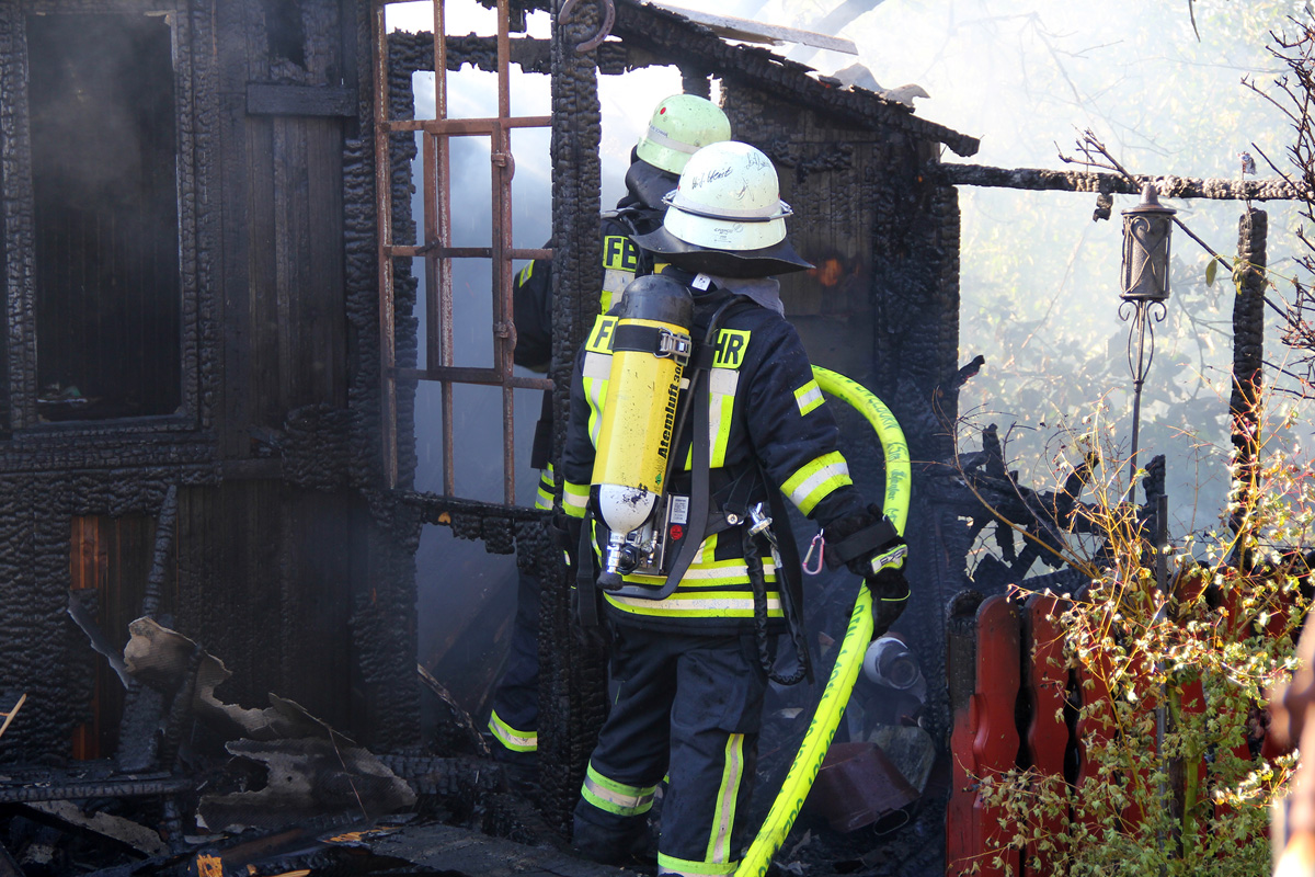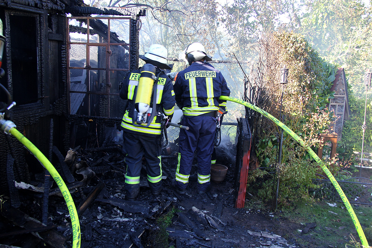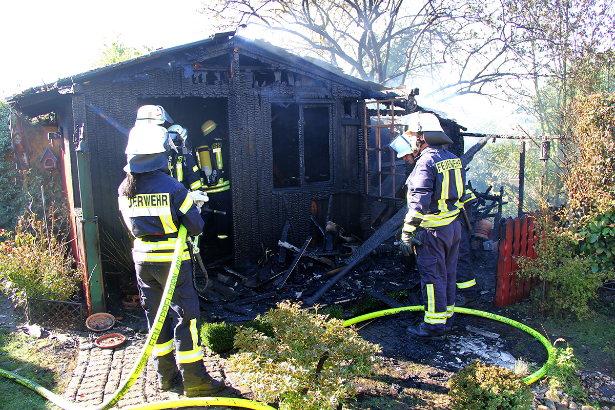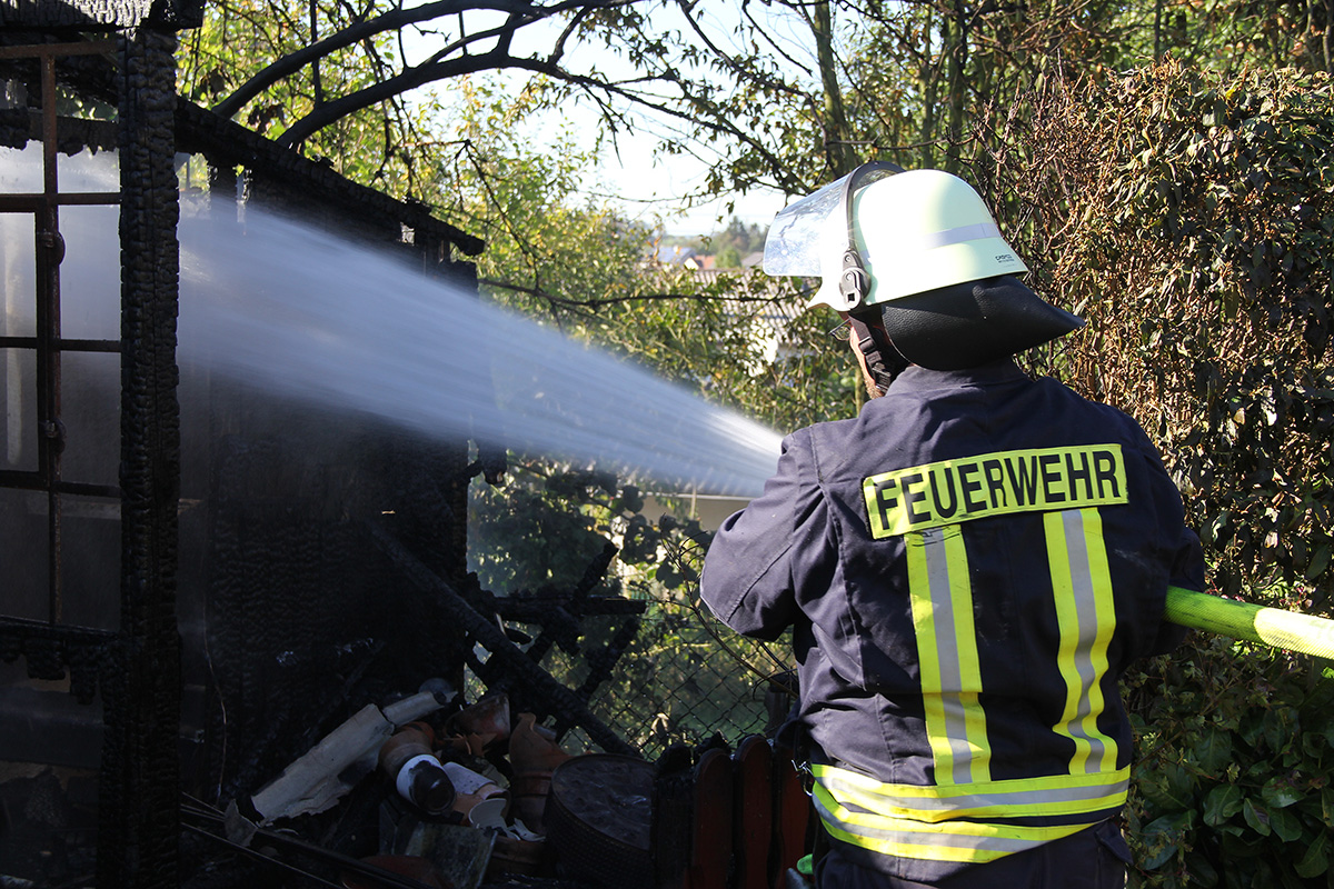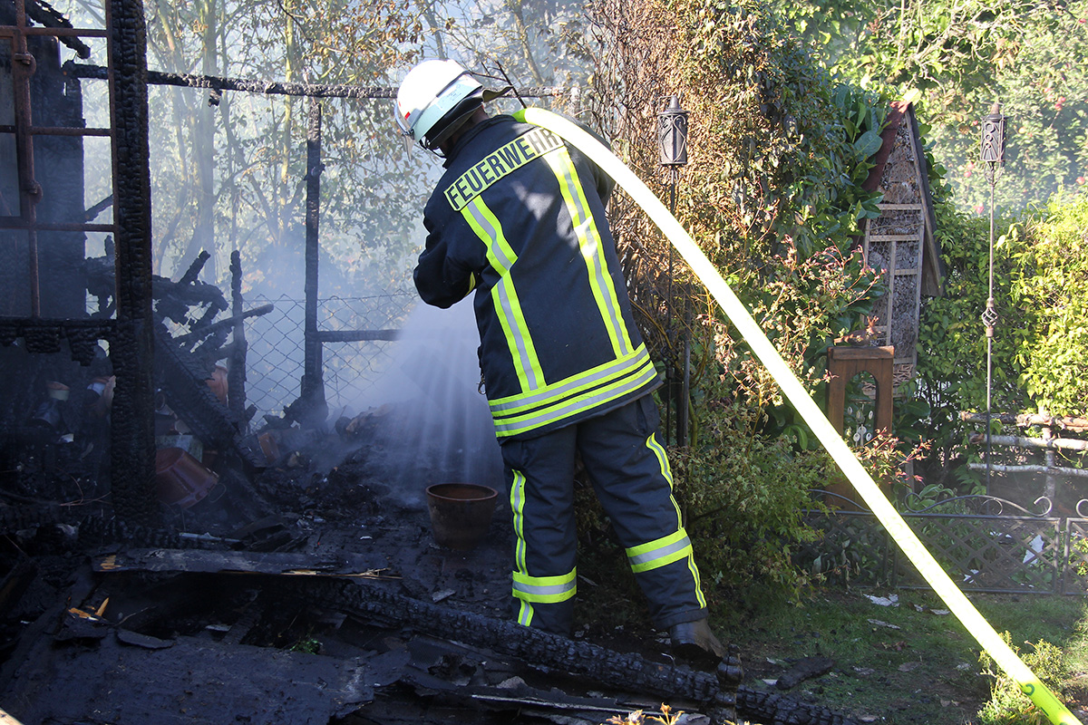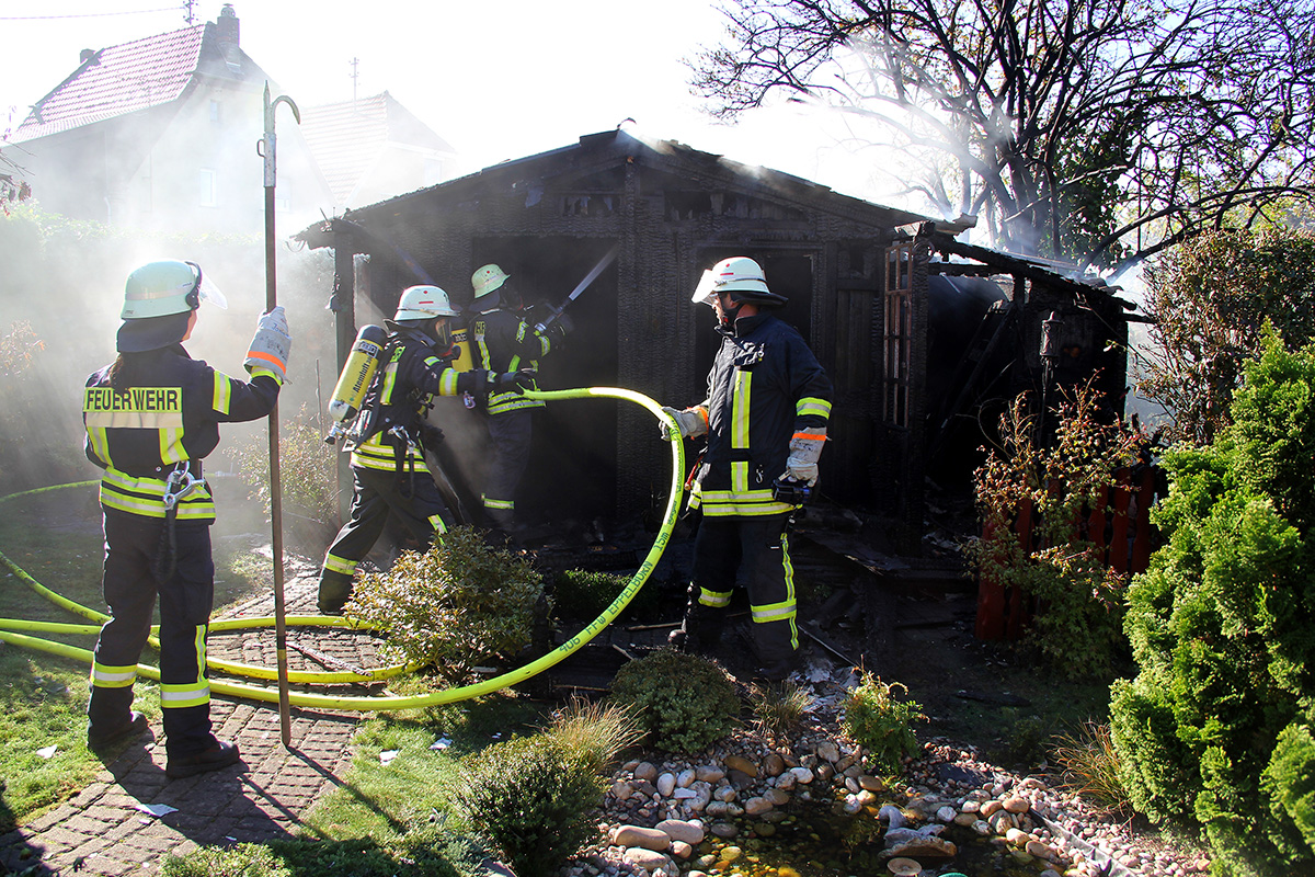 Ein Gartenhaus stand hinter einem Anwesen in der Kossmannstraße am Nachmittag des 02. Oktober 2015 in Vollbrand. Ein Nachbar war auf den Brand aufmerksam geworden und hatte sofort die Feuerwehr verständigt.