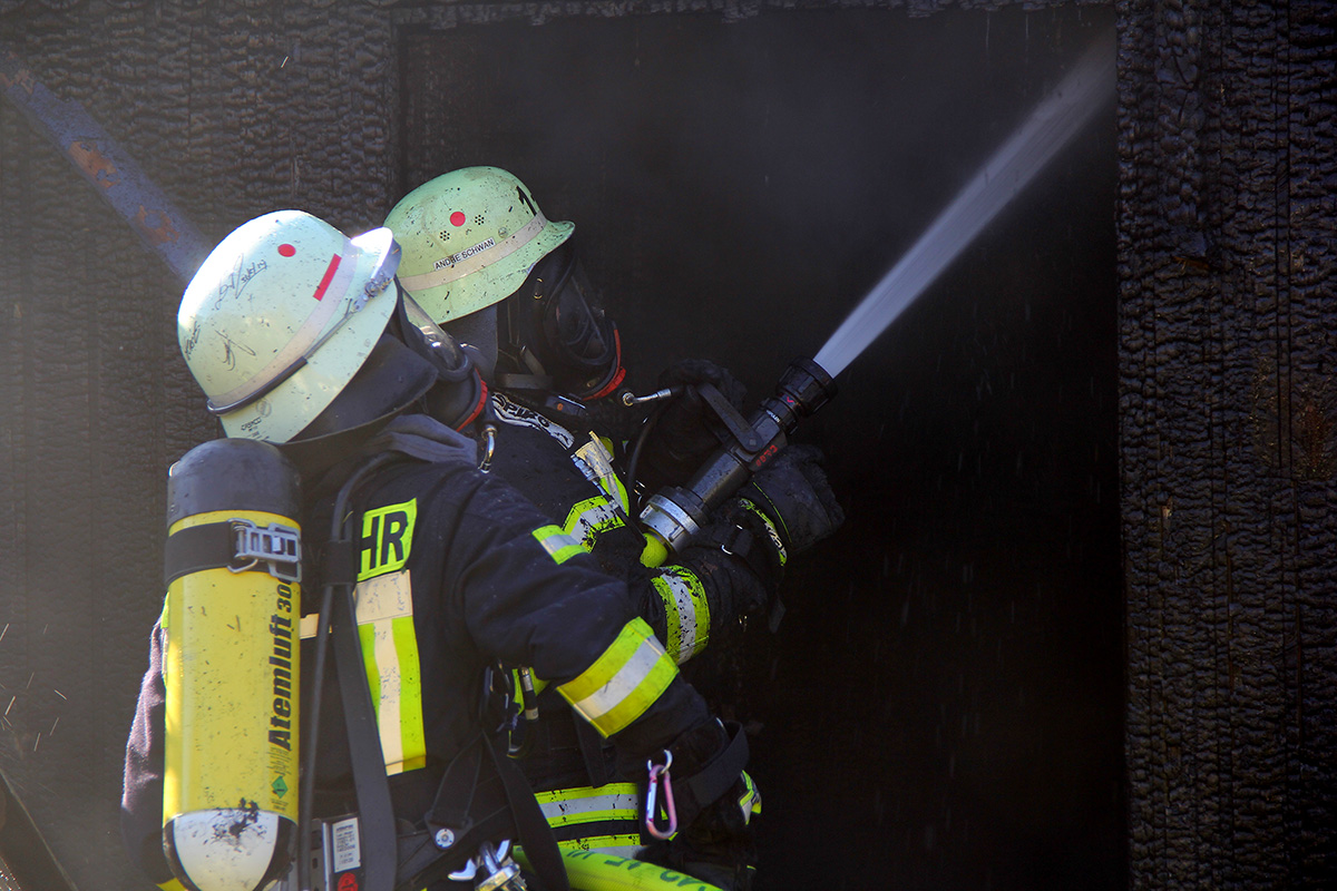 Die Feuerwehr musste sich über den rückwärtigen Bereich des Grundstücks Zugang zur Einsatzstelle verschaffen, da der Garten nicht über die Kossmannstraße zugänglich war. Unter Atemschutz begann ein Trupp sofort mit der Brandbekämpfung, während mit einem weiteren Rohr die Umgebung um den Brand abgeschirmt wurde. Das Feuer konnte rasch unter Kontrolle gebracht werden.