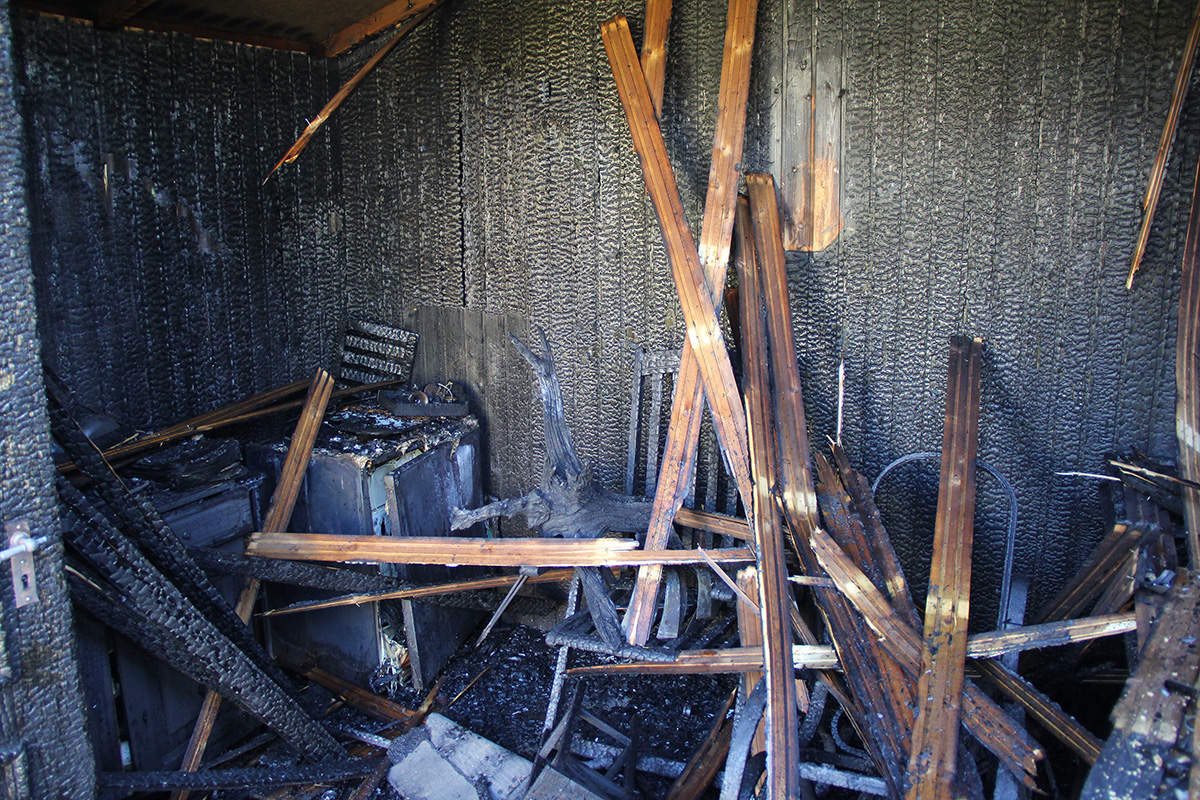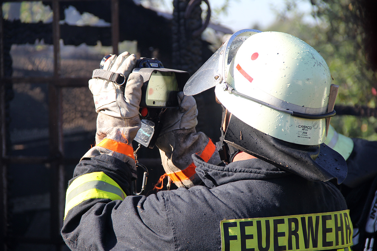 Die Deckenverkleidung sowie Teile des Gartenhauses mussten während der Löscharbeiten eingerissen werden, um verdeckte Brandnester abzulöschen. Mehrfach wurde die Einsatzstelle dazu auch mit der Wärmebildkamera kontrolliert.