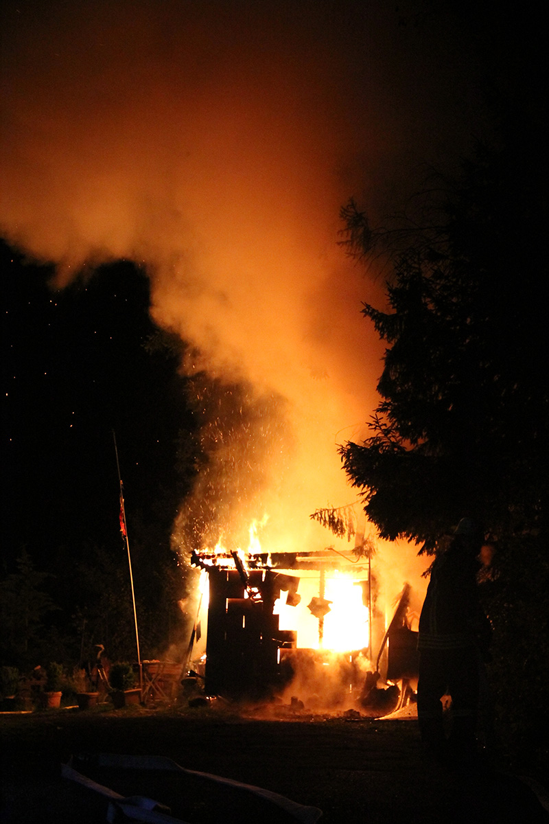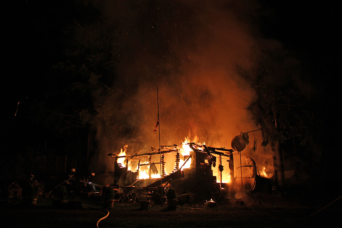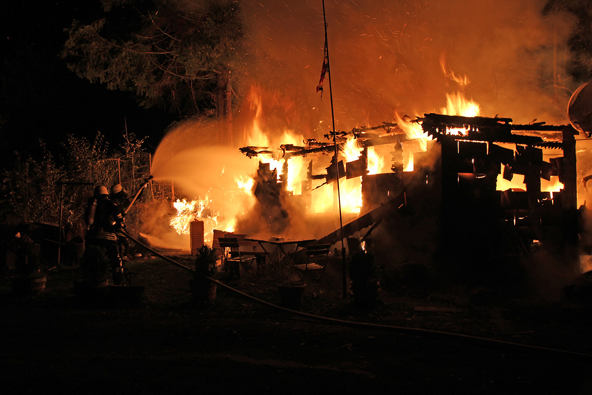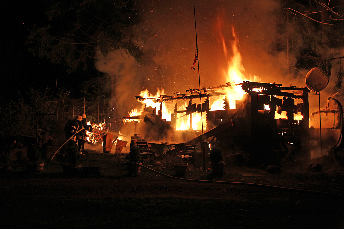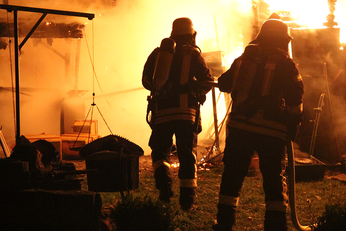 Beim Eintreffen der Feuerwehr nur wenige Minuten nach der Alarmierung stand der Wohnwagen sowie ein hölzerner Vorbau bereits im Vollbrand. Das Feuer drohte, auf den sich unmittelbar anschließenden Wald auszubreiten. Unter schwerem Atemschutz gingen die Einsatzkräfte gegen die Flammen vor. Unterdessen wurde an einem im unmittelbarer Nähe gelegenen Weiher eine Pumpe zur Wasserversorgung in Stellung gebracht.