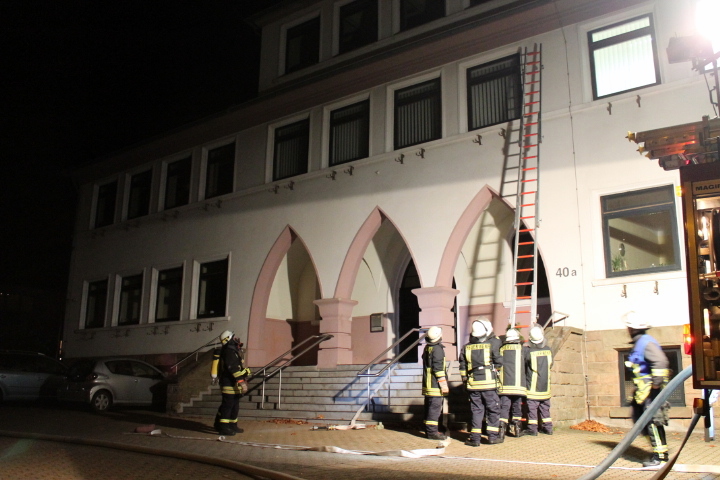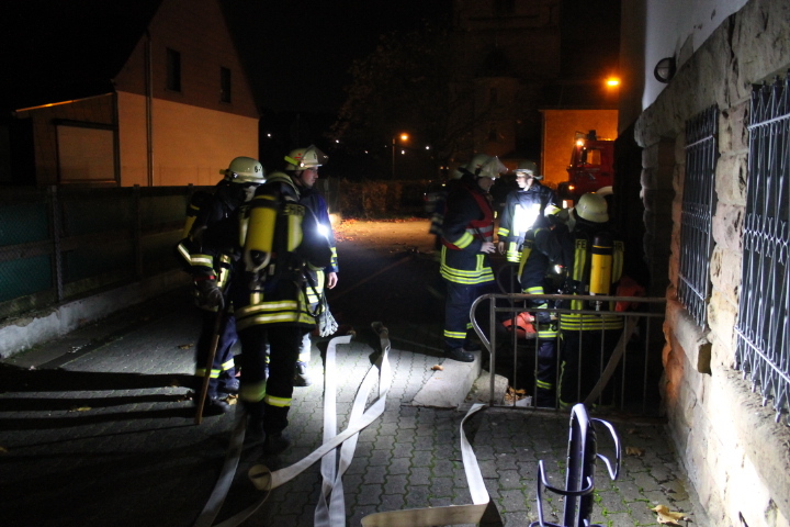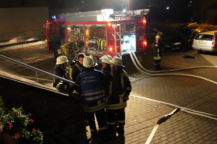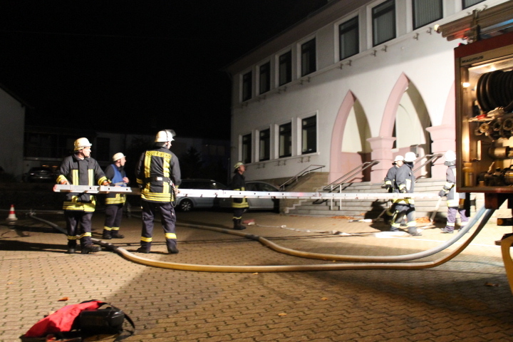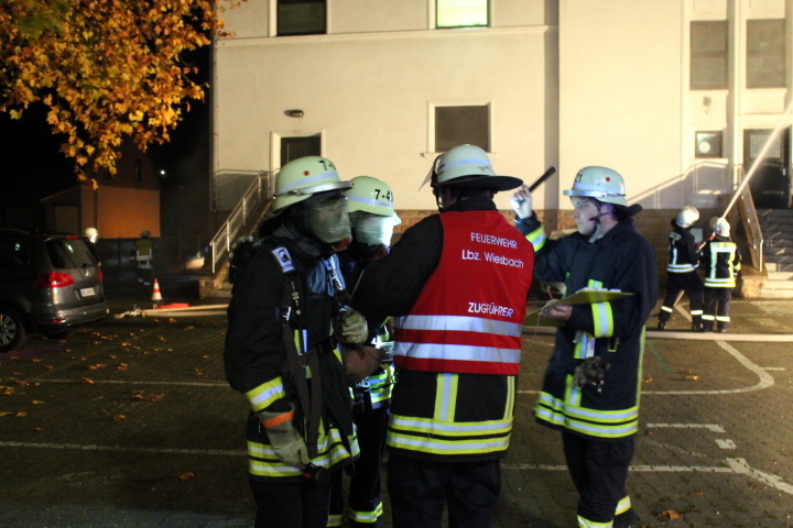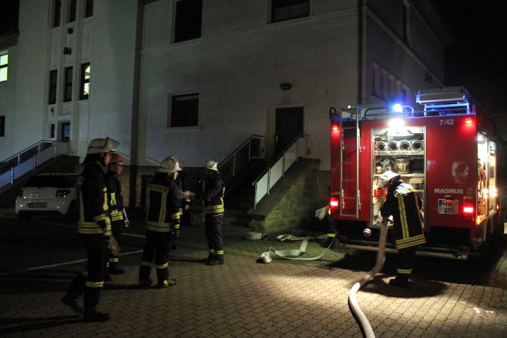 Einsatz in der Montessori-Grundschule in Humes: Nach der Meldung einer unklaren Rauchentwicklung rücken die Löschbezirke Humes und Wiesbach am Abend des 30. Oktober 2015 zu einer Übung in dem Schulgebäude im Ortsteil Humes aus. Nach einem Defekt an der Heizungsanlage sei es zu einem Brand gekommen, erfahren die Einsatzkräfte bei der Ankunft. Mehrere Personen werden noch in dem Gebäude vermisst.