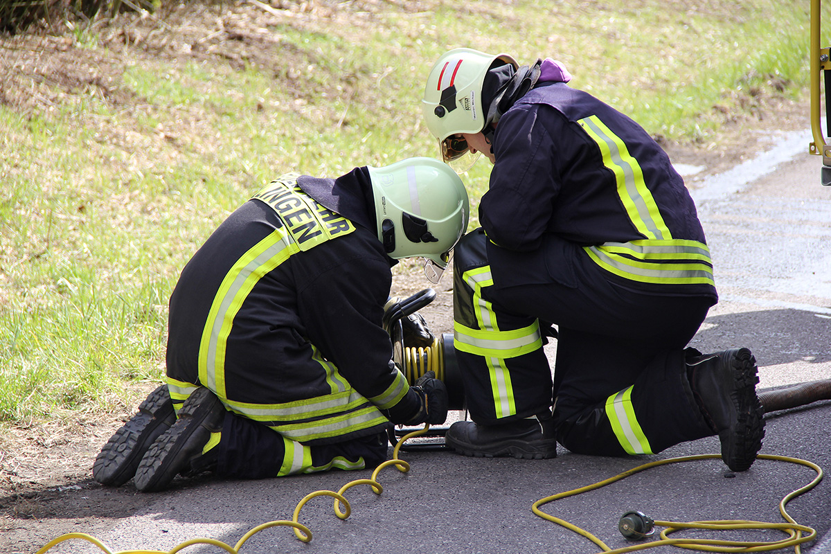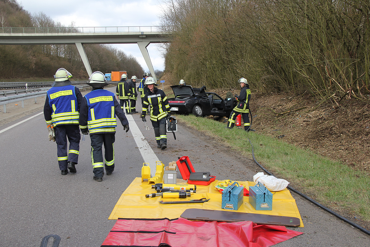 Beim Eintreffen der Rettungskräfte war der Fahrer bei Bewusstsein. Er war in seinem Fahrzeug eingeschlossen, aber nicht eingeklemmt. Nach einer ersten Untersuchung des Notarztes musste deshalb die Fahrertür mit hydraulischen Rettungsgeräten entfernt und das Dach des Cabriolets geöffnet werden.