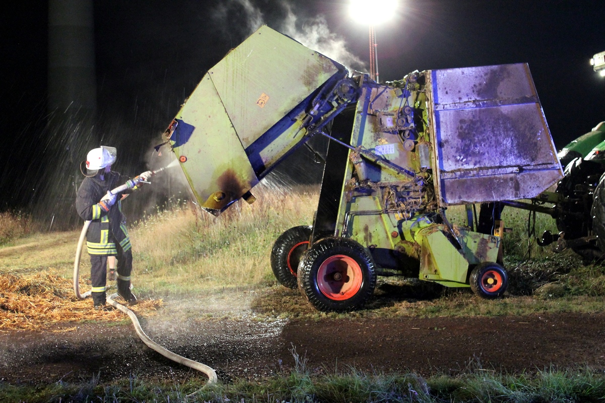 Rundballenpresse brannte auf dem großen Elmersberg in Hierscheid
