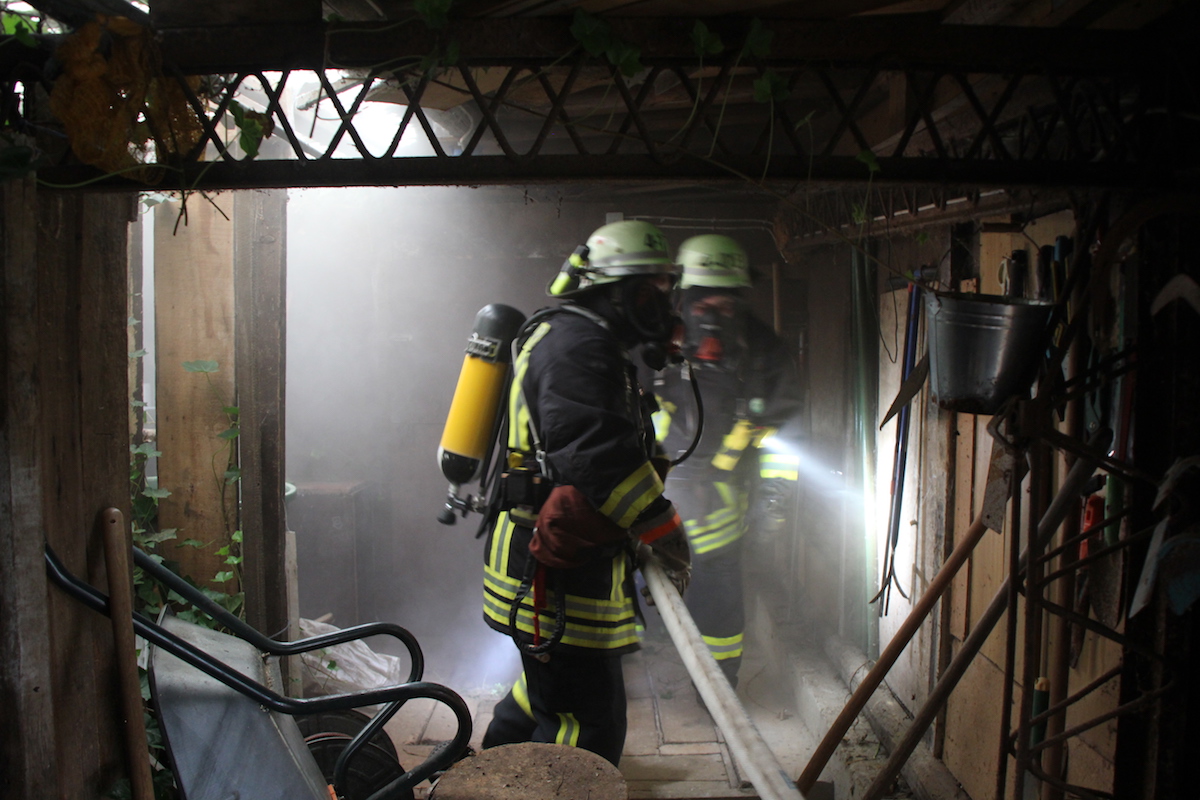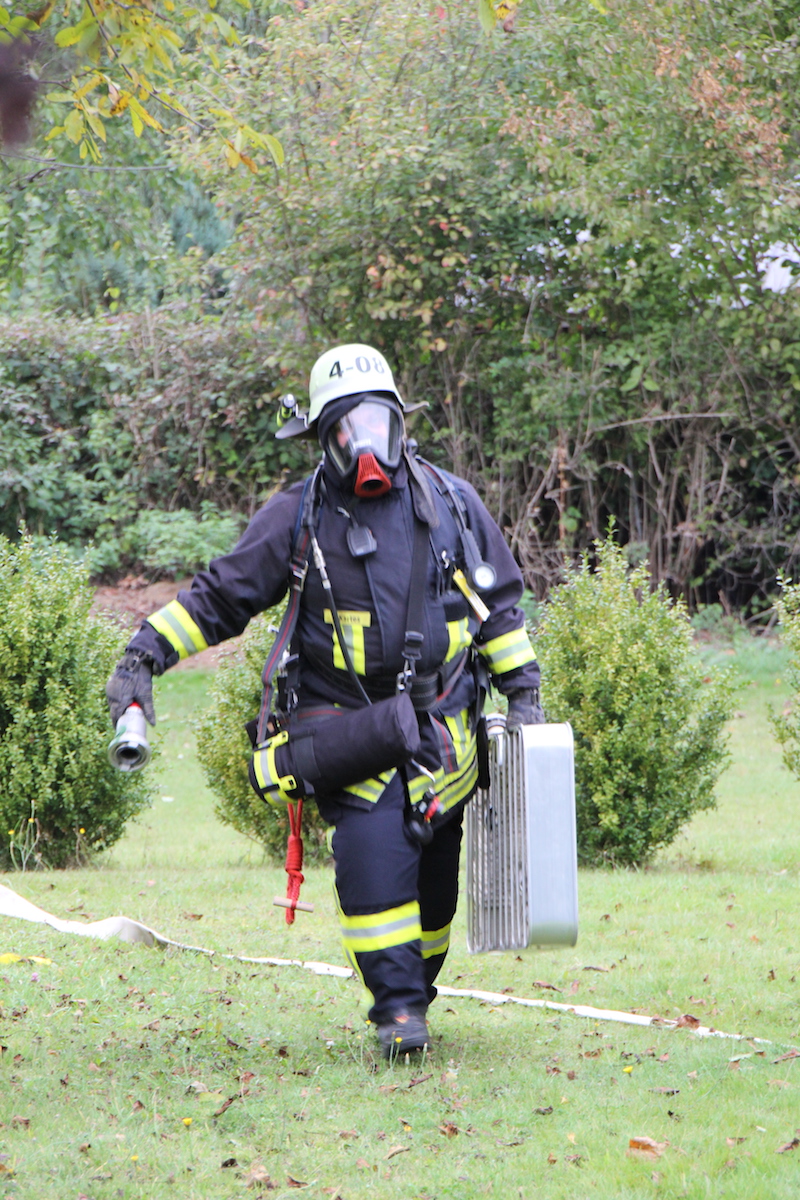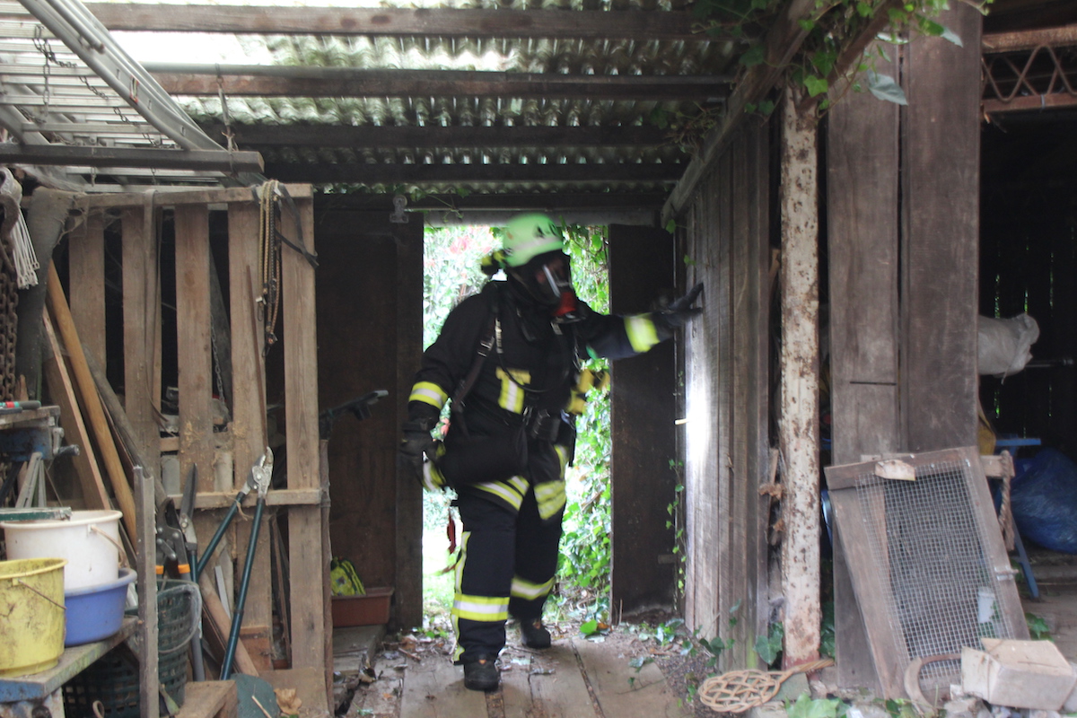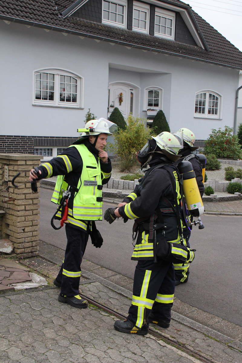 Schwarzgraue Rauchwolken über einem Schuppen in einem weitläufigen Garten, der Eigentümer des Anwesens wird im Objekt vermutet. Die Feuerwehr wurde durch einen besorgten Anwohner alarmiert. Dieses realistische Szenario war die Vorgabe einer unangekündigten Alarmübung im Löschbezirk Habach. Nachdem von der Leitstelle gegen 17.20 Uhr Alarm über Funkmeldeempfänger und Sirene ausgelöst wurde, war der alarmierte Löschbezirk Habach innerhalb kürzester Zeit mit 2 Fahrzeugen am Einsatzort in der Mittelstraße. Hier wurden die anrückenden Feuerwehrkräfte durch den Löschbezirksführer René Finkler als Übungsleiter aufgeklärt, dass es sich „nur“ um eine Einsatzübung unter realistischen Bedingungen handelte. Innerhalb kürzester Zeit wurden die Schlauchleitungen verlegt und die Wasserversorgung vom Hydrant bis zum Fahrzeug und weiter bis zum Einsatzort aufgebaut. Der Angriffstrupp konnte nun unter Atemschutz in den unübersichtlichen Gartenbereich zum brennenden Schuppen vorgehen. Das stark verrauchte Gebäude wurde umfassend abgesucht und die Person innerhalb kürzester Zeit aufgefunden. Der schwer Verletzte wurde ins Freie gebracht und an den Rettungsdienst übergeben. Eine besondere Herausforderung ist das Absuchen von Räumlichkeiten im Brandfall, da der Angriffstrupp im verrauchten Objekt bei sehr geringer Sicht die Person auffinden muss. Zusätzlich wird das Vorgehen noch durch die mitgeführten Materialien erschwert, so muss der mit Wasser gefüllte Schlauch immer am Mann sein, um bei Bedarf sofort Löschmaßnahmen einleiten zu können. Parallel zum Innenangriff wurde durch einen weiteren Trupp der Brand im Außenbereich effektiv bekämpft. Erschwert wurde die Arbeit der Feuerwehrkräfte, wie leider oft in der Realität auch, durch Schaulustige die aus Neugier und Unwissenheit die Maßnahmen der Feuerwehr behinderten. In diesem Fall war es aber eine bewusste Übungsvorgabe um einen wirklichkeitsnahen Ablauf darzustellen. Abschließend wurde der Verlauf der Übung und die getroffenen Maßnahmen durch die gesamte Gruppe reflektiert. Jeder konnte hier einbringen was in der Übung gut gelaufen war und welche Punkte verbessert werden können. Als Endergebnis konnte der Löschbezirksführer René Finkler feststellen, dass im Ablauf einige Punkte optimiert werden müssen. Aber das Übungsziel wurde eindeutig erreicht und alle erforderlichen Maßnahmen wurden zeitnah eingeleitet.