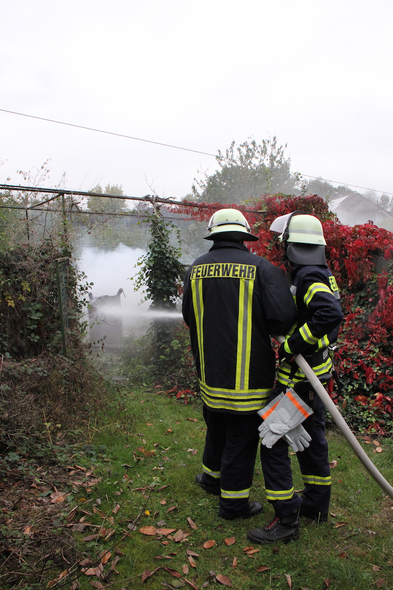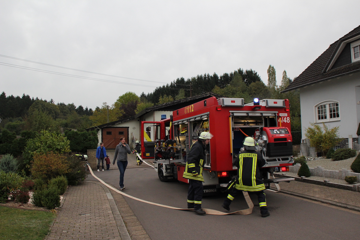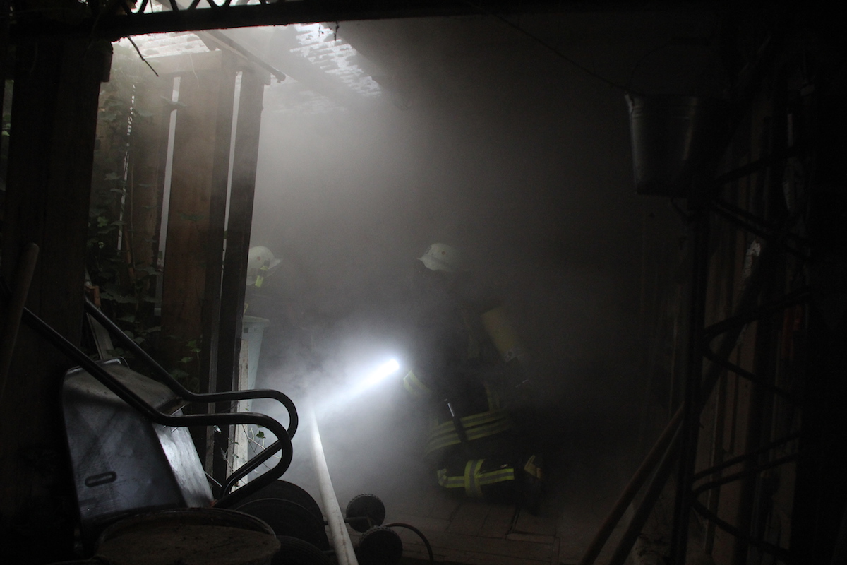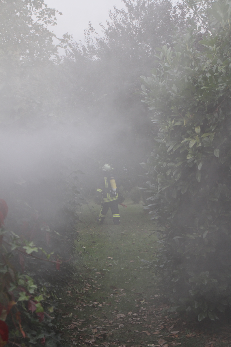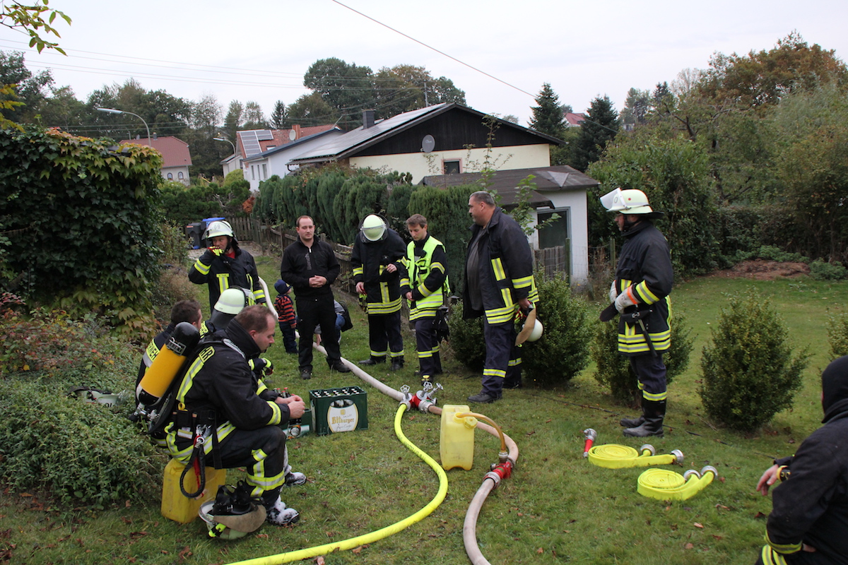 Schwarzgraue Rauchwolken über einem Schuppen in einem weitläufigen Garten, der Eigentümer des Anwesens wird im Objekt vermutet. Die Feuerwehr wurde durch einen besorgten Anwohner alarmiert. Dieses realistische Szenario war die Vorgabe einer unangekündigten Alarmübung im Löschbezirk Habach. Nachdem von der Leitstelle gegen 17.20 Uhr Alarm über Funkmeldeempfänger und Sirene ausgelöst wurde, war der alarmierte Löschbezirk Habach innerhalb kürzester Zeit mit 2 Fahrzeugen am Einsatzort in der Mittelstraße. Hier wurden die anrückenden Feuerwehrkräfte durch den Löschbezirksführer René Finkler als Übungsleiter aufgeklärt, dass es sich „nur“ um eine Einsatzübung unter realistischen Bedingungen handelte. Innerhalb kürzester Zeit wurden die Schlauchleitungen verlegt und die Wasserversorgung vom Hydrant bis zum Fahrzeug und weiter bis zum Einsatzort aufgebaut. Der Angriffstrupp konnte nun unter Atemschutz in den unübersichtlichen Gartenbereich zum brennenden Schuppen vorgehen. Das stark verrauchte Gebäude wurde umfassend abgesucht und die Person innerhalb kürzester Zeit aufgefunden. Der schwer Verletzte wurde ins Freie gebracht und an den Rettungsdienst übergeben. Eine besondere Herausforderung ist das Absuchen von Räumlichkeiten im Brandfall, da der Angriffstrupp im verrauchten Objekt bei sehr geringer Sicht die Person auffinden muss. Zusätzlich wird das Vorgehen noch durch die mitgeführten Materialien erschwert, so muss der mit Wasser gefüllte Schlauch immer am Mann sein, um bei Bedarf sofort Löschmaßnahmen einleiten zu können. Parallel zum Innenangriff wurde durch einen weiteren Trupp der Brand im Außenbereich effektiv bekämpft. Erschwert wurde die Arbeit der Feuerwehrkräfte, wie leider oft in der Realität auch, durch Schaulustige die aus Neugier und Unwissenheit die Maßnahmen der Feuerwehr behinderten. In diesem Fall war es aber eine bewusste Übungsvorgabe um einen wirklichkeitsnahen Ablauf darzustellen. Abschließend wurde der Verlauf der Übung und die getroffenen Maßnahmen durch die gesamte Gruppe reflektiert. Jeder konnte hier einbringen was in der Übung gut gelaufen war und welche Punkte verbessert werden können. Als Endergebnis konnte der Löschbezirksführer René Finkler feststellen, dass im Ablauf einige Punkte optimiert werden müssen. Aber das Übungsziel wurde eindeutig erreicht und alle erforderlichen Maßnahmen wurden zeitnah eingeleitet.
