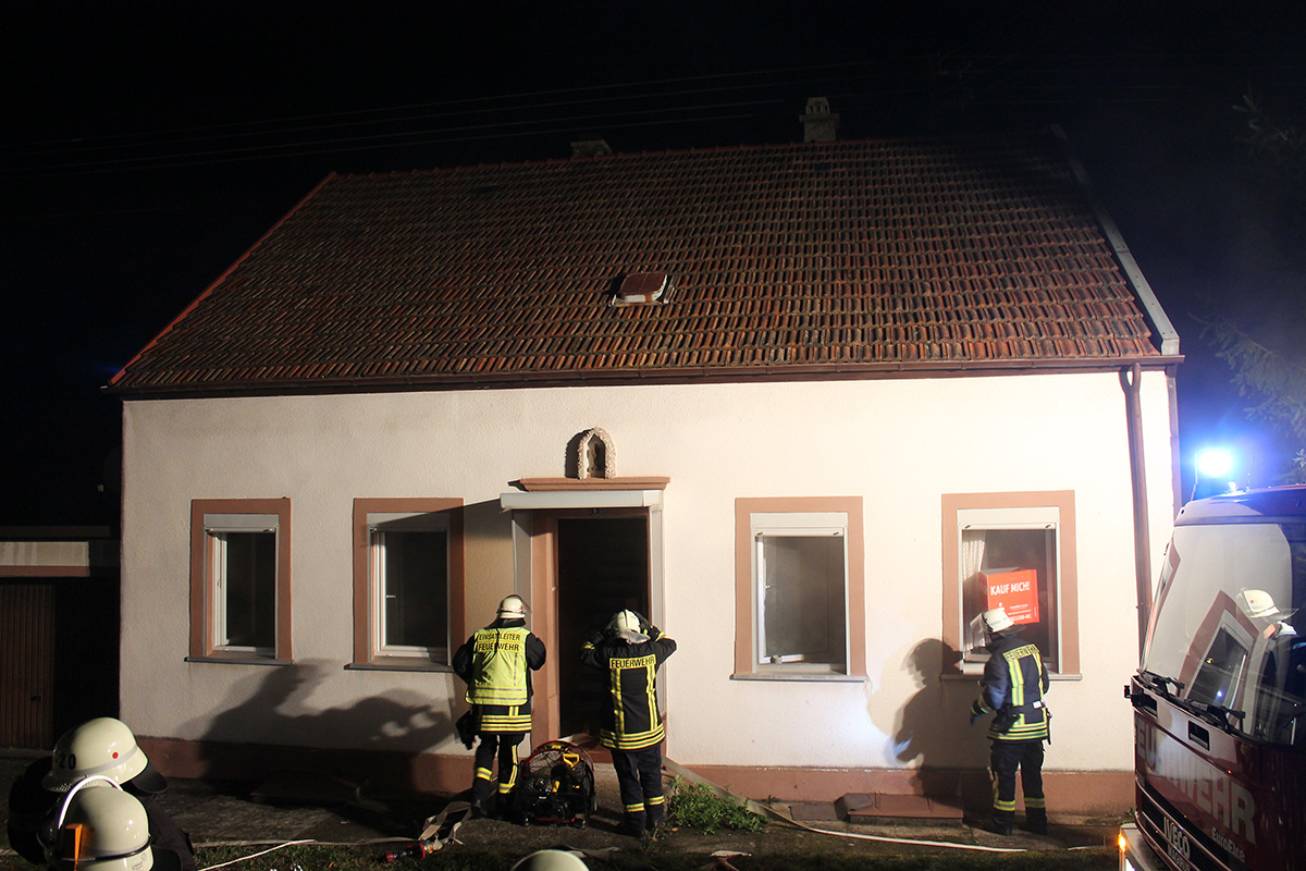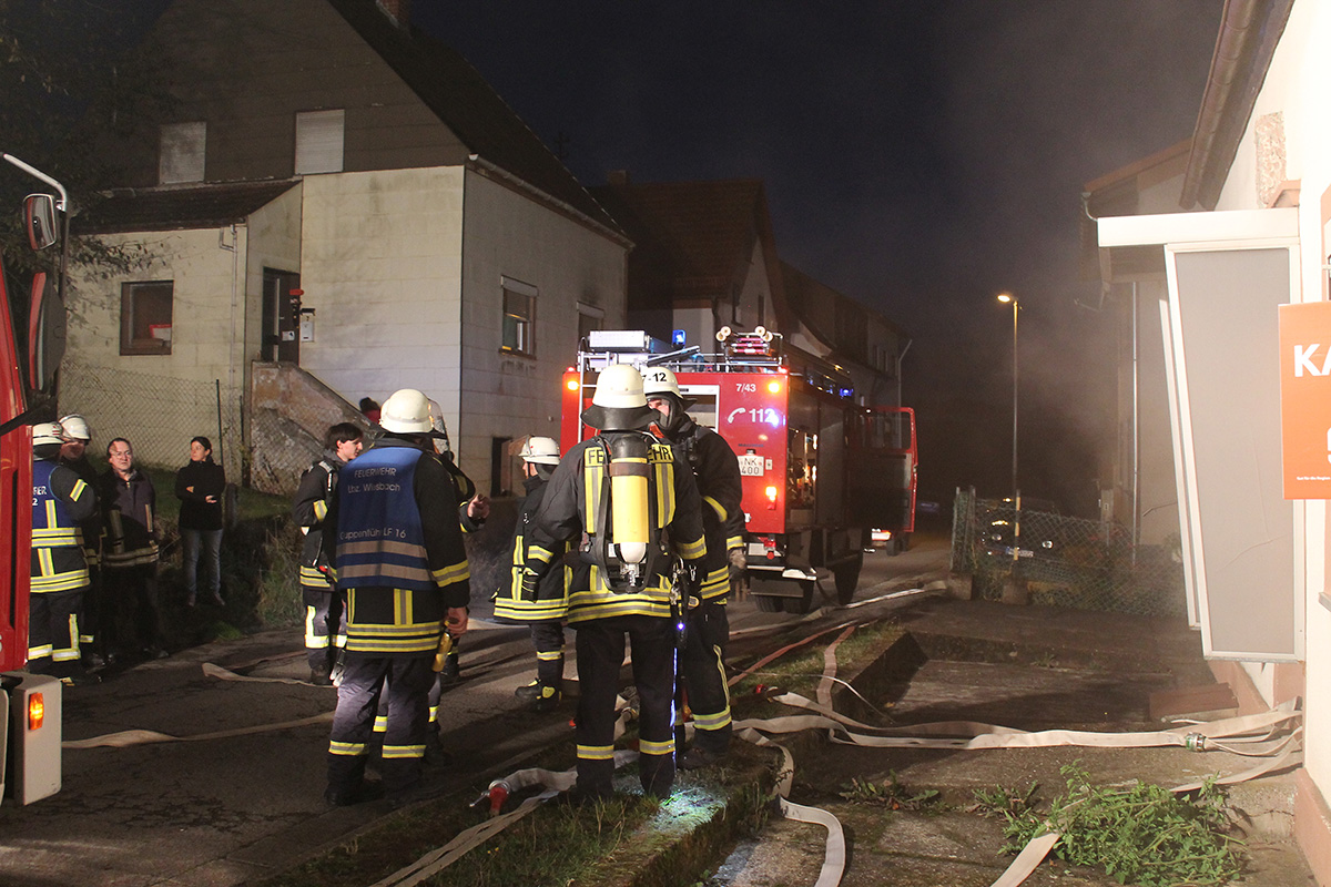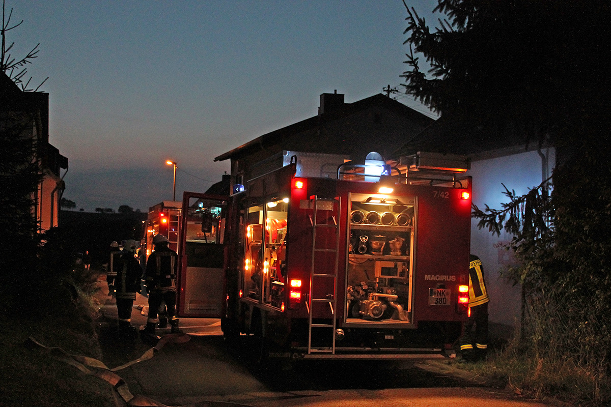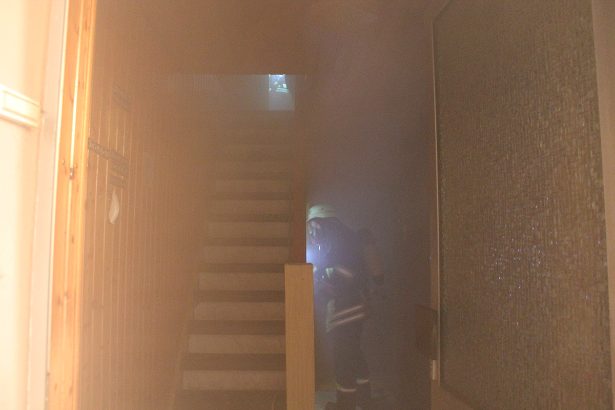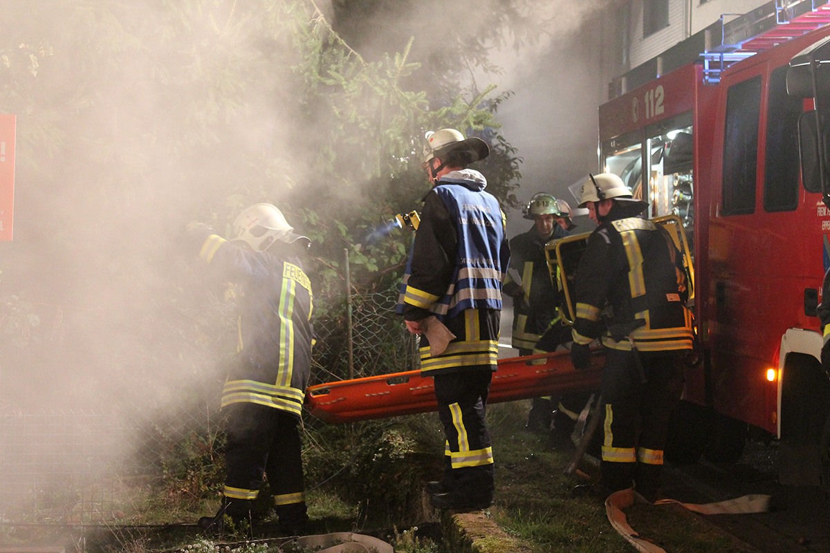 Der Brand war im Heizungsraum im Keller ausgebrochen und konnte sich durch einen Versorgungsschacht schnell bis zum Badezimmer im Erdgeschoss ausbreiten. Vier Personen mussten in dem komplett verrauchten Gebäude gefunden und der Brand bekämpft werden. Mit Atemschutzgeräten ausgerüstet wurde die Räume von mehreren Trupps abgesucht und die vermissten Bewohner schnell gerettet. Die Helfer der First-Responder-Gruppe übernahmen dann vor dem Gebäude die weitere Betreuung und Versorgung.