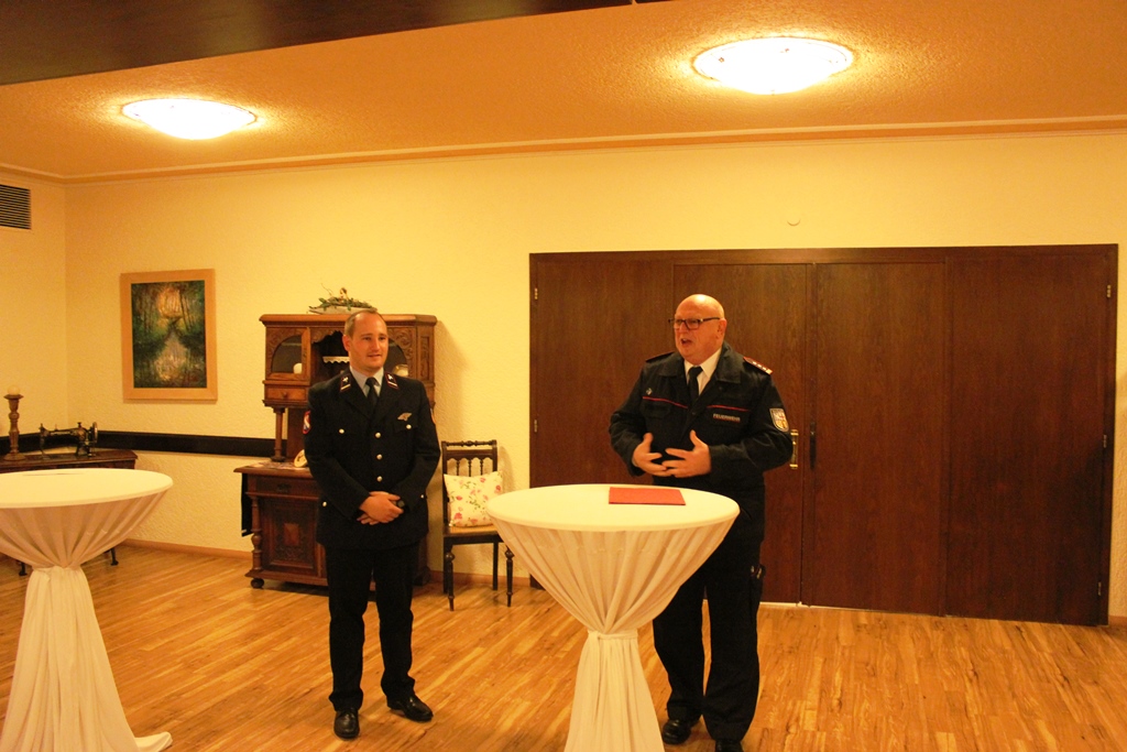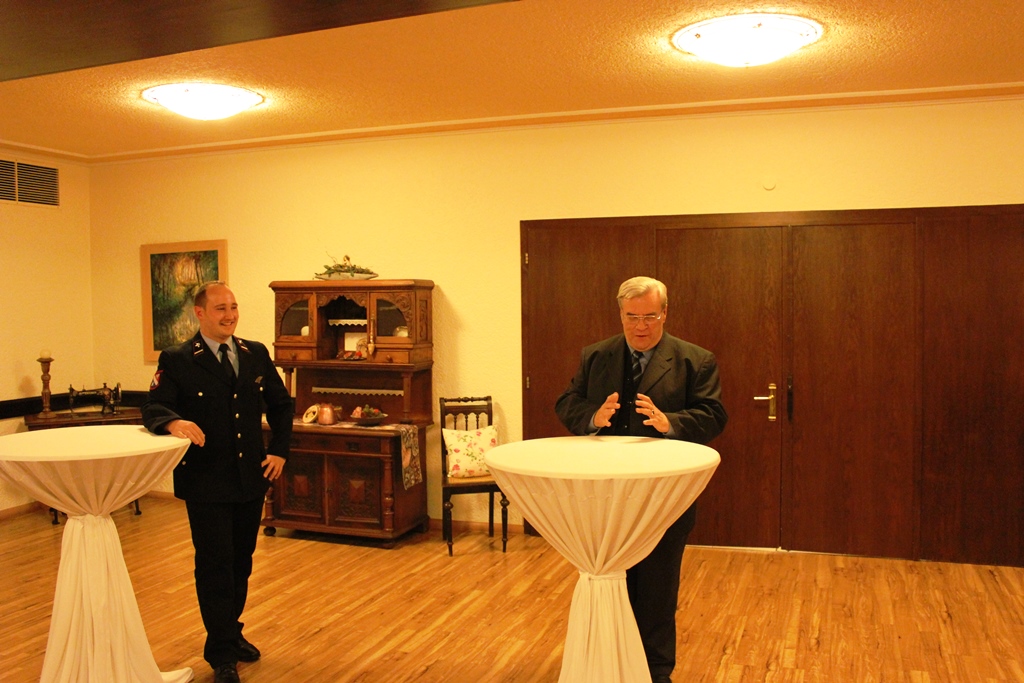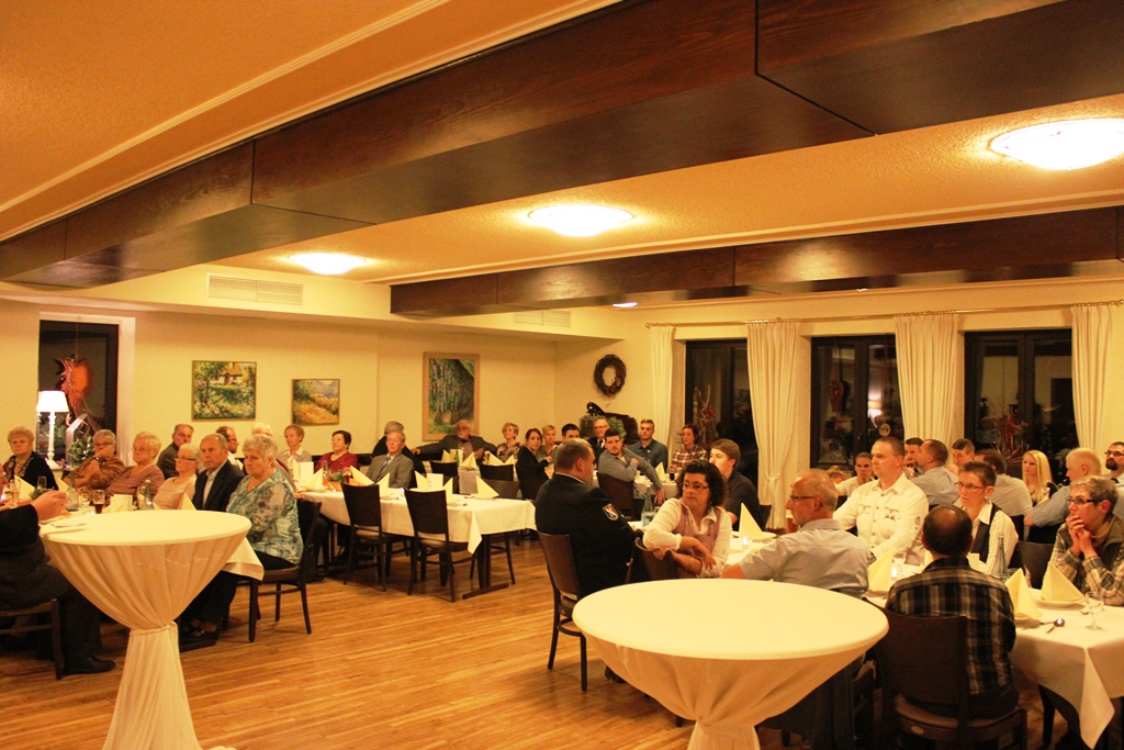 Es ist einmal wieder Zeit DANKE zu sagen. Unter diesem Motto fand am Abend des 22. Oktober der Familienabend des Löschbezirk Habach im Gasthaus Rech statt. Zu Beginn konnte Löschbezirksführer René Finkler die rund 55 Teilnehmer am diesjährigen Familienabend begrüßen. Mit dabei waren neben den aktien Kameraden auch die Alterswehr, Jugendwehr sowie der Vorstand des Fördervereins des Löschbezirk Habach mit Ehefrauen und Partnerinnen anwesend. Als Ehrengäste konnte Finkler den ersten Beigeordneten der Gemeinde Eppelborn Berthold Schmitt (in Vertretung für Bürgermeisterin Birgit Müller-Closset, welche sich in Urlaub befindet), Wehrführer Klaus Theis sowie Ortsvorsteher Peter Dörr jeweils mit Gattin begrüßen. Löschbezirksführer Finkler dankte der Einsatzabteilung für Ihr Engagement, welches sie im Jahr 2016 dem Dienste des Nächsten entgegen gebracht haben. Dies sei ein ganz besonderes Jahr gewesen, in diesem man Rekord-Einsatzzahlen verzeichnet habe. Dieses Jahr wurde sehr stark vom heftigen Unwetter anfangs Juni in Dirmingen geprägt und wird so schnell nicht in Vergessenheit geraten. Zu insgesamt 37 Einsätzen musste der Löschbezirk Habach dieses Jahr bereits ausrücken. Auch neben dem regulären Übungs- und Einsatzdienst seien ebenfalls unzählige Stunden zum Wohle der Dorfgemeinschaft geleistet worden. Hier ist besonders das diesjährige Waldfest der Feuerwehr zu erwähnen, welches sehr gut verlief. Bei all diesen Aktivitäten wurde der Löschbezirk Habach von vielen Helferinnen und Helfern sowie den Mitgliedern des Fördervereins und der Alterswehr tatkräftig unterstützt. Eine solche aktive Teilnahme an der Dorfgemeinschaft, wäre ohne die zusätzlichen Helfer nur eingeschränkt möglich. Ganz besonders stolz sei René Finkler darauf, dass er in diesem Jahr bereits zwei neue Mitglieder als Quereinsteiger für den aktiven Feuerwehrdienst werben konnte um so seine leistungsfähige Mannschaft weiter auszubauen. Im Anschluss überbrachten auch der erste Beigeordnete, der Wehrführer sowie der Ortsvorsteher dankende Grußworte an die Anwesenden. Von diesem Punkt ging es über zu anstehenden Ehrungen und Beförderungen. Zuerst wurde das Neumitglied Jens Kiefer mit Wirkung zum September 2016 in die Aktive Wehr übernommen. Des Weiteren wurde Frank Kartes (in Abwesenheit) für 25 Jahre Mitgliedschaft mit dem Feuerwehr- Ehrenzeichen am Bande in Bronze und Jörg Dörr für 35 Jahre Mitgliedschaft mit dem Feuerwehr-Ehrenzeichen in Gold geehrt. Befördert wurden Simon Ziegler und Andreas Ney vom Feuerwehrmann zum Oberfeuerwehrmann, Georg Kiefer sowie Peter Kartes (beide in Abwesenheit) vom Oberfeuerwehrmann zum Hauptfeuerwehrmann sowie Löschbezirksführer René Finkler und sein Stellvertreter Johannes Wagner vom Löschmeister zum Oberlöschmeister. Nach dem offiziellen Teil, wurde dann bei gemütlichem Beisammensein und guten Essen aus dem Hause Rech bis spät in die Nacht zusammengesessen, sich ausgetauscht und gefeiert.