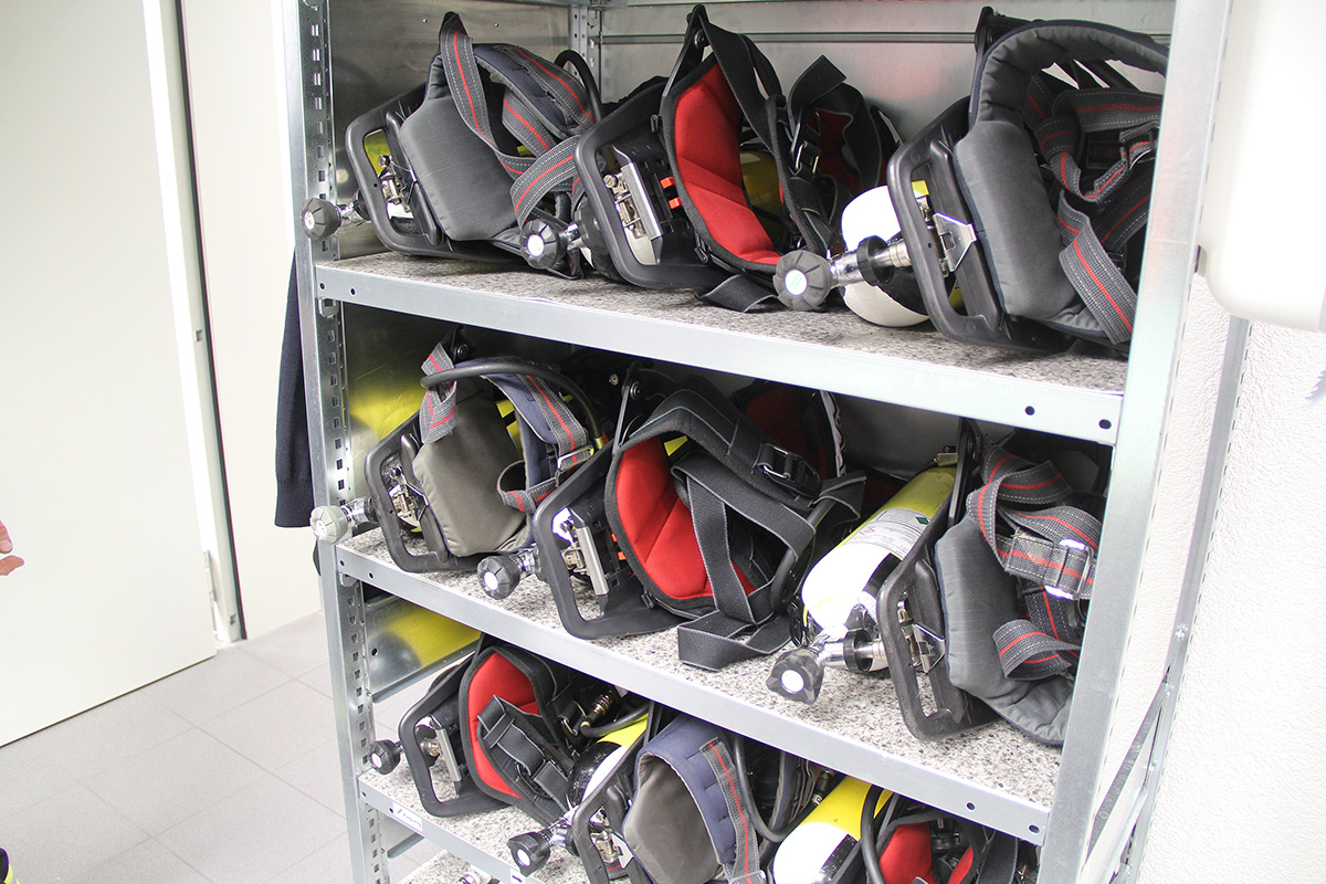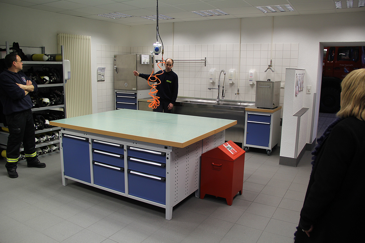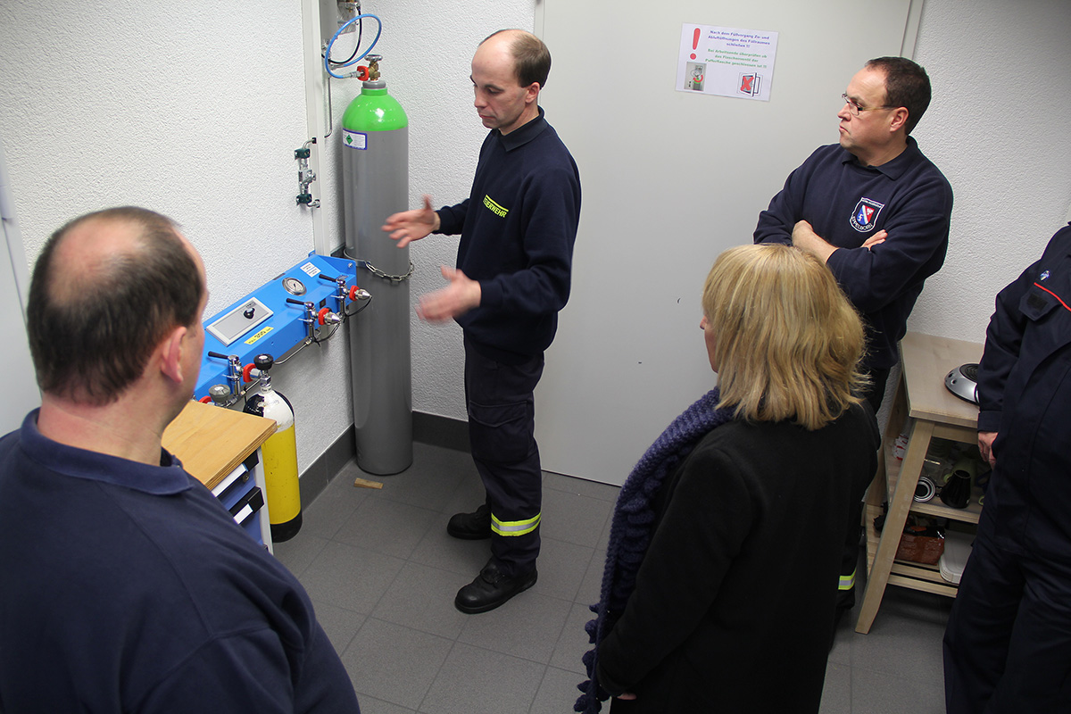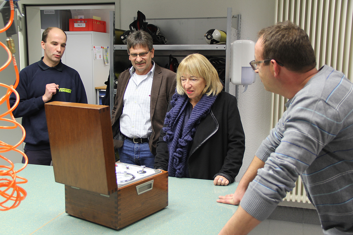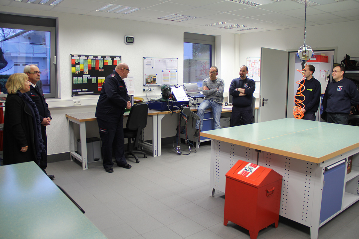 Bei immer mehr Einsätzen ist die Feuerwehr gezwungen, Arbeiten unter Atemschutzeinsatz durchzuführen. In der Atemschutzwerkstatt werden die Atemschutzgeräte dann nach jedem Einsatz und nach jeder Übung gereinigt, desinfiziert, geprüft und Instand gesetzt. Dort wird dafür gesorgt, dass die Schutzausrüstung der Feuerwehrleute für den Ernstfall optimal gepflegt und gewartet ist. Denn von der Funktion der Geräte hängt das Leben der Einsatzkräfte ab, die sich durch giftigen Brandrauch und chemische Dämpfe bewegen müssen. Die Gemeinde Eppelborn verfügt über 60 Atemschutzgeräte, davon 16 Reservegeräte. Die im Gerätehaus Eppelborn seit 1983 betriebene zentrale Atemschutzwerkstatt war in den letzten Jahren durch technische Entwicklungen und strengere gesetzliche Vorgaben an die Grenzen ihrer Leistungsfähigkeit gestoßen. Da in den bisherigen Räumen keine Erweiterungsmöglichkeiten bestanden, war ein Anbau notwendig geworden. 110.000€ hat die Gemeinde Eppelborn dabei in die neue Atemschutzwerkstatt der Feuerwehr Eppelborn investiert. Zuschüsse gab es vom Land in Höhe von 45.000€. Die vier Gerätewarte Jochen Couturier, Manuel Braun, Oliver Rau und Michael Scherer haben dabei bereits in der Planung mit Rat und Fachwissen unterstützen können. Nachdem ein neuer Atemluftkompressor die neue Atemschutzwerkstatt vervollständigt hat, fand jetzt am vergangenen Freitag auch die offizielle Übergabe mit Bürgermeisterin Birgit Müller-Closset statt. Sie ließ sich von den vier Atemschutzgerätewarten die Ausstattung zeigen und die vielfältigen Wartungs-, Prüf- und Dokumentationsaufgaben erklären. Beeindruckt zeigte sich die Bürgermeisterin von der enormen Verantwortung, die hier in ehrenamtlicher Arbeit übernommen wird. Die neue Atemschutzwerkstatt ist eine wertvolle Investition in die Zukunft und in die Sicherheit nicht nur der Feuerwehrleute, sondern auch in die der Bürgerinnen und Bürger der Gemeinde Eppelborn. Bürgermeisterin Birgit Müller-Closset bedankte sich ganz herzlich bei allen Ehrenamtlichen, die in der Atemschutzwerkstatt mitarbeiten für deren uneigennützigen Einsatz. Es sei Ihnen hoch anzurechnen, dass Sie so viel Freizeit in die Sicherheit aller investieren.