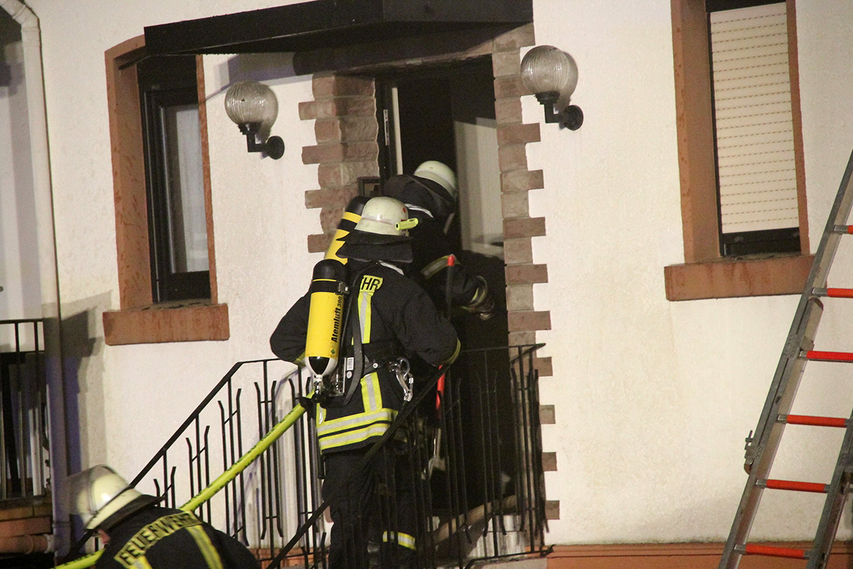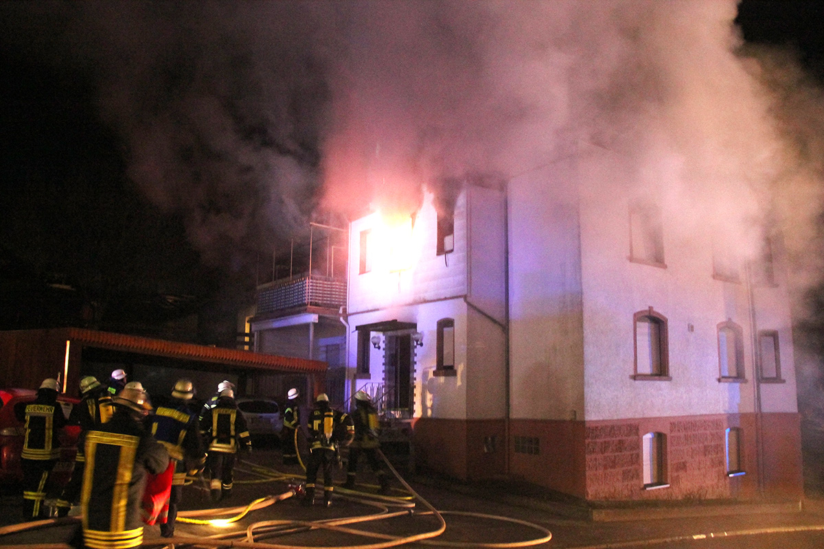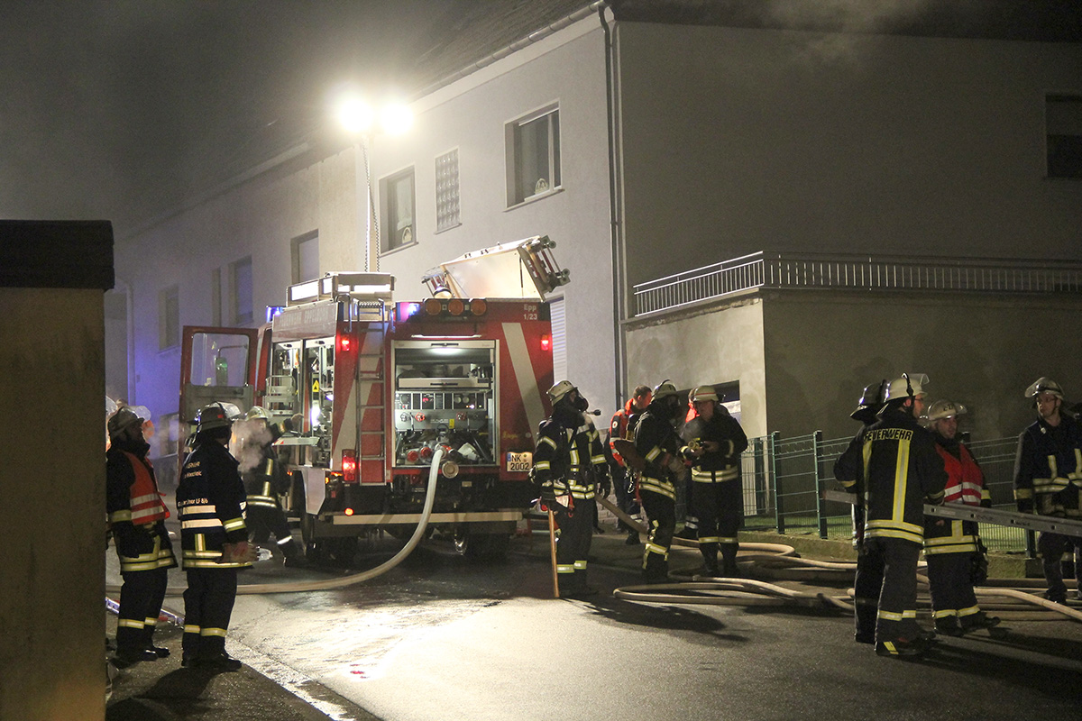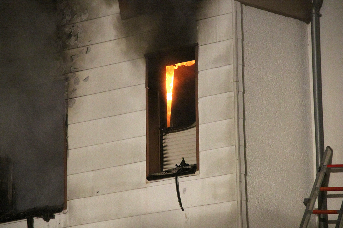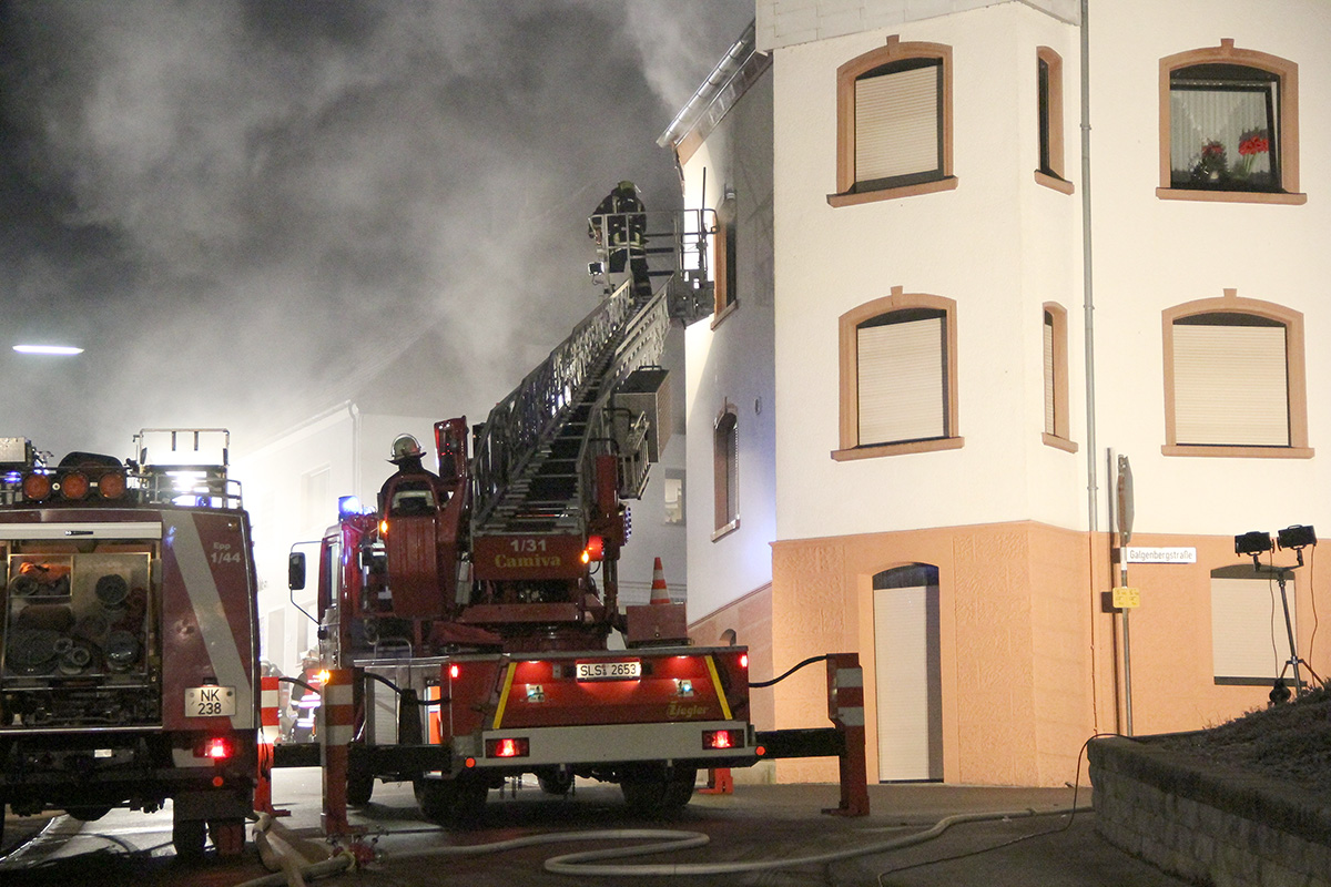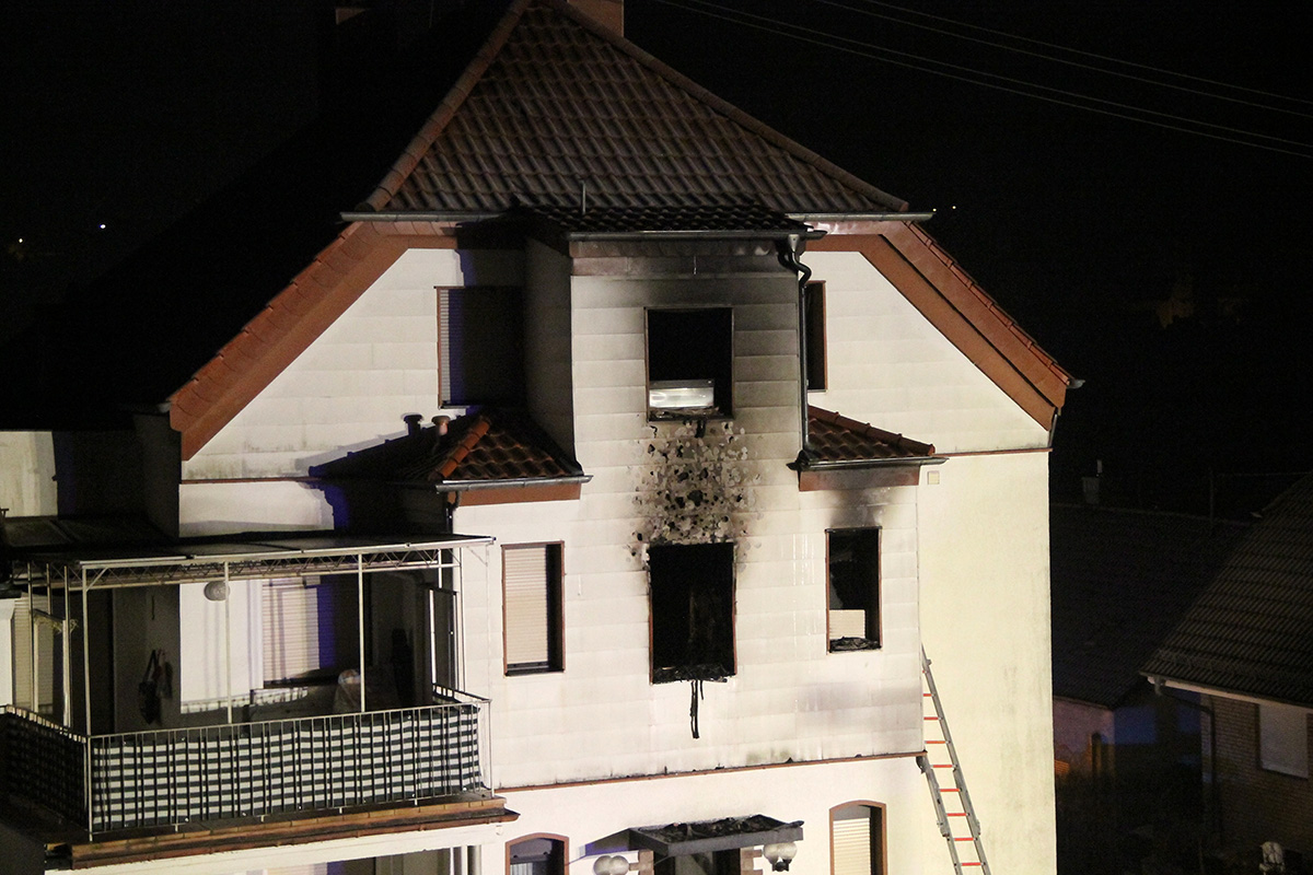Gegen 3:00 Uhr in der Nacht war der Brand in dem Mehrfamilienhaus in der Eppelborner Prümburgstraße ausgebrochen. Aufgeschreckt durch einen lauten Knall wurde eine Bewohnerin auf das Feuer aufmerksam und weckte die übrigen Hausbewohner. Eigene Löschversuche blieben erfolglos.