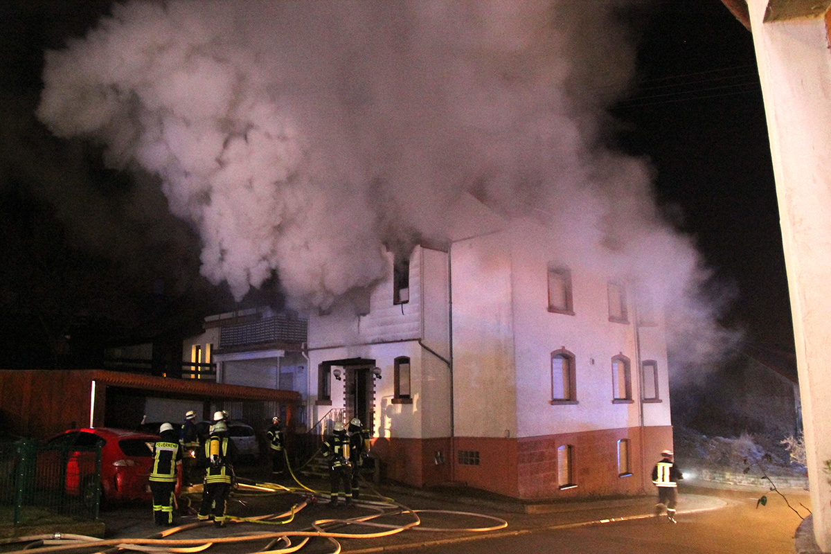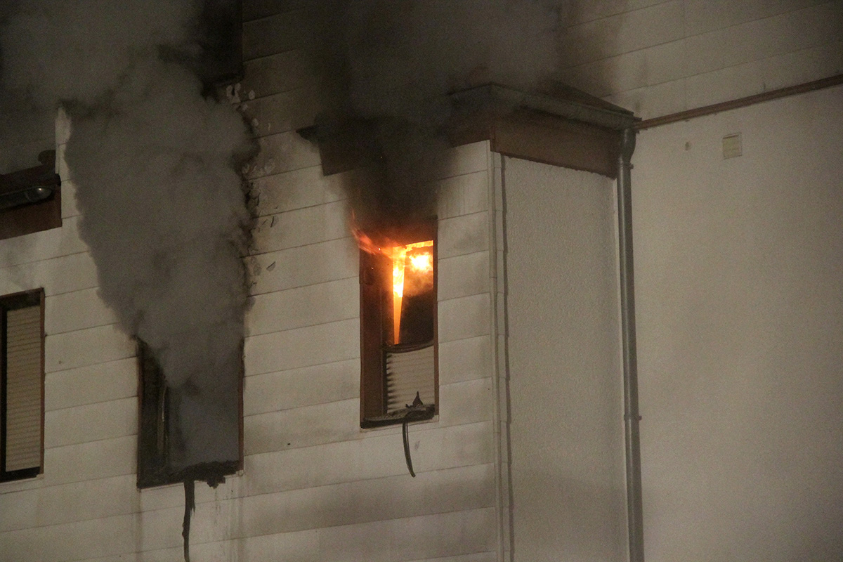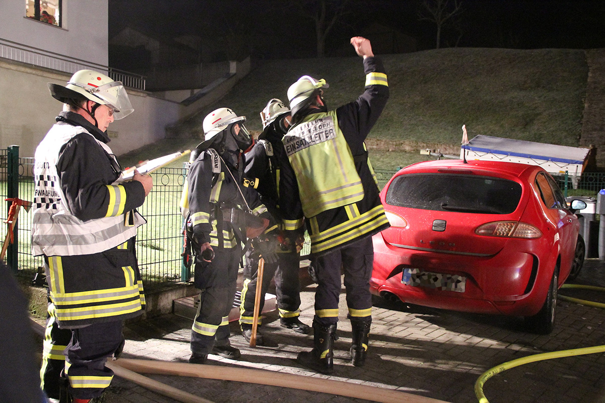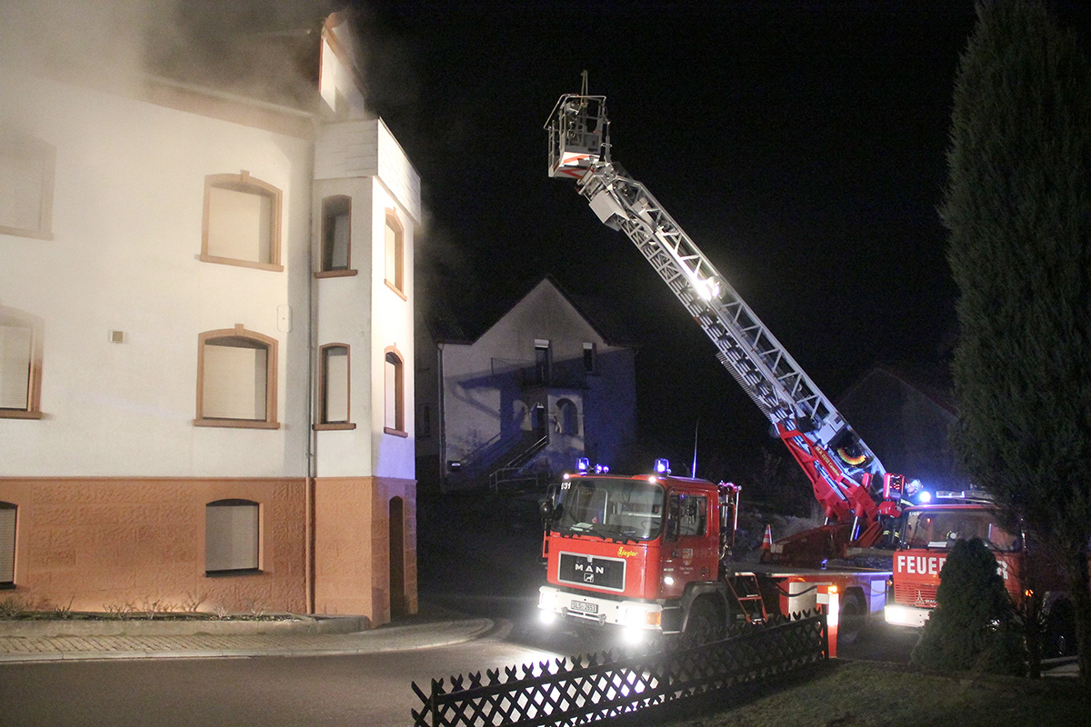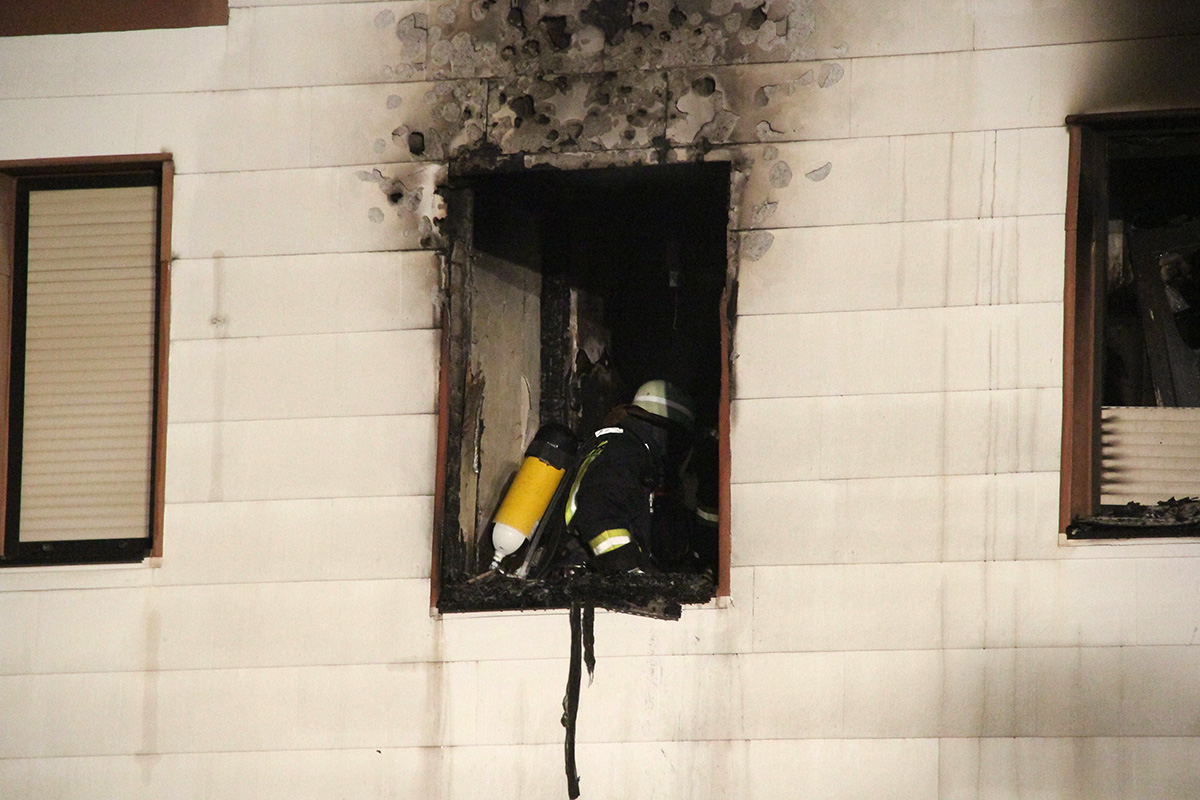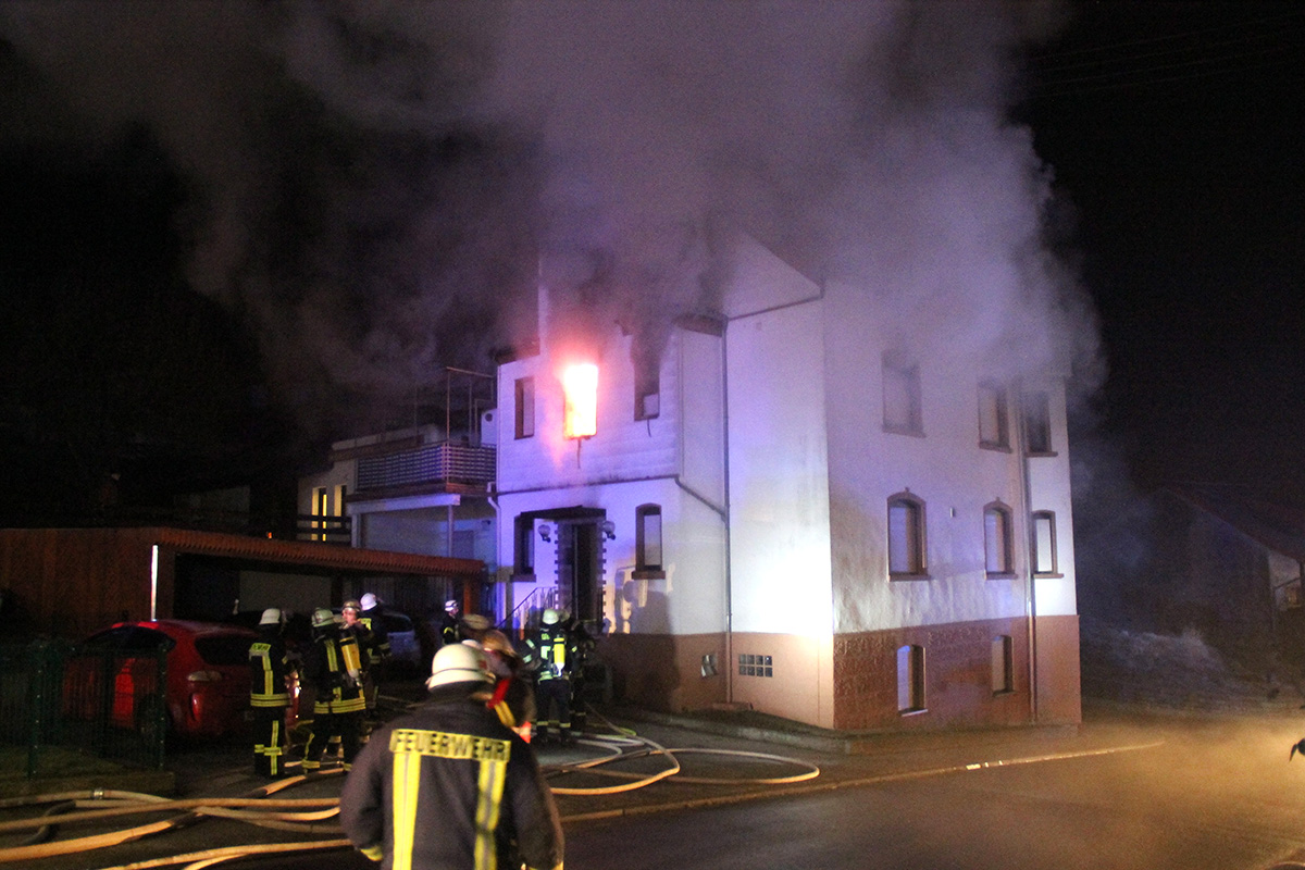 Gegen 3:00 Uhr in der Nacht war der Brand in dem Mehrfamilienhaus in der Eppelborner Prümburgstraße ausgebrochen. Aufgeschreckt durch einen lauten Knall wurde eine Bewohnerin auf das Feuer aufmerksam und weckte die übrigen Hausbewohner. Eigene Löschversuche blieben erfolglos.