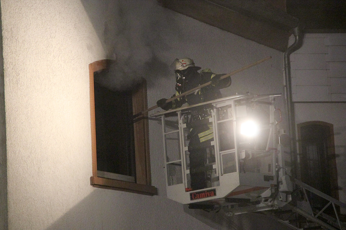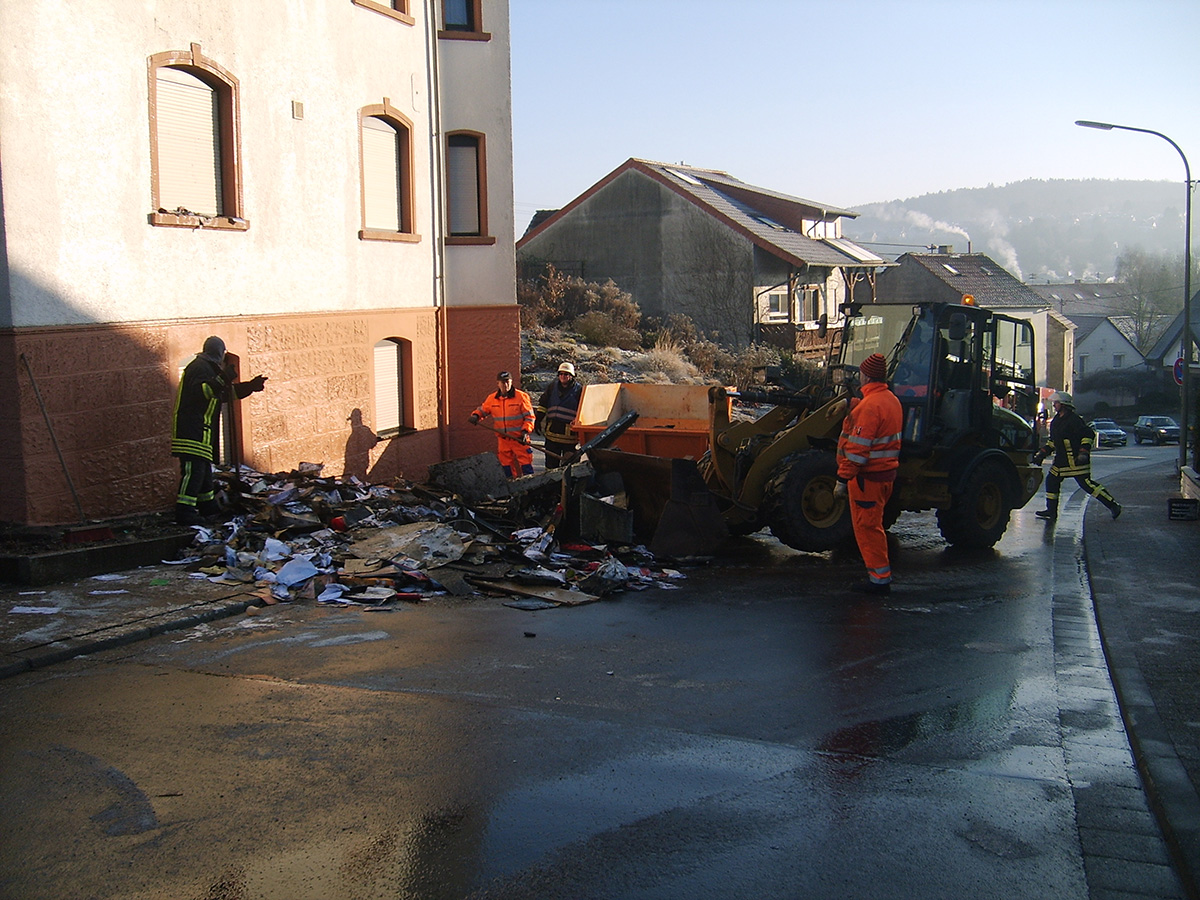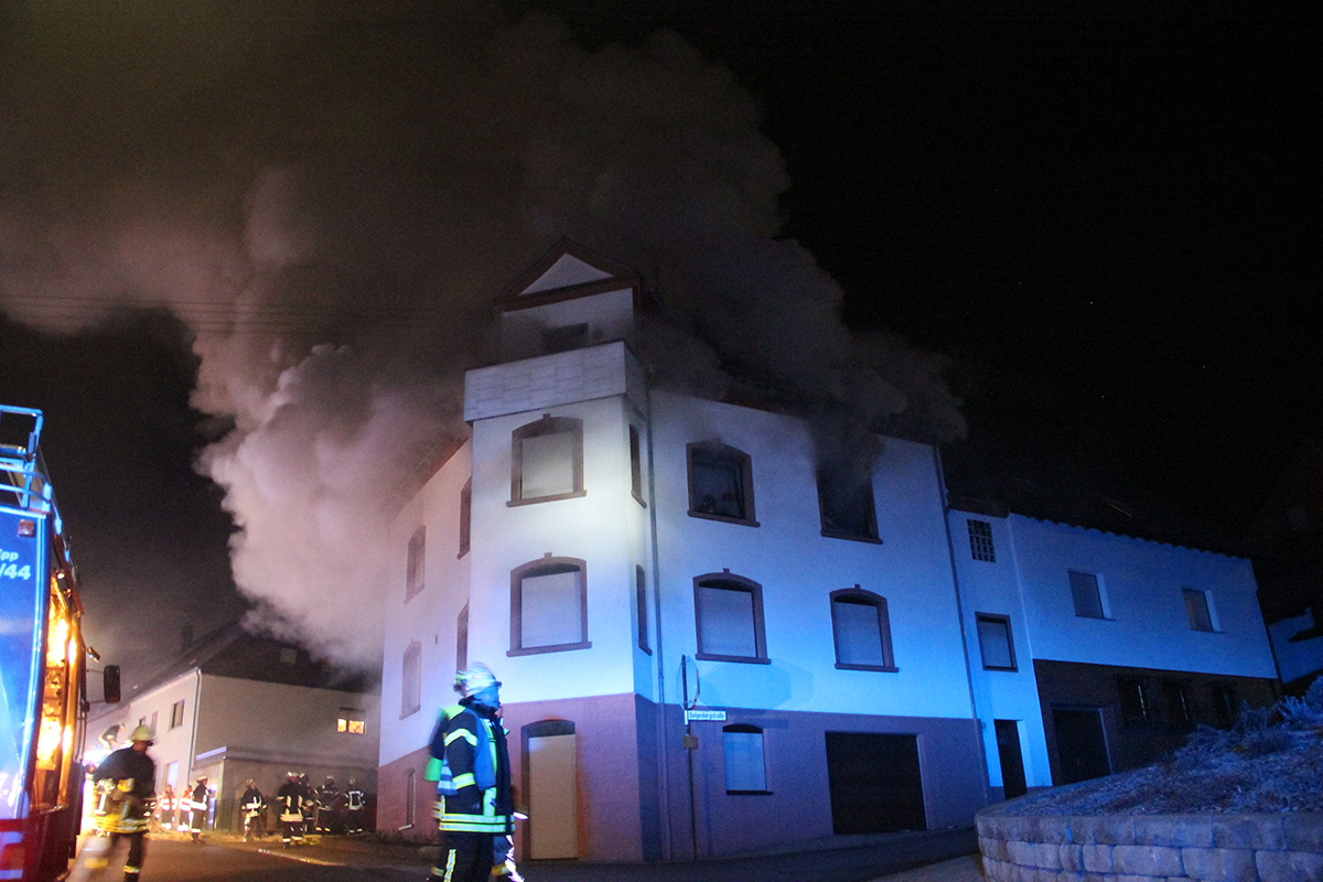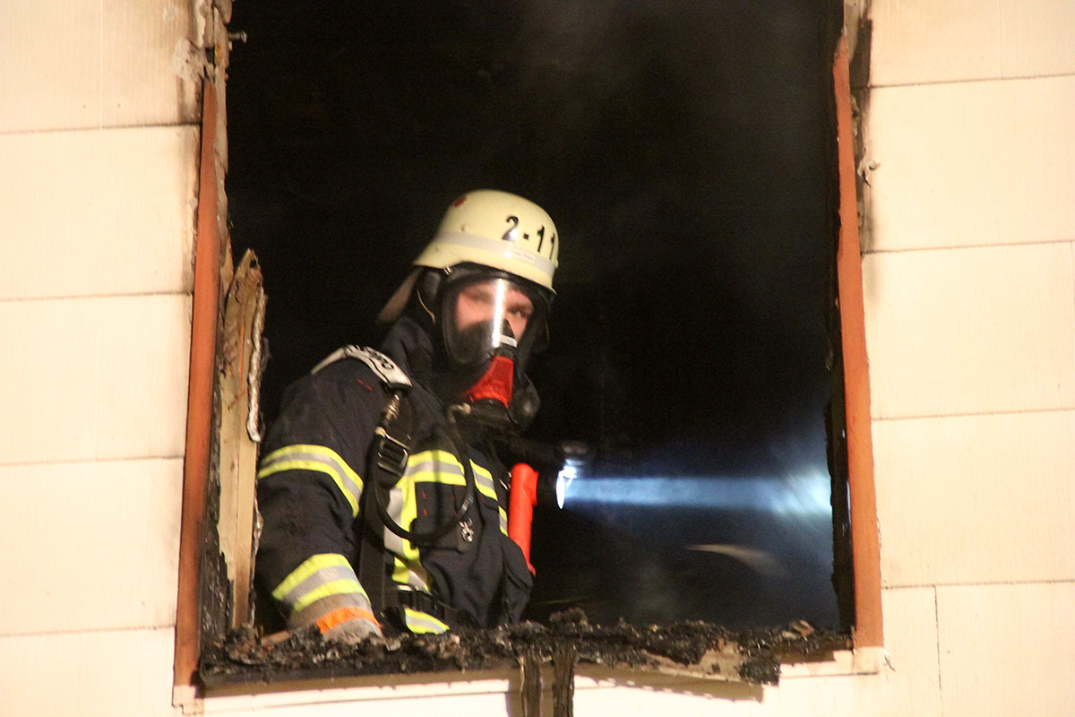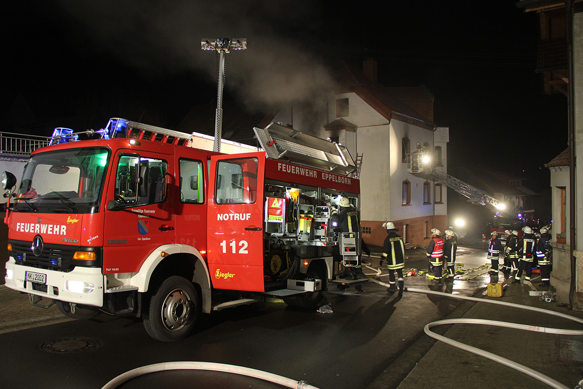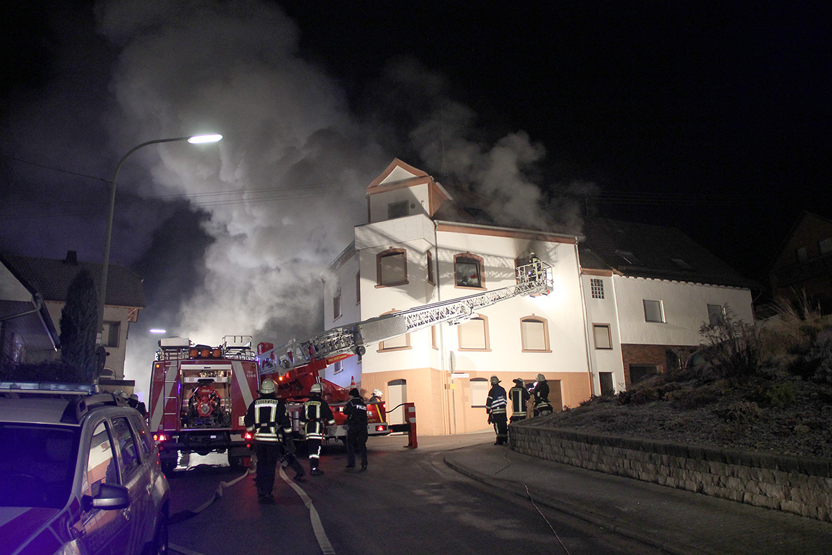 Gegen 3:00 Uhr in der Nacht war der Brand in dem Mehrfamilienhaus in der Eppelborner Prümburgstraße ausgebrochen. Aufgeschreckt durch einen lauten Knall wurde eine Bewohnerin auf das Feuer aufmerksam und weckte die übrigen Hausbewohner. Eigene Löschversuche blieben erfolglos.