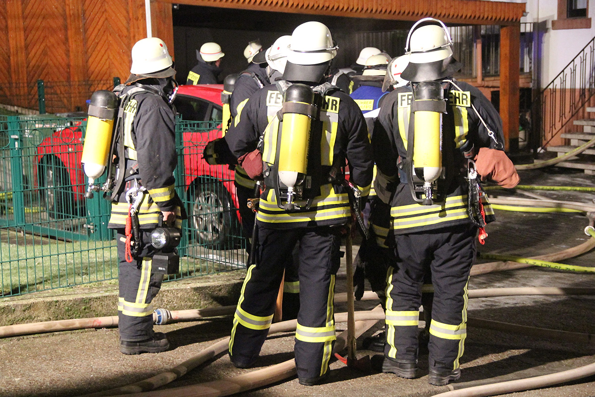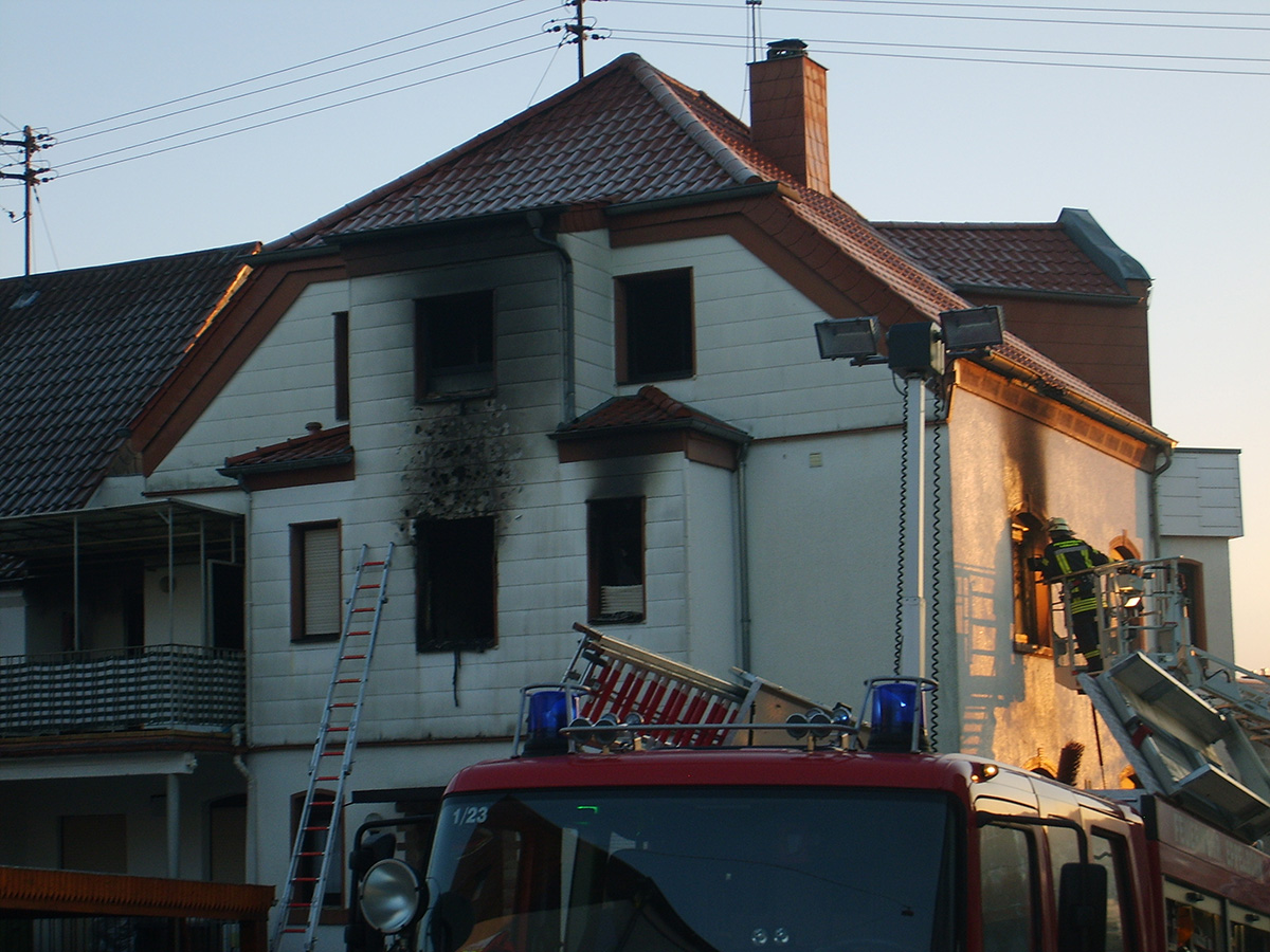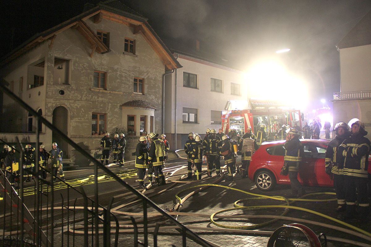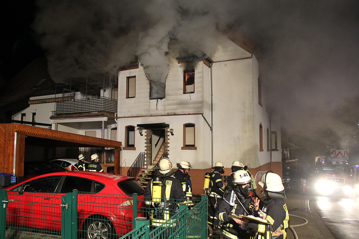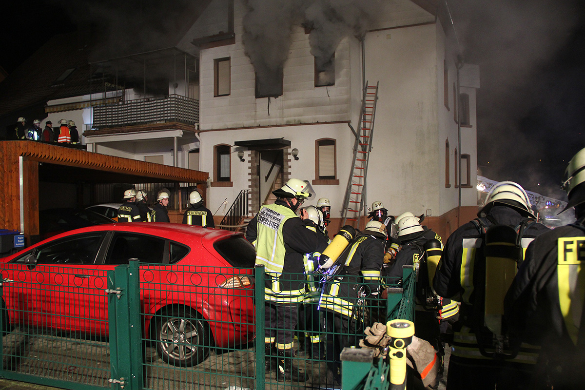 Beim Eintreffen der ersten Einsatzkräfte schlugen Flammen aus einem Fenster im ersten Obergeschoss. Alle Bewohner hatten das Gebäude zu diesem Zeitpunkt verlassen und waren in Sicherheit. Unter Atemschutz drangen Trupps in das Gebäude bis zum Brandherd vor. Das Feuer war augenscheinlich im Bereich der Elektroverteilung ausgebrochen und hatte schnell auf weitere Gebäudeteile und Räume übergegriffen.