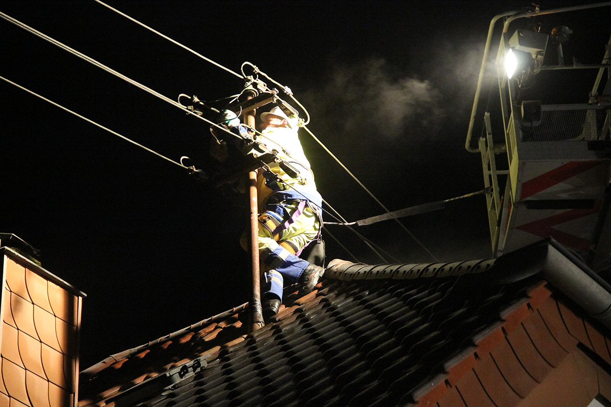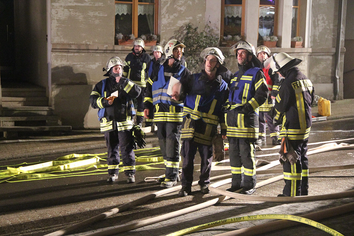 Mit zwei C-Rohren gelang es der Feuerwehr nach rund einer halben Stunde, den Brand zu löschen. Da durch das Feuer die Elektroverteilung und Hausanschluss zerstört wurden, musste das über einen Dachständer versorgte Gebäude von einem Mitarbeiter des Energieversorger vom Stromnetz getrennt werden. Bürgermeisterin Birgit Müller-Closset informierte sich noch in der Nacht persönlich vor Ort.