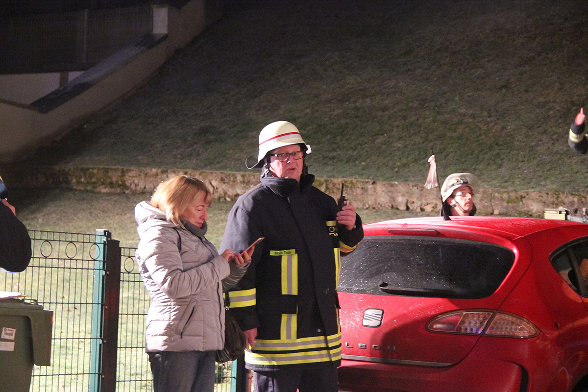 Probleme bereiteten die eisigen Temperaturen unter dem Gefrierpunkt: Löschwasser gefror sofort und verwandelte Fußwege und Straße in eine rutschige Fläche. Der Gemeindebauhof rückte mit Streusalz und einem Streufahrzeug an, um die Gefahr zu beseitigen.