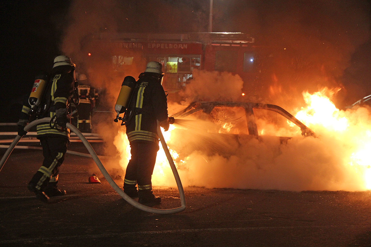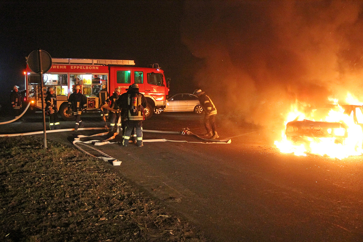 Ein Fahrzeugbrand auf dem Mitfahrerparkplatz an der L112 zwischen Dirmingen und Eppelborn war der letzte Einsatz, zu dem die Feuerwehr Eppelborn im Jahr 2016 ausrücken musste. Gegen 23:12 Uhr wurden die Löschbezirke Eppelborn und Dirmingen von der Rettungsleitstelle alarmiert, nachdem Anrufer den Brand gemeldet hatten.