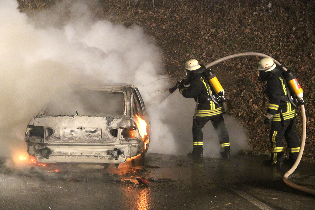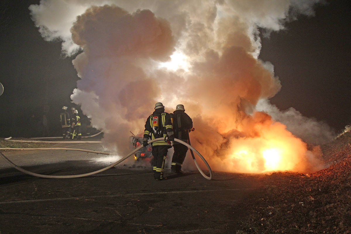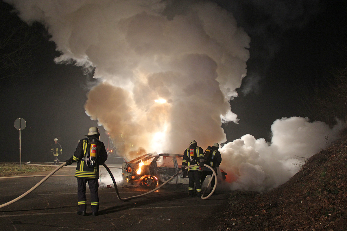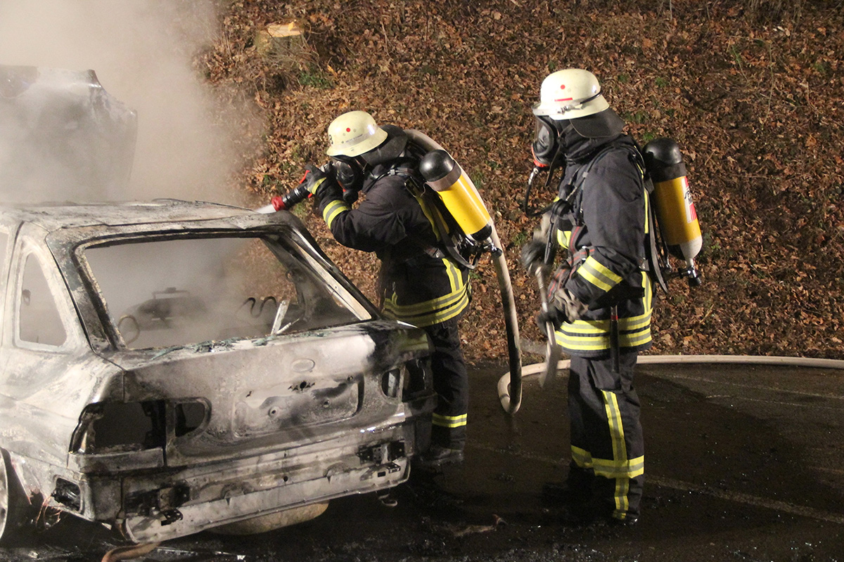 Beim Eintreffen der Einsatzkräfte stand das Fahrzeug bereits in Vollbrand. Unter Atemschutzeinsatz konnte das Feuer mit einem Rohr schnell gelöscht werden. Trotzdem konnte nicht verhindert werden, dass an dem Fahrzeug durch den Brand Totalschaden entstand.