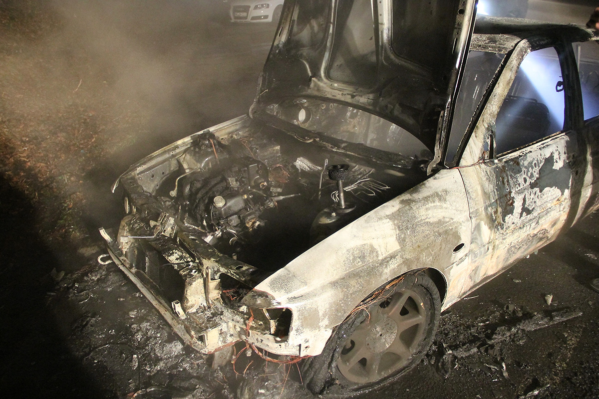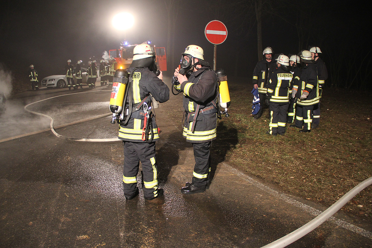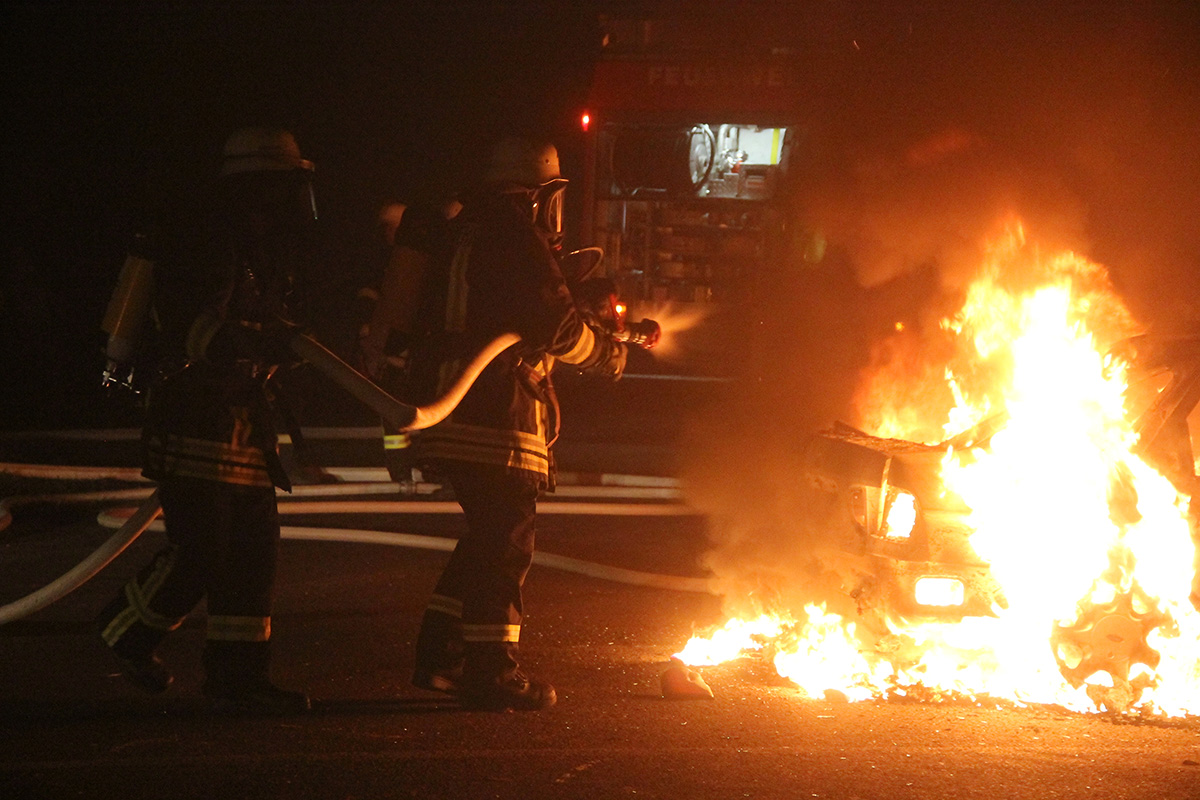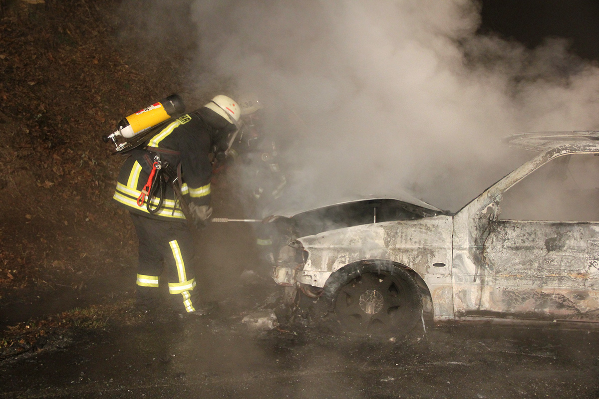 Beim Eintreffen der Einsatzkräfte stand das Fahrzeug bereits in Vollbrand. Unter Atemschutzeinsatz konnte das Feuer mit einem Rohr schnell gelöscht werden. Trotzdem konnte nicht verhindert werden, dass an dem Fahrzeug durch den Brand Totalschaden entstand.