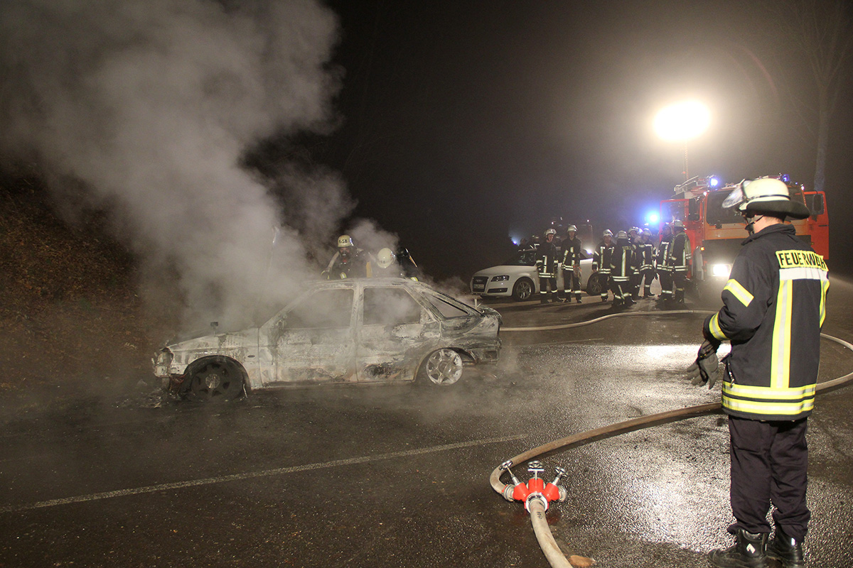 Warum das Fahrzeug, das nach Zeugenaussagen seit mehreren Tagen ohne Kennzeichen auf dem Mitfahrerparkplatz stand, in Flammen aufging, ist ungeklärt. Die Einsatzstelle wurde an die Polizei übergeben.