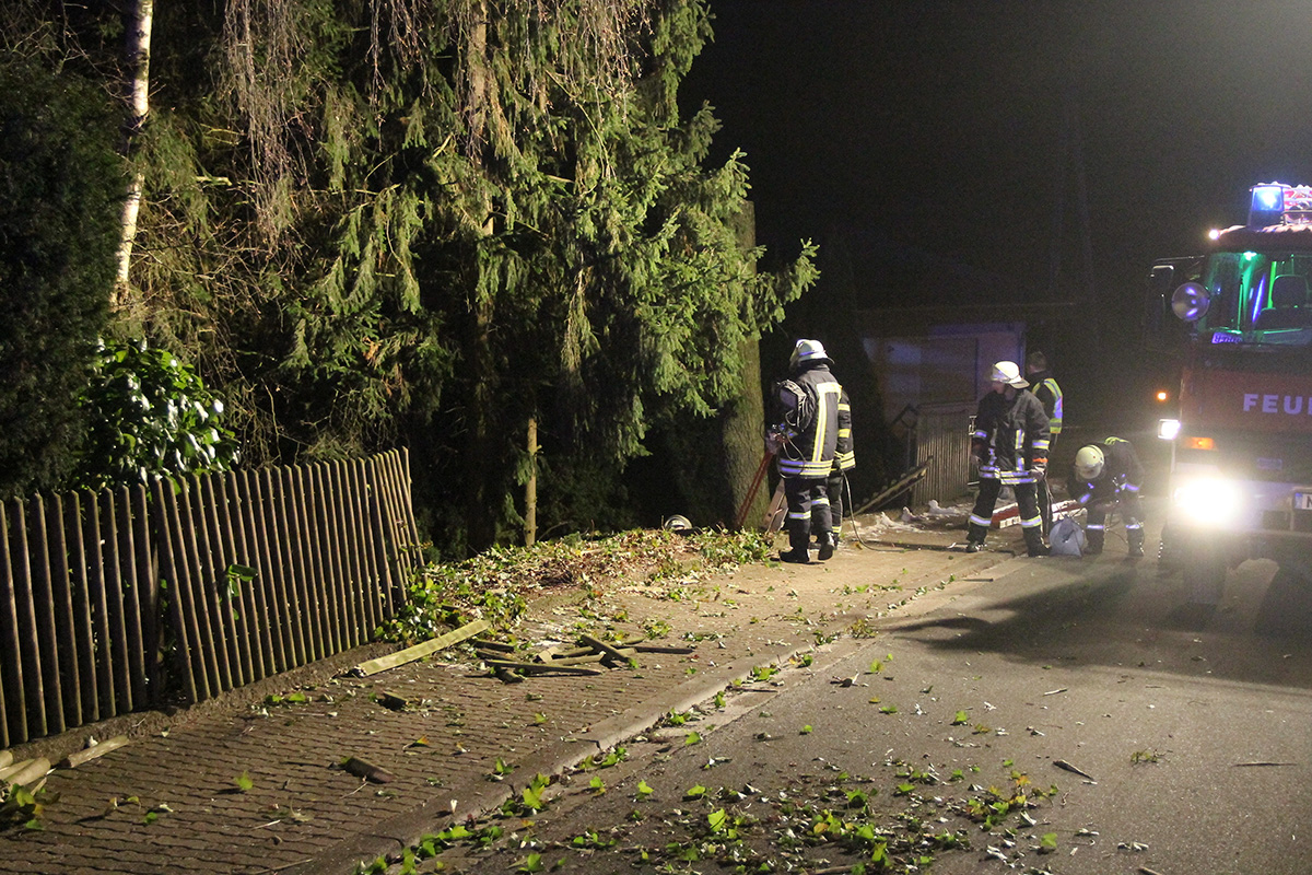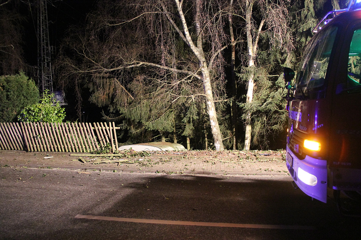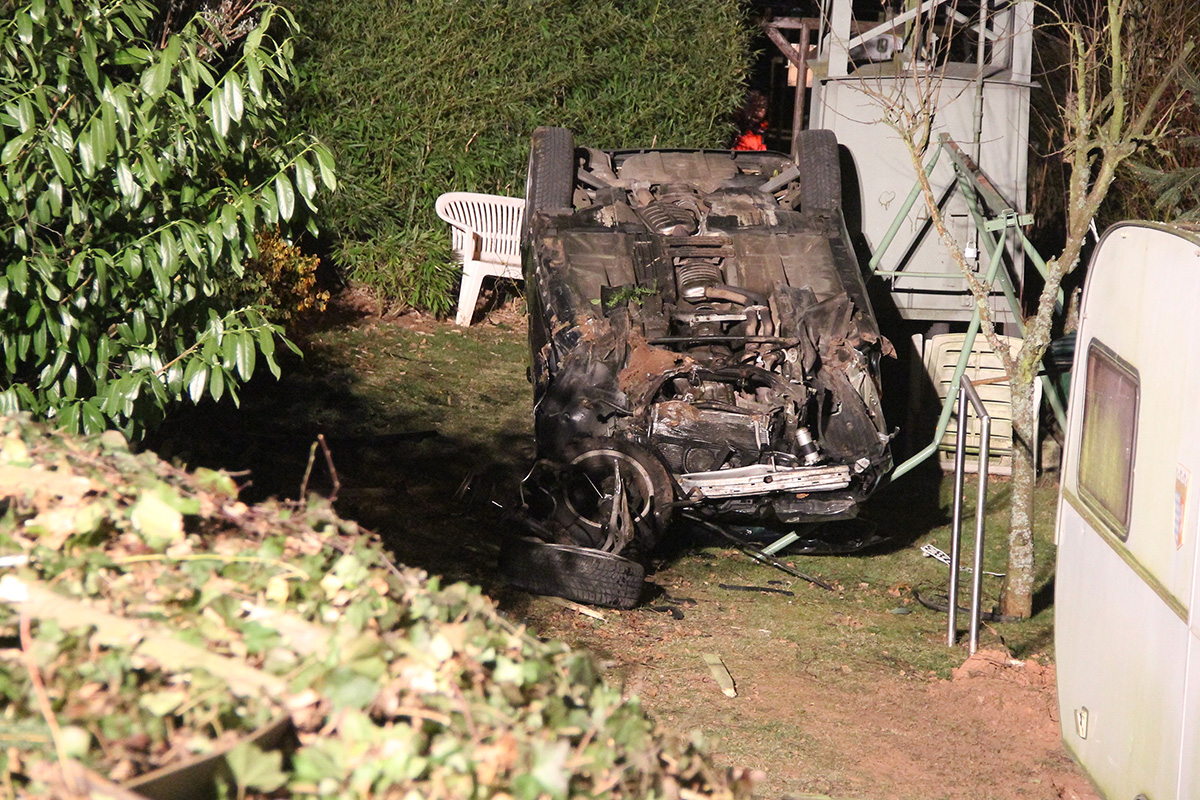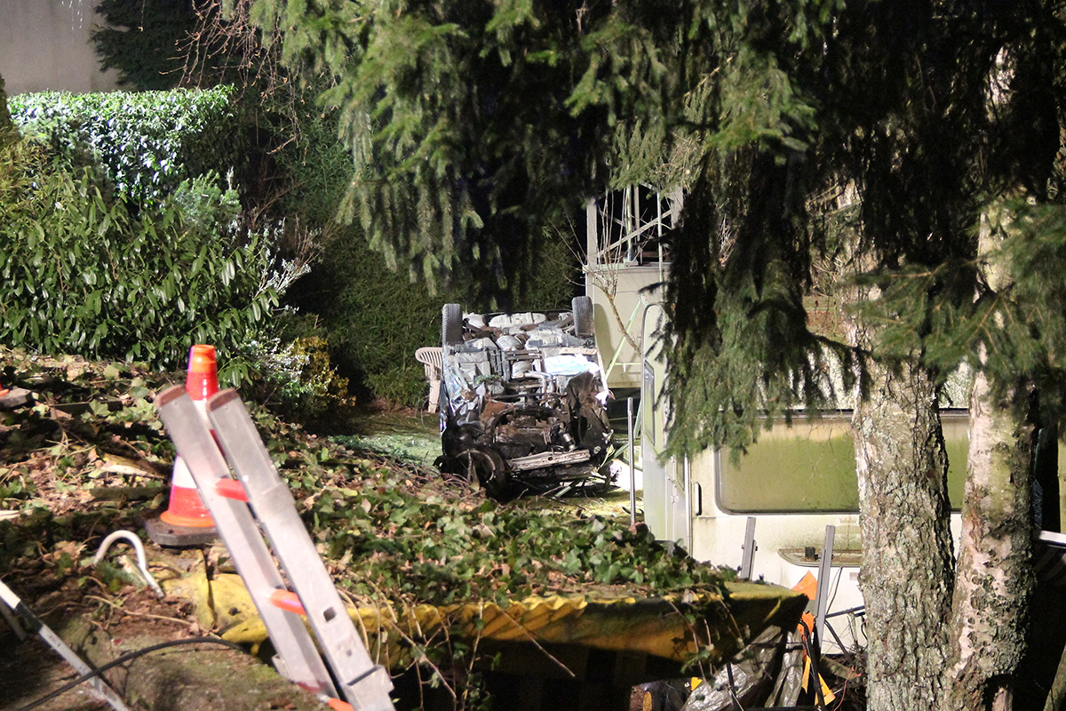 Ein schwerer aber kurioser Verkehrsunfall ereignete sich am Morgen des 26. Januar 2017 in der Ortsstraße in Hierscheid: Ein Pkw war dort um kurz nach 5:00 Uhr in einer Linkskurve nach rechts von der Fahrbahn abgekommen, durchbrach einen Zaun, kollidierte mit einem Baum und blieb dann nach einem Überschlag kopfüber 3 Meter tiefer neben einem Strommasten liegen.
