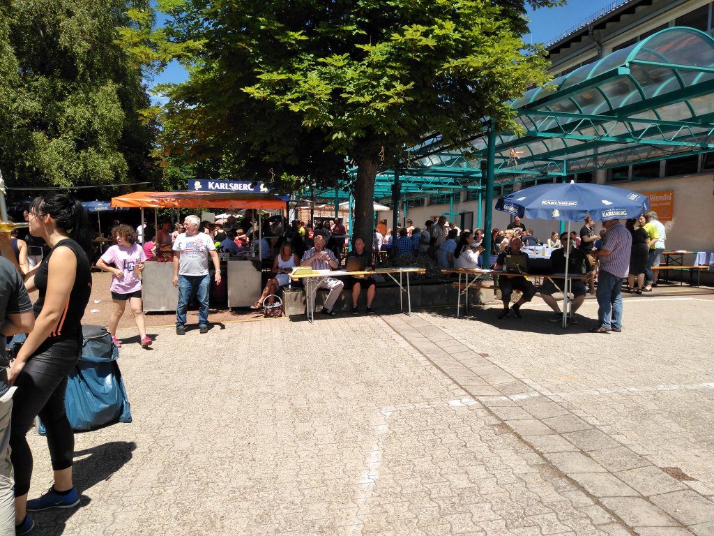 Schon früh am Morgen heizten Guido Kuhn und seine Tochter Stefanie, beide Feuerwehrangehörige in Dirmingen, die Feldküche an, um zum Mittagessen eine leckere Erbsensuppe anbieten zu können. Guido Kuhn kocht am Nachbarschaftsfest schon viele Jahre die Suppe und hilft auch sonst im Küchenbereich. Neben seiner Tätigkeit in der Feuerwehr ist er auch Mitglied der Kolpingsfamilie. Am Nachbarschaftsfest zu helfen ist für Guido und Stefanie selbstverständlich. Ein weiteres Team der Feuerwehr bildeten Christa Köhl und Hans-Werner Guthörl, die bei Arbeiten am und um den Bierstand geholfen haben. Gegen 11 Uhr war der Beginn des Festes und viele Bürger und Besucher aus nah und fern waren gekommen, um die Darbietungen der Kinder und der KKV-Mädels zu sehen. Musikalisch war der Musikzug aus Humes lange präsent und aktiv. Das Wetter spielte auch mit und so war es für Jung und Alt eine tolle Veranstaltung.