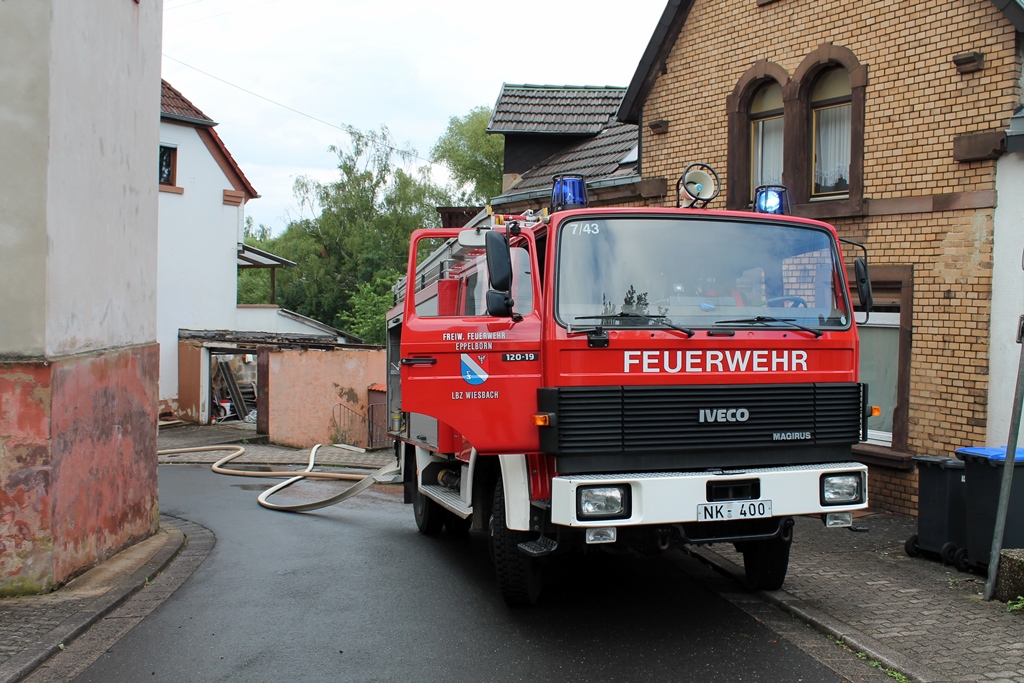 Am frühen Abend des 11.07.2017 meldeten sich Passanten im Feuerwehrgerätehaus Wiesbach, in dem sich zu dieser Zeit Einsatzkräfte des Löschbezirks aufhielten und teilten mit, dass es in der Valeriusstraße unter enormer Rauchentwicklung brennen würde.