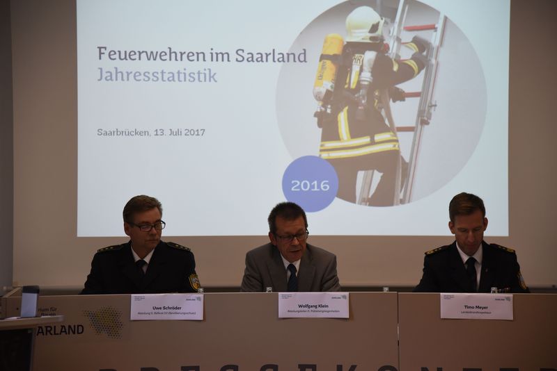 Gegen den Bundestrend, der stetig zurückgehende Mitgliederzahlen aufweist, bleibt die Zahl der aktiven Angehörigen der kommunalen Feuerwehren im Saarland stabil. Regen Zulauf gibt es bei den Jugendfeuerwehren, die erneut ihre Mitgliederzahlen steigern konnten. "Dieser erfreuliche Trend zeigt, dass der ehrenamtliche Dienst in der Feuerwehr nach wie vor attraktiv ist und die Feuerwehr hohe Wertschätzung genießt", betonte Landesbrandinspekteur Timo Meyer, der gemeinsam mit Branddirektor Uwe Schröder und dem Abteilungsleiter D (Polizeiangelegenheiten), Wolfgang Klein, die Statistik der Feuerwehren im Saarland am 13. Juli 2017 vorstellte.