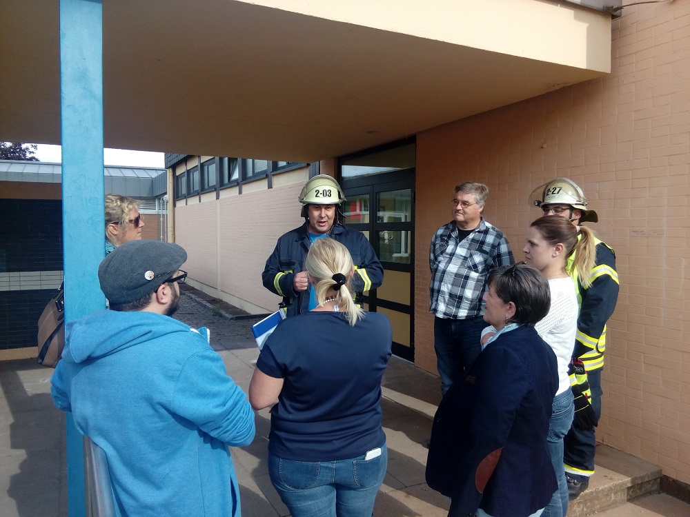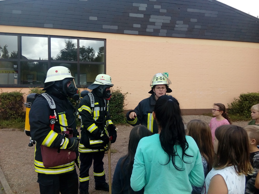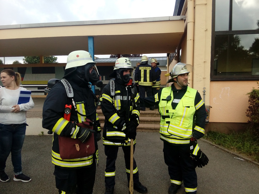 Am 07.09.2017 fand an der Grundschule in Bubach – Calmesweiler, in Zusammenarbeit mit dem Löschbezirk Bubach – Calmesweiler, eine der jährlich durchzuführenden Räumungsübungen statt. Angenommen wurde eine Rauchentwicklung durch einen Brand im Inneren des Gebäudes. Nach dem Bemerken des „Unglücksfalles“ wurde umgehend Alarm über die Hausanlage ausgelöst und die Schülerinnen und Schüler der drei Schulklassen mit ihren Lehrern verließen das Schulgebäude und versammelten sich am Sammelplatz. Wie schon bei den vorherigen Übungen, verlief die Räumung der Schule sehr diszipliniert und geordnet. So konnte der Leiter der Schule, Johannes Meiser – Knapp, dem Einsatzleiter, Löschbezirksführer Andreas Groß, die Vollzählige Räumung der Schule melden. Ein Angriffstrupp unter schwerem Atemschutz bekämpfte den angenommenen „Brand“ dann schnell. Der Übungsleiter Stephan Morbe vom Löschbezirk Bubach – Calmesweiler war mit dem reibungslosen Ablauf der Übung sehr zufrieden. In der anschließenden Aussprache und der Begehung des Gebäudes mit Feuerwehr und Lehrkräften wurde auf verschiedene Punkte eingegangen, welche in einem möglichen Unglücksfall zu beachten sind. In der Zwischenzeit galt das Interesse der Schülerinnen –und Schüler den Fahrzeugen und der Ausrüstung der Feuerwehr. Besonders die Atemschutzgeräteträger wurden fokussiert. Viele, von den Kindern gestellte Fragen, wurden durch die 15 Feuerwehrkameradinnen -und Kameraden des Löschbezirkes Bubach – Calmesweiler beantwortet und viele Kinder wollten auch mal ein Strahlrohr halten und im Feuerwehrauto Platz nehmen. So ging ein Interessanter und lehrreicher Vormittag für Schüler, Lehrer und Feuerwehr zu Ende.