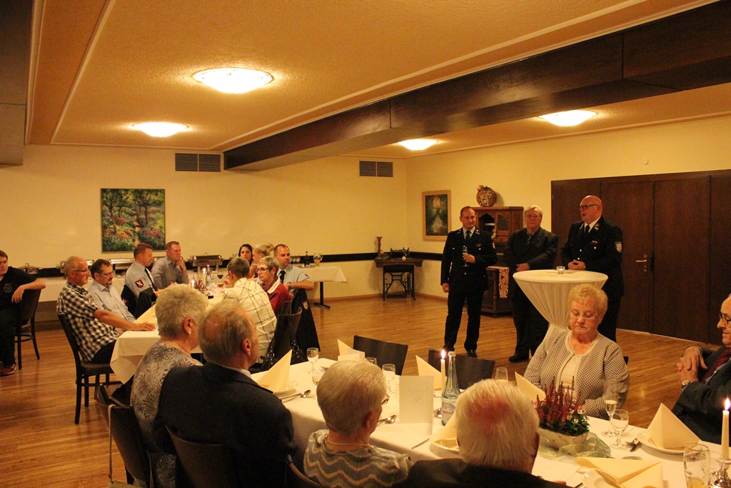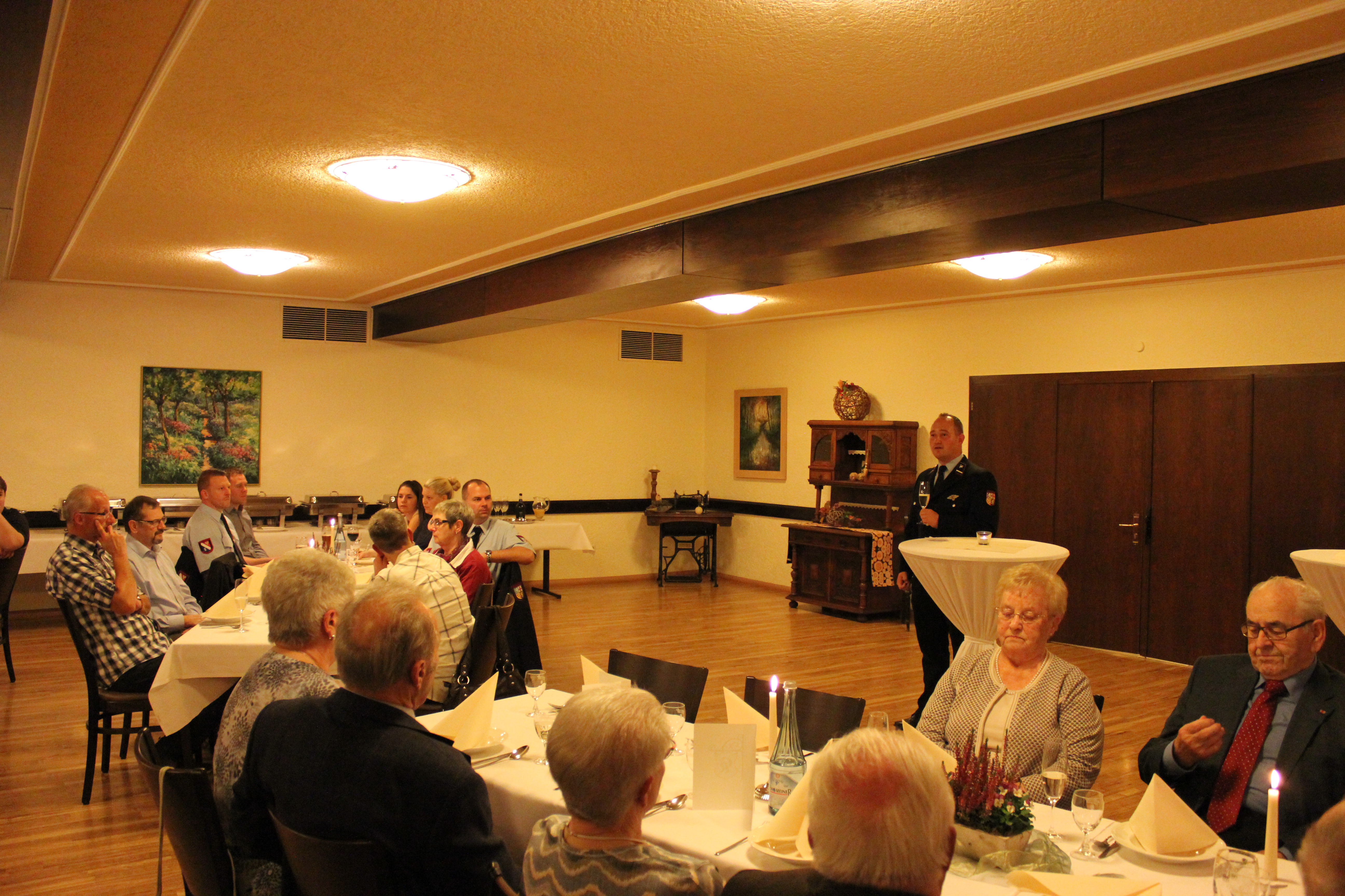Am Abend des 21. Oktober lud der Habacher Löschbezirksführer zum jährlichen Familienabend ins Gasthaus Rech ein. Rund fünfzig Teilnehmer hatten sich für den Abend angemeldet. Darunter die Einsatzabteilung mit ihren Familien, die Altersabteilung, die Jugendfeuerwehr, Vertreter des Fördervereins des Löschbezirks Habach sowie einige Ehrengäste. In seiner Begrüßungsrede konnte Löschbezirksführer René Finkler unter anderem den ersten Beigeordneten der Gemeinde Eppelborn Berthold Schmitt begrüßen, der die in Urlaub befindliche Bürgermeisterin vertrat. Des Weiteren waren auch Wehrführer Klaus Theis, der Kreisbrandinspekteur des Landkreises Neunkirchen Werner Thom sowie Ortsvorsteher Peter Dörr der Einladung gefolgt. Finkler dankte allen Anwesenden für die unzähligen geleisteten Stunden zum Wohle der Bevölkerung, egal ob in Einsätzen oder Übungen. Ohne das hohe Engagement jedes Einzelnen der Anwesenden sei eine für den kleinen Ortsteil Habach starke Feuerwehr nicht möglich. Der erste Beigeordnete Schmitt überbrachte die Grüße der Bürgermeisterin und dankte vor allem den Partnerinnen und Familien, welche oftmals egal ob unter der Woche oder am Wochenende, am Tag oder in der Nacht auf die aktiven Einsatzkräfte verzichten müssen. Auch Wehrführer Klaus Theis sprach Dank und Anerkennung für das Engagement im Ehrenamt aus und konnte noch zwei freudige Nachrichtenüberbringen. In der kommenden Woche werden dem Löschbezirk Habach, für den in den vergangenen Jahren in überwiegender Eigenleistung renovierten Schulungsraum, 25 neue Stühle bereitgestellt. Nach Fertigstellung der Renovierung gegen Ende 2015 wurde bereits bei der Gemeindeveraltung ein Antrag auf eine neue, zeitgemäße Bestuhlung gestellt. Aufgrund leerer Kassen konnte damals nur mit einer gebrauchten, stark abgenutzten Bestuhlung aus der Wiesbachhalle ausgeholfen werden. Allerdings war diese Bestuhlung bereits so mitgenommen, dass binnen zwei Jahren schon nicht einmal mehr die Hälfte der Stühle genutzt werden konnte. Außerdem wurde die Ersatzbeschaffung einer Motorsäge aus dem Jahr 1981 mitgeteilt. Die Motorkettensäge ist ein wichtiger Bestandteil der Beladung eines Feuerwehrfahrzeuges und wird überwiegend nach Sturmschäden im Einsatz benötigt. Auch der Kreisbrandinspekteur Werner Thom richtete ein Grußwort an die Anwesenden. Er ergänzte zur Begrüßungsrede von Löschbezirksführer Finkler, dass es nicht allein die Übungs- und Einsatzstunden sind, welche anfallen, sondern vielmehr auch die unzähligen Stunden für Übungsvorbereitungen, Gerätewartungen, Brandschutzunterweisungen und vielem mehr. Zuletzt richtete noch Ortsvorsteher Peter Dörr ein paar Worte an die Teilnehmer. Auch er schloss sich dem Dank der Vorredner an und überbrachte ein großes Lob und ein herzliches Dankeschön im Namen des Habacher Ortsrates sowie der Habacher Bevölkerung. Dörr hob in seiner Rede auch den kulturellen Wert einer Feuerwehr hervor und betonte, dass der Löschbezirk Habach ein sehr wichtiger Bestandteil am lebendigen Vereinsgeschehen ist. Zum Beispiel wurde hier das Waldfest, das Maibaum stellen sowie das traditionelle Martinsfeuer aufgeführt. Auch dankte er dem Förderverein des Löschbezirks für tolle Unterstützung, egal ob in finanzieller Sicht oder in Form von Man-Power bei Veranstaltungen. Als kleine Anerkennung überreichte der Ortsvorsteher ein Kuvert mit einer Geldspende für die Förderung der Jugendfeuerwehr im Ortsteil Habach. Nach den Grußworten konnten noch folgende Ehrungen und Beförderungen ausgesprochen werden: vom Feuerwehrmann zum Oberfeuerwehrmann wurde befördert: [list] [*]Michael Klein [/list] vom Oberfeuerwehrmann zum Löschmeister wurden befördert:[list] [*]Toni Zapp [*]Simon Ziegler [/list] vom Löschmeister zum Oberlöschmeister wurde befördert: [list] [*]Lars Meiser [/list] vom Oberlöschmeister zum Brandmeister wurden befördert:[list] [*]René Finkler [*]Johannes Wagner [/list] Außerdem wurde Michael Klein für insgesamt 20 Jahre aktiven Dienst durch die Gemeinde geehrt. Da Simon Ziegler und Michael Klein an diesem Abend leider verhindert waren, werden die entsprechenden Urkunden in der Jahreshauptversammlung zum Jahresbeginn 2018 überreicht. Im Anschluss an den offiziellen Teil konnten sich die Teilnehmer von kulinarischen Köstlichkeiten aus dem Hause Rech verwöhnen lassen und den Abend bis in die Nacht in geselliger Runde ausklingen lassen. Ein besonderer Dank gilt auch in diesem Jahr wieder dem Gasthaus Rech, welcher den Abend immer wieder zu einem besonderen Abend macht. Dankeschön!