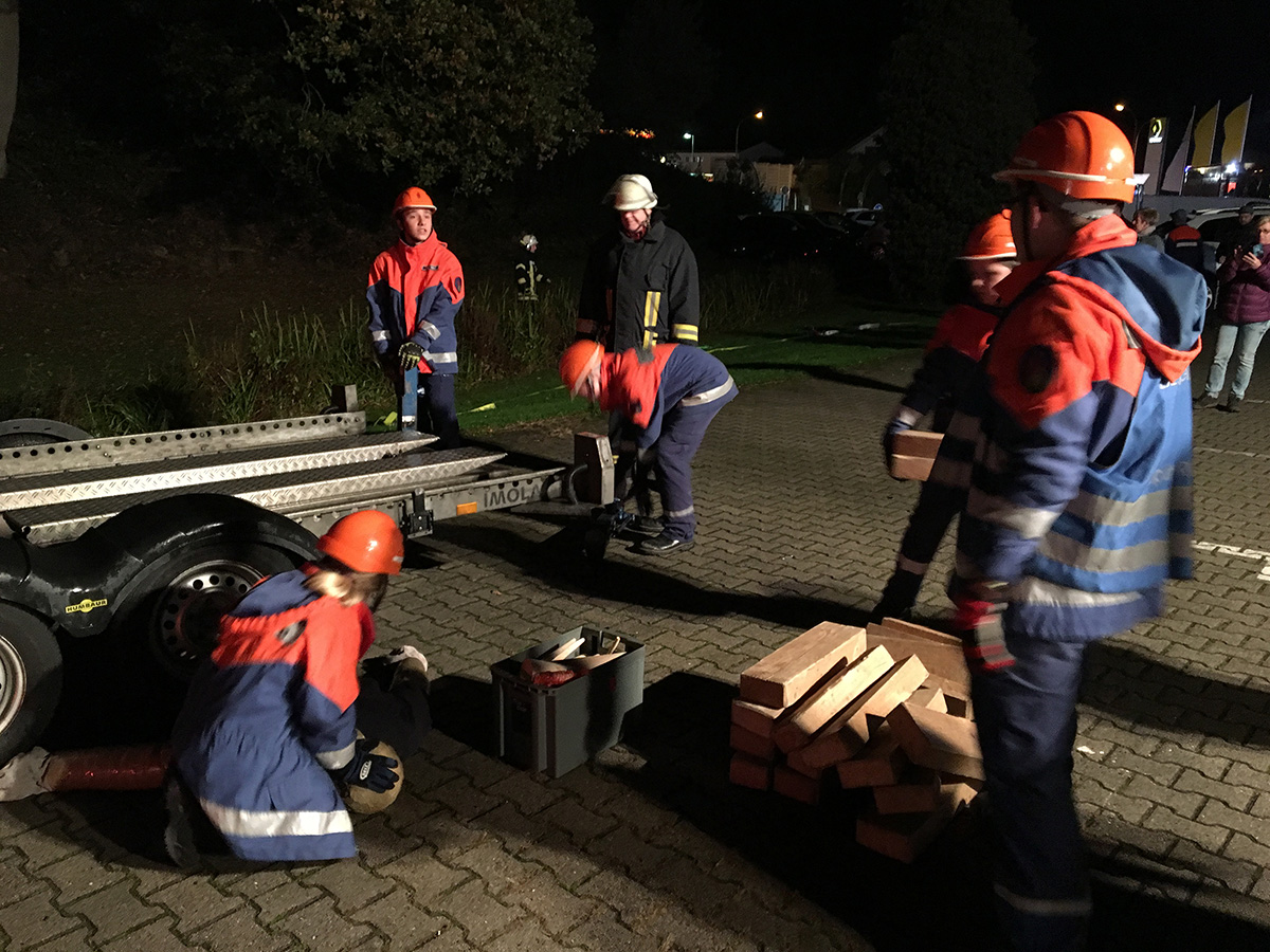 Damit es für die rund 40 Mädchen und Jungen der verschiedenen Jugendwehren genug zu tun gab, hatten die Übungsplaner verschiedene Situationen dargestellt. Die Jugendlichen mussten neben der Brandbekämpfung eines angenommenen Werkstattbrandes die Löschwasserversorgung aufbauen, eine eingeklemmte Person unter einem Anhänger befreien und unter Schock stehende, herum irrende Anwohner finden. Ferner musste bei der Dunkelheit umfangreiche Ausleuchtungsmaßnahmen getroffen werden.