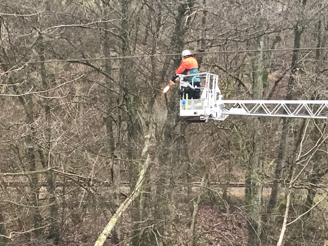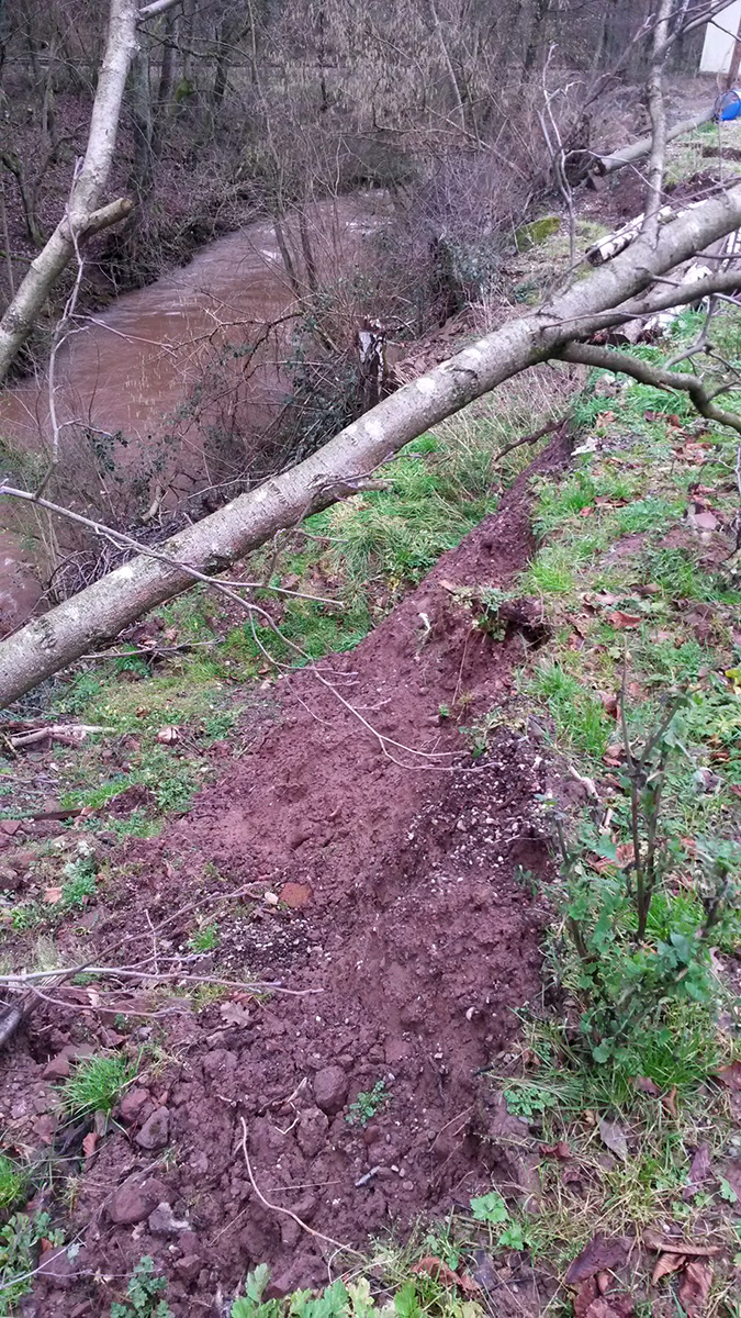 Als Folge der starken Regenfälle der vergangenen Tage rutsche am 07. Januar 2018 ein Teil des aufgeweichten Bodens am Illufer in der Illinger Straße ab und riss einen dort stehenden Baum mit. Der Baum fiel dabei auf eine Stromleitung und blieb mit der Krone hängen. Die alarmierte Feuerwehr aus dem Löschbezirk Dirmingen sicherte die Einsatzstelle ab und stimmte die zu ergreifenden Maßnahmen mit dem ebenfalls informierten Energieversorger ab. Aufgrund der Hanglage und der Gefahr von weiteren Erdrutschen musste die Drehleiter aus Illingen nachgefordert werden. Mit einer Kettensäge konnte dann vom Korb der Drehleiter aus die Baumkrone abgesägt und der Stamm entfernt werden. Weitere Maßnahmen waren von Seiten der Feuerwehr nicht notwendig. Der Einsatz war nach rund einer Stunde beendet.