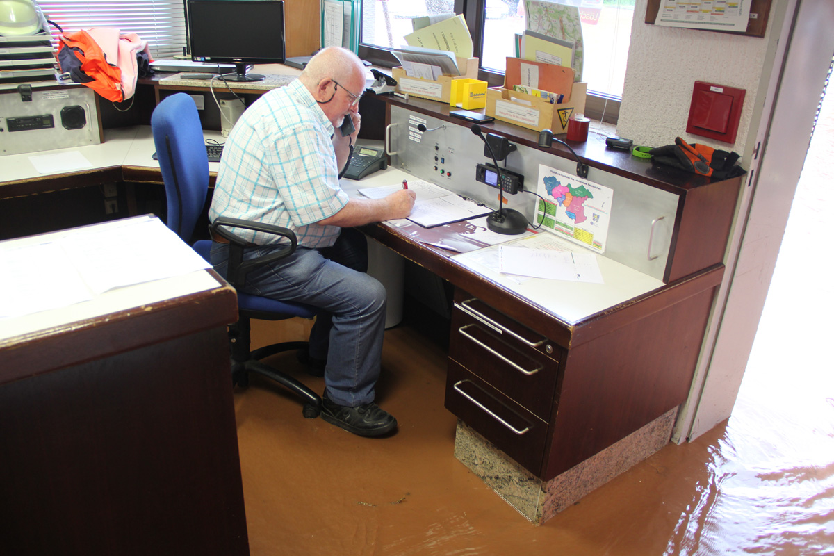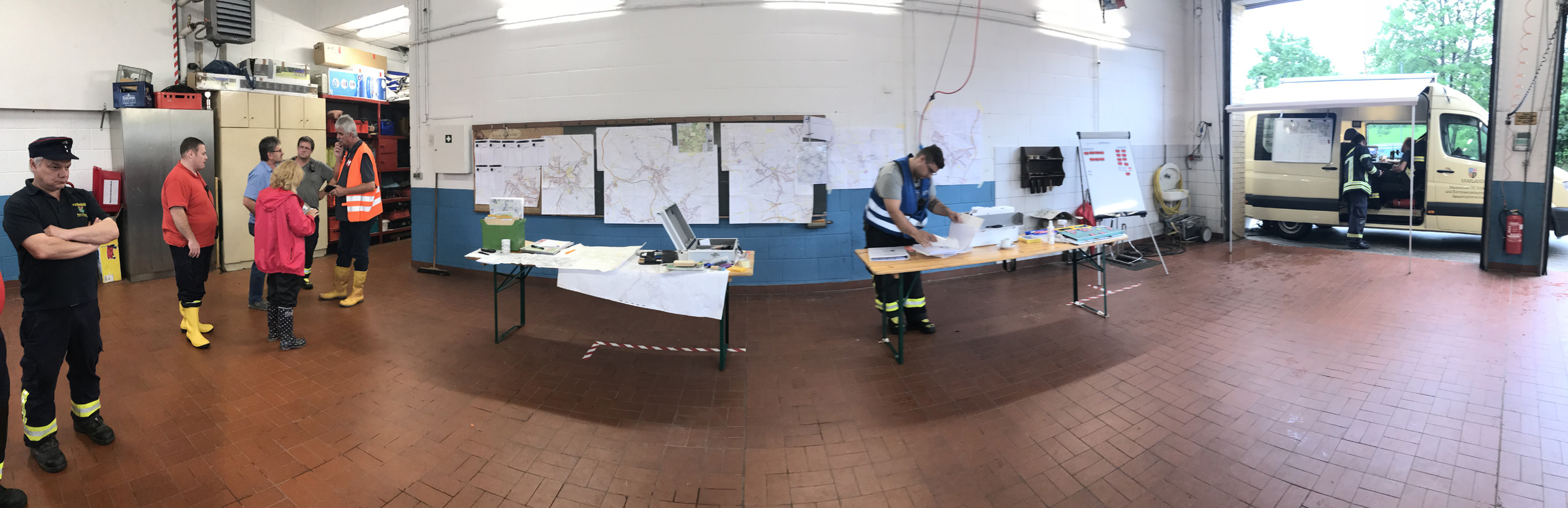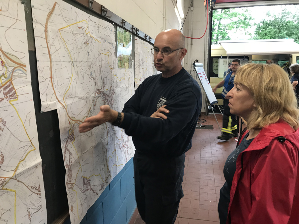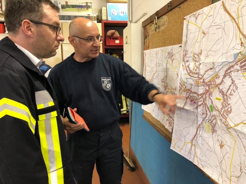 Ein heftiges Unwetter mit sintflutartigen Regenfällen zog am Nachmittag des 11. Juni 2018 über die Gemeinde Eppelborn hinweg. Innerhalb weniger Minuten liefen Keller voll, ganze Straßenzüge verwandelten sich in reißende Bäche. Im Sekundentakt liefen über den Notruf 112 die Meldungen über Schäden und Hilfegesuche auf der Leitstelle ein. Schnell wurde das ganze Ausmaß klar und Vollalarm für alle Löschbezirke der Gemeinde Eppelborn ausgelöst. In allen Ortsteilen bot sich das gleiche Bild: Straßen waren durch Geröll und Wasser nicht mehr passierbar, Gärten und Wiesen hatten sich in Seen verwandelt und ein Keller nach dem anderen lief voll. Wie schnell sich das Wasser seinen Weg suchte, mussten die Feuerwehrleute im Gerätehaus in Eppelborn am eigenen Leib erleben: Noch während die Einsatzkräfte zu den ersten Einsätzen ausrückten, schossen die braunen Fluten auch ins Feuerwehrgerätehaus in der Schleidstraße. Kniehoch stand das Wasser in der Fahrzeughalle, in den Umkleiden, den Sanitär- und Lagerräumen und dem Jugendfeuerwehrraum. Die Funkzentrale, von der aus die ganzen Einsätze koordiniert wurden, musste aufgegeben und die Einsatzleitung nach Bubach-Calmesweiler verlegt werden. [left][cmsimg]9123[/cmsimg][/left] Parallel zu den Arbeiten "vor Ort" musste nun auch das eigene Equipment gerettet werden. Dabei erlebten die Feuerwehrleute eine unglaubliche Solidarität und Hilfsbereitschaft. Zahlreiche Frauen und Freundinnen aktiver Kameraden und Helfer aus der Nachbarschaft kamen spontan zum Gerätehaus, um Schmutz und Wasser zu beseitigen. Auch aus den anderen Löschbezirken und ganz besonders aus dem Löschbezirk Macherbach kamen Angehörige von Feuerwehrkameraden zur Hilfe. Nachbarn der Feuerwehr stellten spontan Pavillions und Schirme bereit und packten tatkräftig beim Füllen von Sandsäcken mit an. Und diese Hilfsbereitschaft und Solidarität zeigte sich überall im Gemeindegebiet. Die Kameraden wurden mit Getränken und Essen versorgt, und überall halfen Mitbürgerinnen und Mitbürger, die vom Wasser verschont geblieben waren, mit Schaufeln und Besen ihren Nachbarn, die weniger Glück hatten. [right][cmsimg]9153[/cmsimg][/right] Mit Sandsäcken versuchten die Ladenbesitzer im Ortskern von Eppelborn, noch größeren Schaden zu verhindern. Doch nicht überall gelang dies: Der gerade erst umgebaute und renovierte Wasgau-Markt wurde komplett überflutet. Auch hier kam das Wasser so schnell, dass sich die Mitarbeiter nicht mehr in Sicherheit bringen konnten. Mit watfähigen Fahrzeugen mussten sie von der Feuerwehr gerettet und in Sicherheit gebracht werden. Weit mehr als 100 Einsatzstellen mussten durch die Kameraden abgearbeitet werden. Besonders betroffen waren dabei die Ortsteile Eppelborn, Wiesbach und Habach. Aus den umliegenden Kommunen Illingen, Lebach, Merchweiler, Ottweiler, Schiffweiler und sogar aus Püttlingen kamen Einsatzkräfte von Feuerwehr, DLRG, DRK und THW zu Hilfe. Zu Spitzenzeiten waren rund 250 Kräfte gleichzeitig im Einsatz. Bürgermeisterin Birgit Müller-Closset und Landrat Sören Meng verschafften sich persönlich ein Bild der Lage. Landtagsmitglied Alwin Theobald war bis spät in die Nacht im Gerätehaus in Eppelborn und hatte ein offenes Ohr für die Sorgen der Einsatzkräfte, die nach stundenlangem Einsatz am Ende ihrer Kräfte waren. [left][cmsimg]9163[/cmsimg][/left] Aufgerissene Straßen, mitgerissene Wege, verwüstete Grundstücke, Gärten und in Mitleidenschaft genommene Häuser machten einen Tag nach der Katastrophe noch immer das Ortsbild von Eppelborn aus. Ernsthaft verletzt wurde zum Glück niemand. Erst nach Abschluss der Aufräumarbeiten kann der genaue Umfang der Schäden durch das Starkregenereignis beurteilt werden. Nach einer ersten Einschätzung der Verwaltung werden die Schäden die Millionengrenze überschreiten. Die Schadensbeseitigung wird wohl einige Zeit dauern. Viele Menschen haben durch die Ereignisse Hab und Gut und teilweise auch ihre Existenz, Mut und Lebensinhalt verloren. Getränkehandel, Metzgereien, Baufirmen – von allen Seiten wurde die Feuerwehr unterstützt. Auch wenn man immer wieder von der zunehmenden sozialen Kälte spricht: Die Eppelborner haben bei dieser Katastrophe gezeigt, dass die Einwohner zusammenhalten. Ohne diese Hilfe wäre es der Feuerwehr alleine nicht möglich gewesen, die Situation so schnell wieder unter Kontrolle zu bekommen. [right][cmsimg]9130[/cmsimg][/right] Der Einsatz hat die Notwendigkeit eines Einsatzleitwagens wieder einmal gezeigt. Zum Glück konnte wieder einmal auf ein Fahrzeug aus einer Nachbarkommune zurückgegriffen werden. Doch gerade bei solchen Flächenlagen werden diese in der Regel in ihrem Heimatstandort selbst gebraucht. [b]Die Feuerwehr Eppelborn bedankt sich bei all den unermüdlichen Helfern, die am vergangenen Montag Hilfe angeboten und tatkräftig unterstützt haben![/b] [Infobox title="Hilfe für Betroffene"] Im Rathaus wurde ein Sorgentelefon für Geschädigte eingerichtet, das unter der Telefon-Nummer [b]06881/969-123[/b] oder [b]06881-969-119[/b] erreichbar ist. Auf der Internetseite [URL="http://www.eppelborn.de"]www.eppelborn.de[/url] finden Sie ein Formular zur Schadensmeldung aufgrund der Unwetterereignisse, das bei der Gemeindeverwaltung eingereicht werden kann. [/Infobox]
