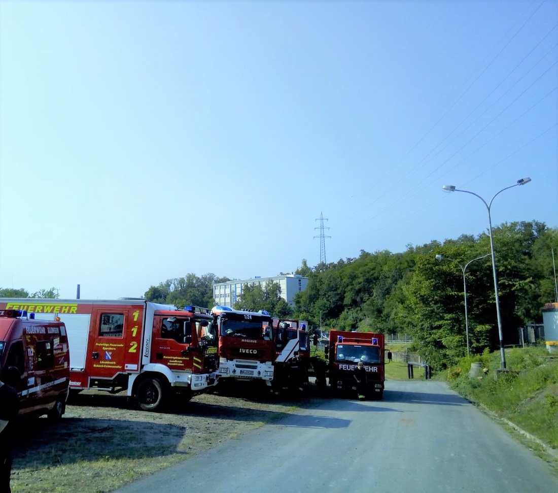 Dies war die Ausgangslage für eine groß angelegte Katastrophenschutzübung, die am 14.07.2018 in Neunkirchen stattfand. Unter anderem durch die angenommene Explosion, entstanden mehrere Brände, eine Werkhalle stürzte ein und ein Güterzug verlort aufgrund der Umstände Teile seiner Ladung, welche auf ein PKW stürzte. Dadurch sind mehrere Personen unter Trümmern und dem PKW eingeklemmt.