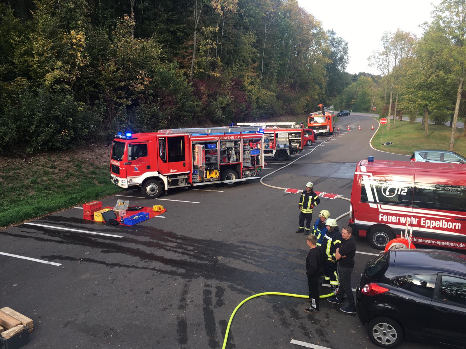 Gute Zusammenarbeit der Löschbezirke Eppelborn und Dirmingen bei Technische Hilfe Übung