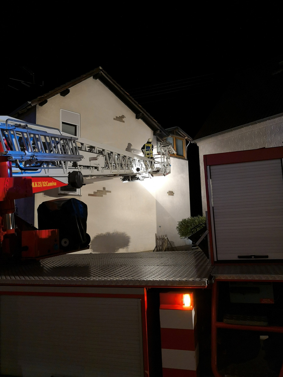 Der Rettungsdienst hat am Abend des 17. November 2018 die Feuerwehr nachgefordert, um einen Patienten aus dem Obergeschoss eines Anwesens in der Uchtelfanger Straße im Ortsteil Humes zu retten.