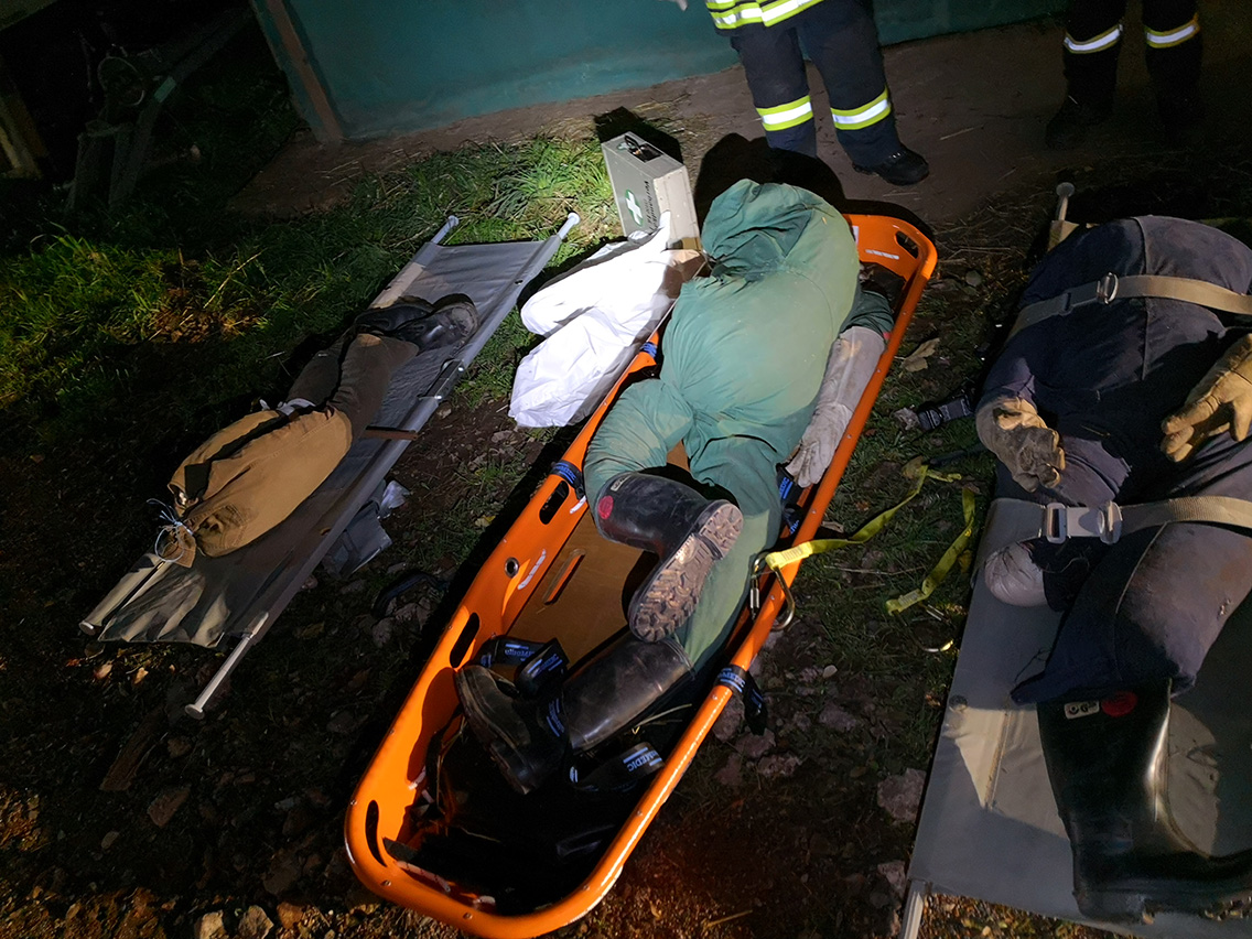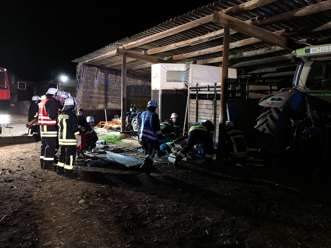 Die Wehrleute aus Hierschied mussten eine Person befreien, die zwischen Strohballen in die Tiefe gefallen ist. Die restlichen Feuerwehrleute befreiten eine Person deren Bein in eine landwirtschaftliche Maschine geraten ist mittels Trennschleifer.