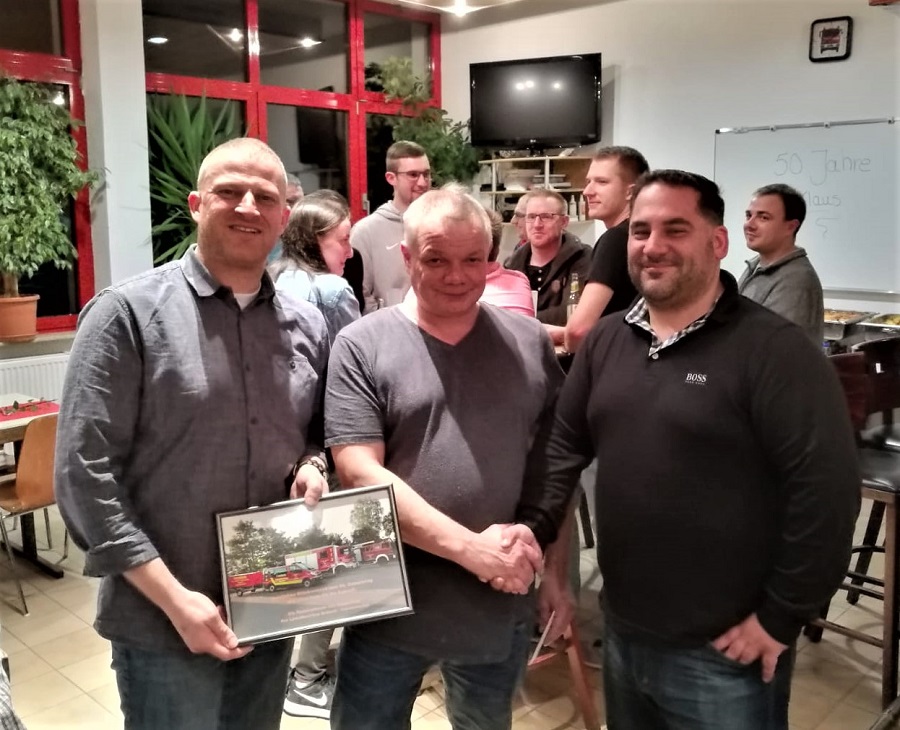 Bereits am 06.12.2018 wurde unser Feuerwehrkamerad Klaus Zangerle 50 Jahre alt. Zu diesem Anlass lud Klaus seine Familie und Freunde, sowie natürlich die Kameradinnen und Kameraden des Löschbezirkes Bubach-Calmesweiler in den Schulungsraum des Gerätehauses ein, um dieses Ereignis gebührend zu feiern. Klaus ist seit 35 Jahren Mitglied im Löschbezirk Bubach – Calmesweiler und unterstützt den Löschbezirk Bubach-Calmesweiler bei jeder Veranstaltung des Jahres mit seinem kulinarischen "Know How" und seiner immer guten Ideen in Bezug auf Versorgung mit schmackhaften Gerichten. Ebenso unterstützt er die Jugendfeuerwehr bei Zeltlagern, Gemeinschaftsabenden oder dem Weihnachtsbasar. Löschbezirksführer Andreas Groß sowie sein Stellvertreter Frank Bonner überreichten Klaus Zangerle ein Geschenk der Kameradinnen und Kameraden des Löschbezirkes Bubach-Calmesweiler. Den zweiten "Fünfziger" feierte Thorsten Zawar am 02.01.2019 in der Hirschberghalle in Bubach. Auch hierzu waren die Kameradinnen und Kameraden des Löschbezirks Bubach-Calmesweiler gerne erschienen, um diesen besonderen Tag zusammen mit Thorsten zu feiern. Thorsten Zawar gehört dem Löschbezirk Bubach-Calmesweiler seit über 30 Jahren an. Er ist im Löschbezirk Bubach-Calmesweiler als Atemschutzausbilder tätig und sorgt somit, zusammen mit Manuel Braun, für die hochwertige und professionelle Ausbildung der Atemschutzgerätetägerinnen und Atemschutzgeräteträger im Löschbezirk Bubach-Calmesweiler. Löschbezirksführer Andreas Groß und sein Stellvertreter Frank Bonner konnten auch hierbei ein Geschenk der Kameradinnen und Kameraden des Löschbezirks Bubach-Calmesweiler überreichen. Aufgrund seiner Tätigkeit im Bereich Atemschutz, handelte es sich bei dem Geschenk um ein Model einer Atemschutzmaske mit Helm, gefüllt mit etwas "barem". Der Löschbezirk Bubach-Calmesweiler gratuliert den beiden "Geburtstagskindern" recht herzlich und wünscht alles Gute für die Zukunft. Vielen Dank für eure aufopferungsvolle und engagierte Tätigkeiten im Löschbezirk Bubach-Calmesweiler.