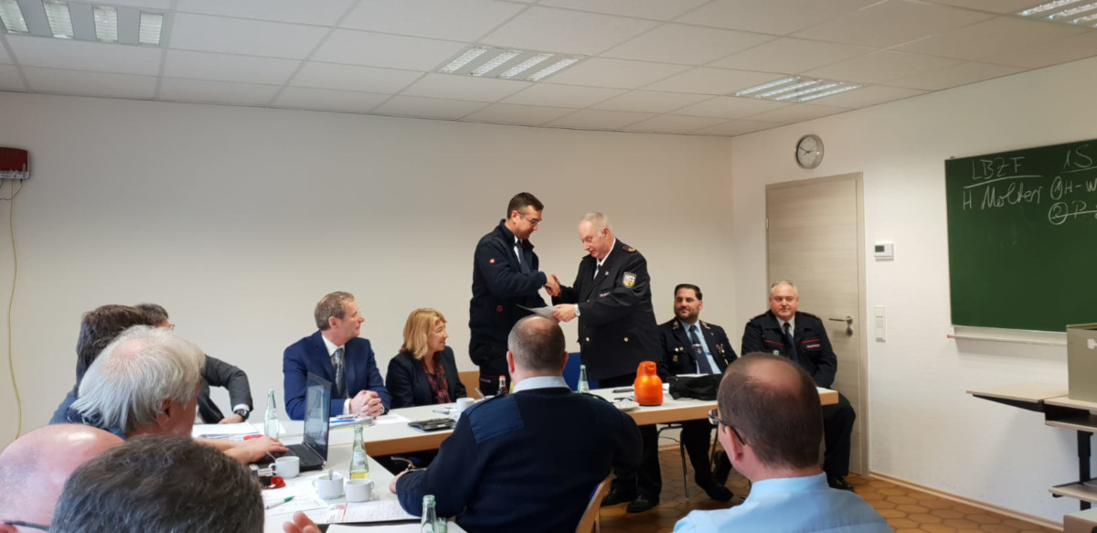Nach der Begrüßung und Totenehrung wurden die Neuwahlen der Löschbezirksführung eingeleitet. Den Vorsitz der Wahl führte die Bürgermeisterin. Im ersten Wahlgang wurde der langjährige Stellvertreter Heino Molter zum Löschbezirksführer gewählt. Da sich der Löschbezirk Dirmingen entschieden hatte, zwei Stellvertreter zu wählen, wurde im zweiten Wahlgang Hans-Werner Guthörl zum 1.Stellvertreter und Pascal Engeldinger zum 2.Stellvertreter gewählt. Markus Lambert, der den Löschbezirk seit 2013 geleitet hatte, stand aus beruflichen und familiären Gründen für eine Wiederwahl nicht mehr zur Verfügung. Die Bürgermeisterin und die Mannschaft bedankten sich für das Engagement von Markus Lambert in den letzten Jahren. Den neu gewählten Führungskräften gratulierte Sie für das eindeutige Wahlergebnis und brachte zum Ausdruck, dass Sie sich auf eine gute Zusammenarbeit freuen würde.