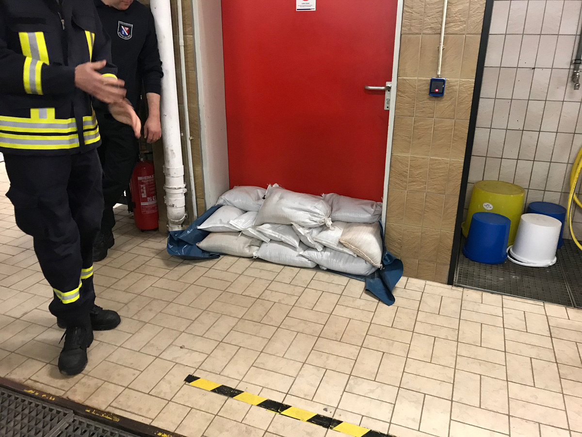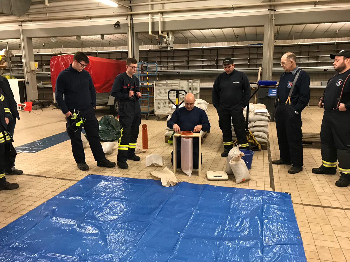 Zum Abschluss wurde dann noch gezeigt, wie mit Folie und Sandsäcken eine Tür sicher abgedichtet wird. Insgesamt war es eine sehr interessante Übung zu einem Thema, das mit großer Wahrscheinlichkeit bald wieder aktuell sein wird.